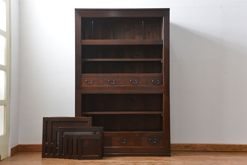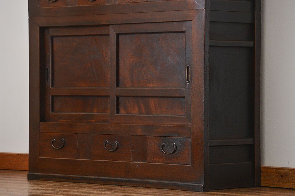 骨董・美術品 > アンティーク家具 古民具・骨董 組子細工が上品な3.5尺水屋箪笥(食器棚、戸棚、茶箪笥)