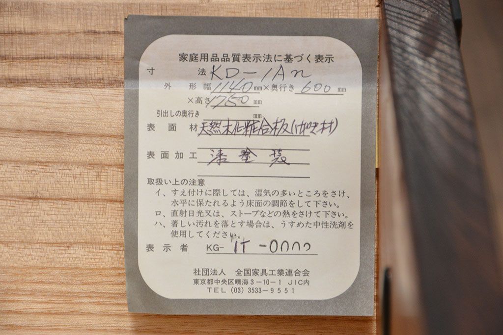 中古 伝統工芸 岩谷堂箪笥 ワードローブ 定価約60万円
