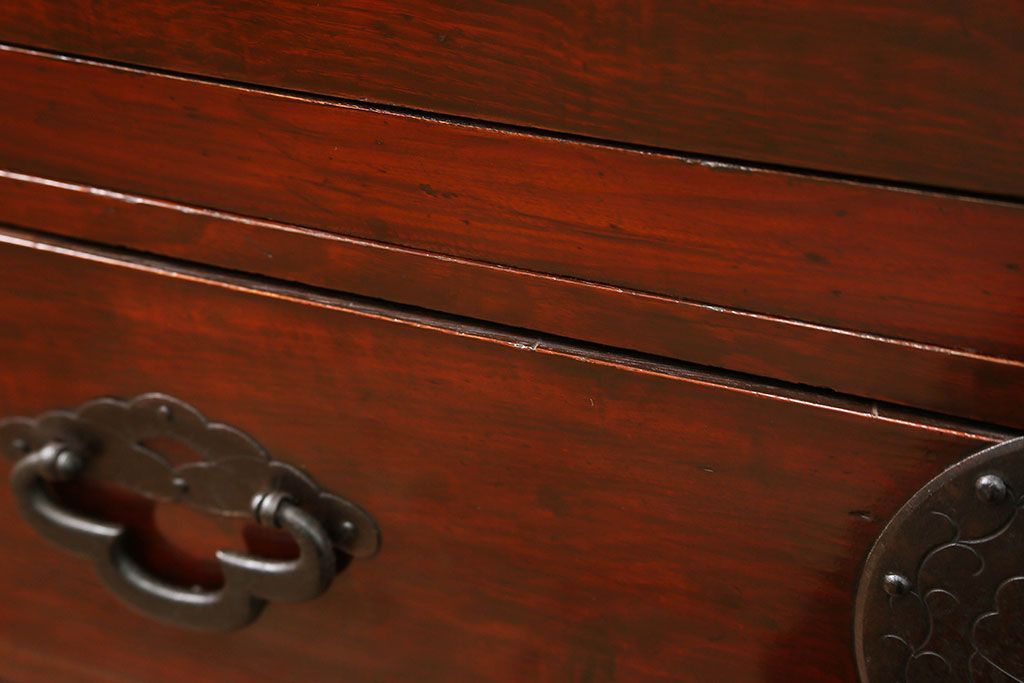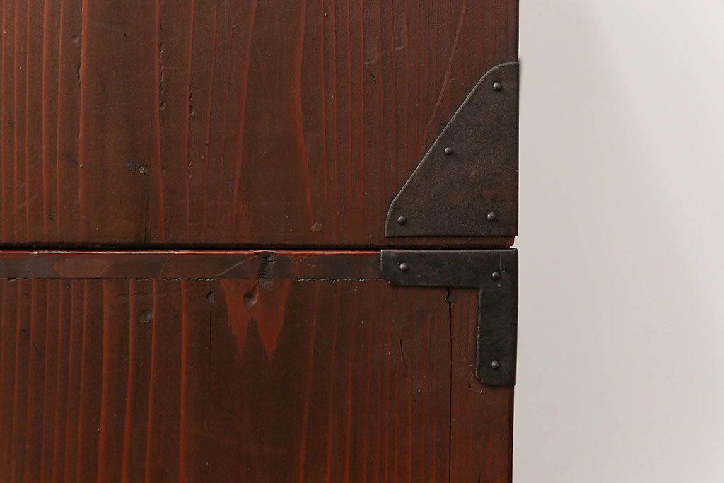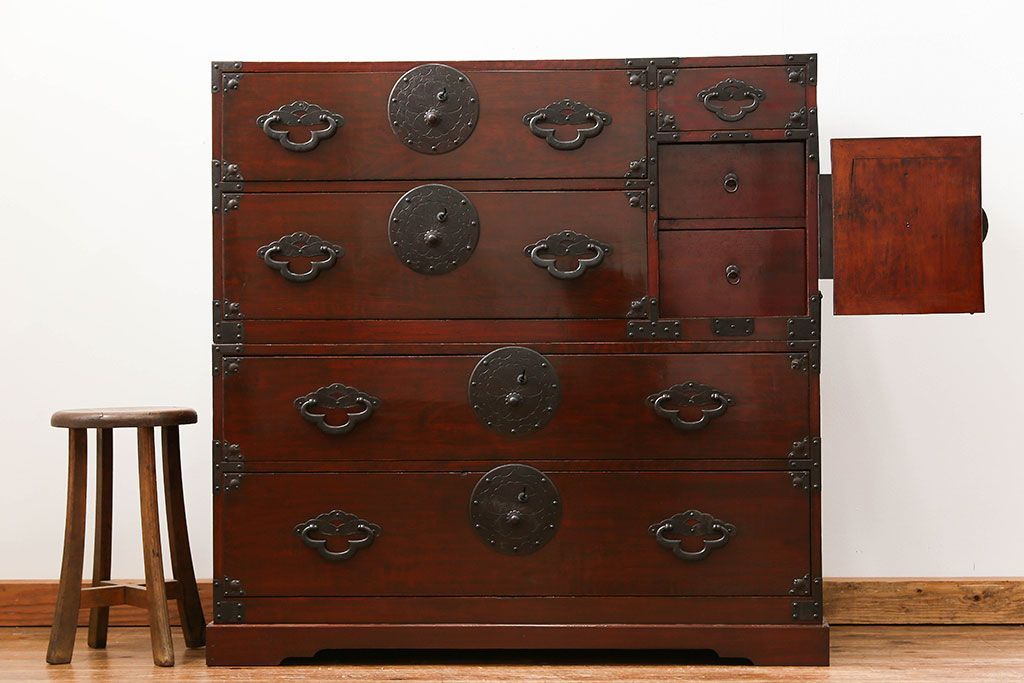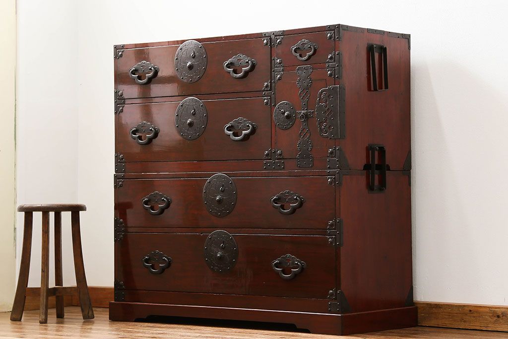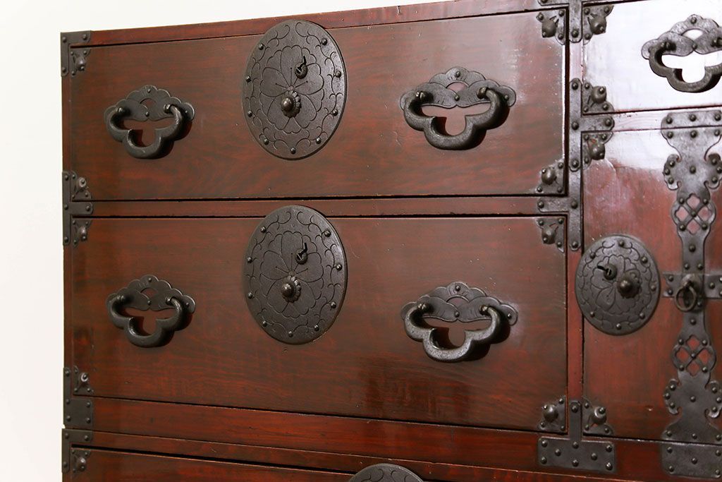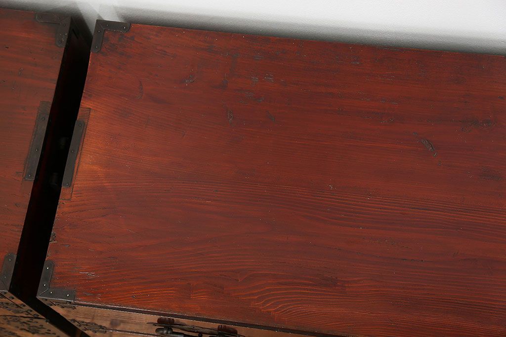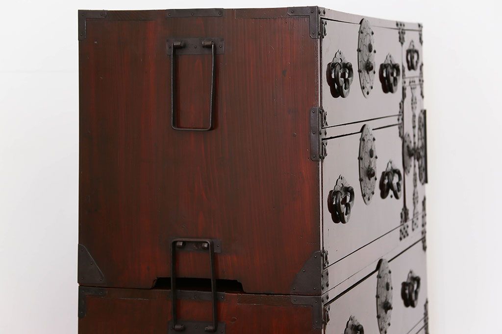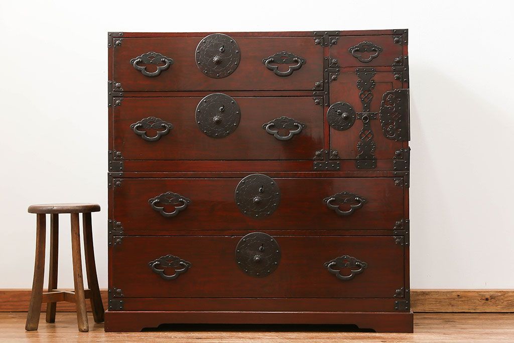 和箪笥 > アンティーク家具 古民具・骨董 前面栗材の漆のキレイな二段重ね米沢箪笥(時代箪笥)