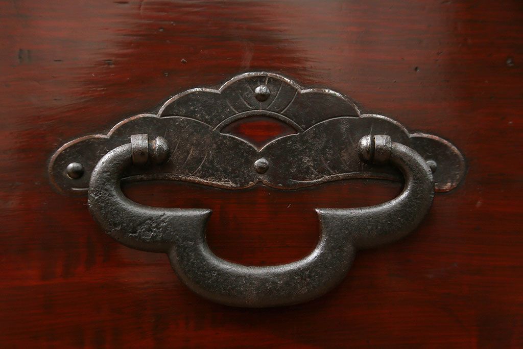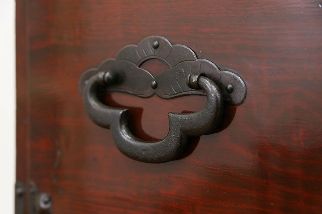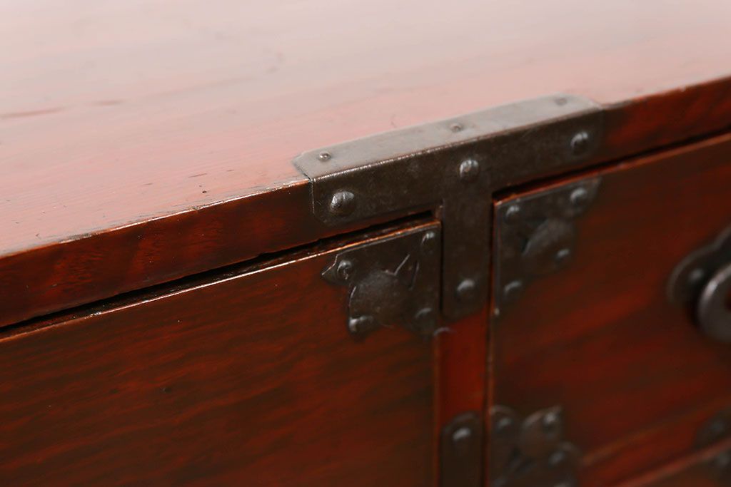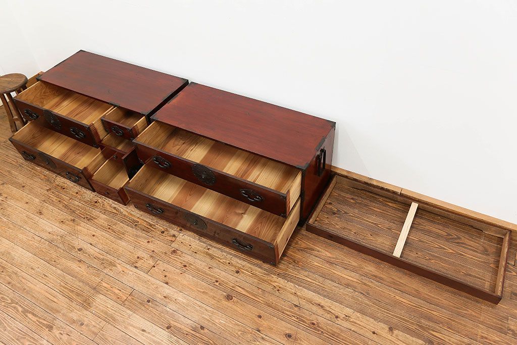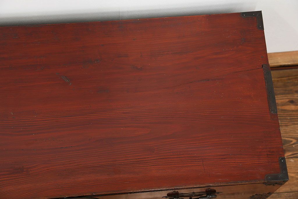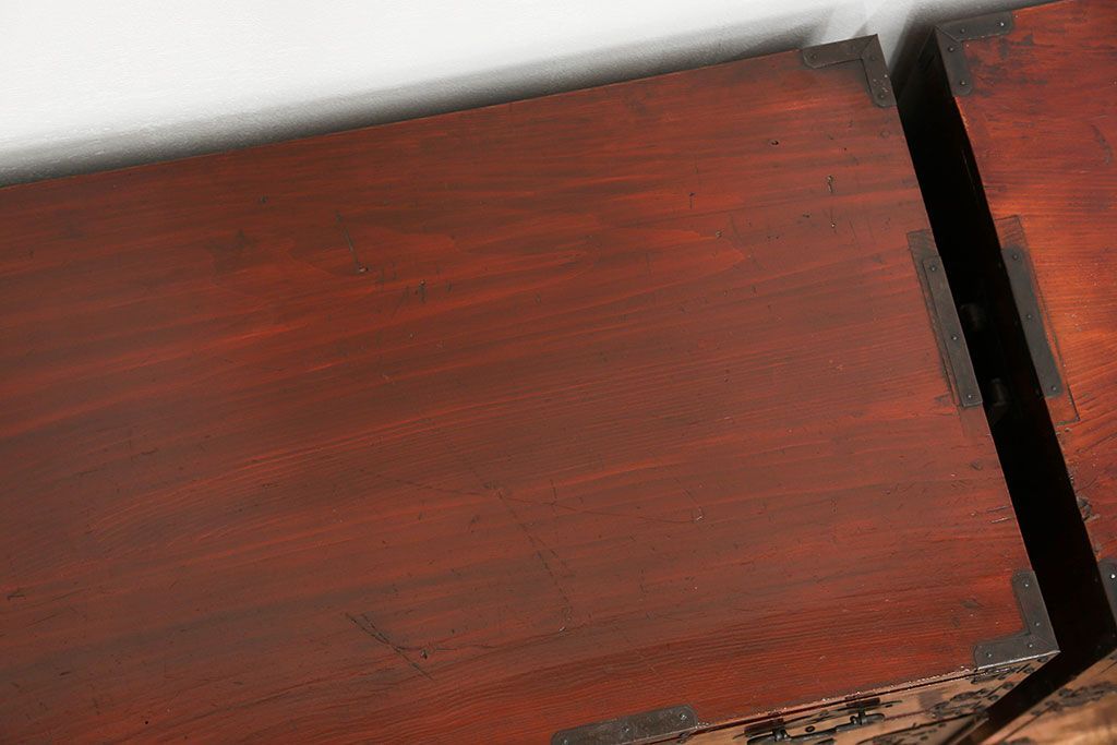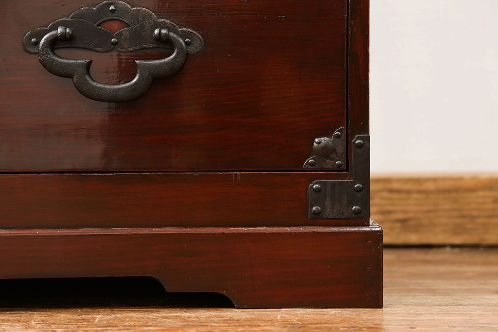 和箪笥 > アンティーク家具 古民具・骨董 前面栗材の漆のキレイな二段重ね米沢箪笥(時代箪笥)