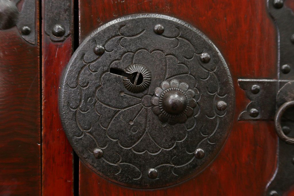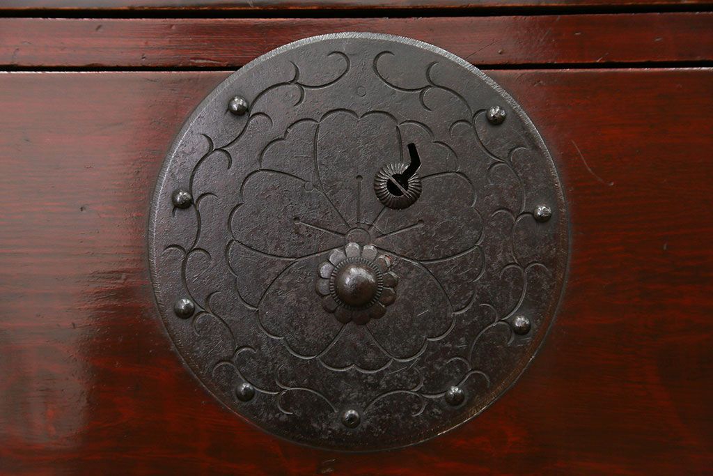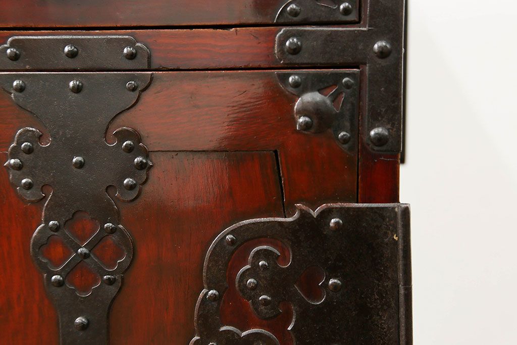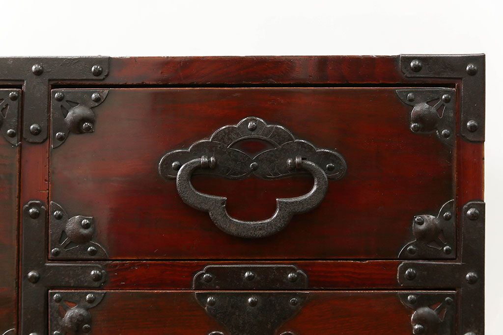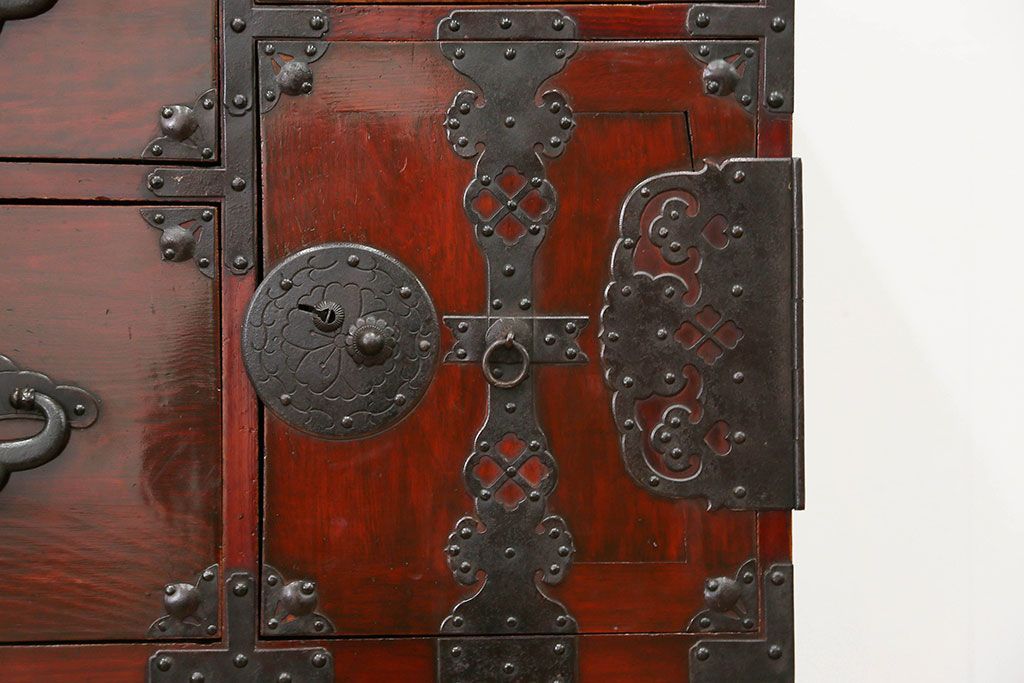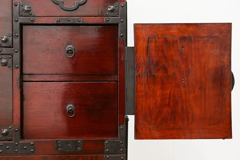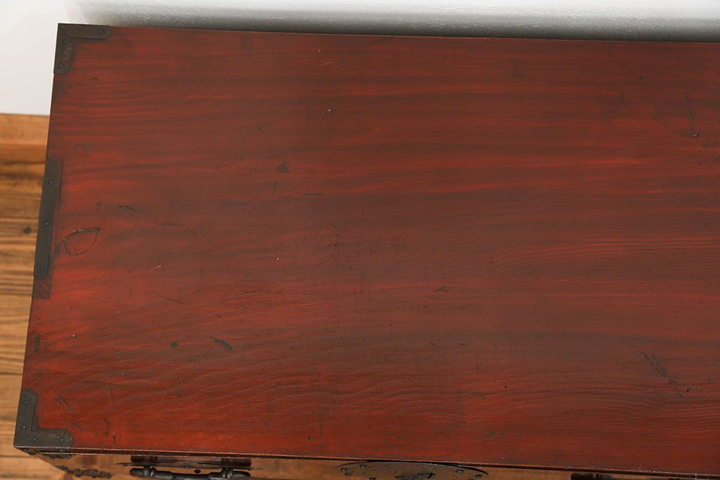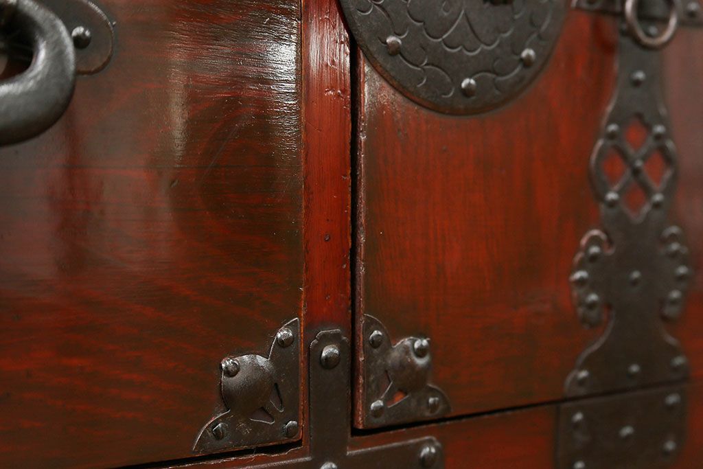 和箪笥 > アンティーク家具 古民具・骨董 前面栗材の漆のキレイな二段重ね米沢箪笥(時代箪笥)