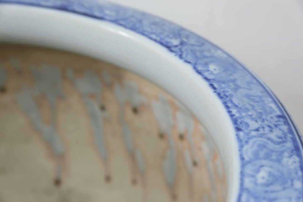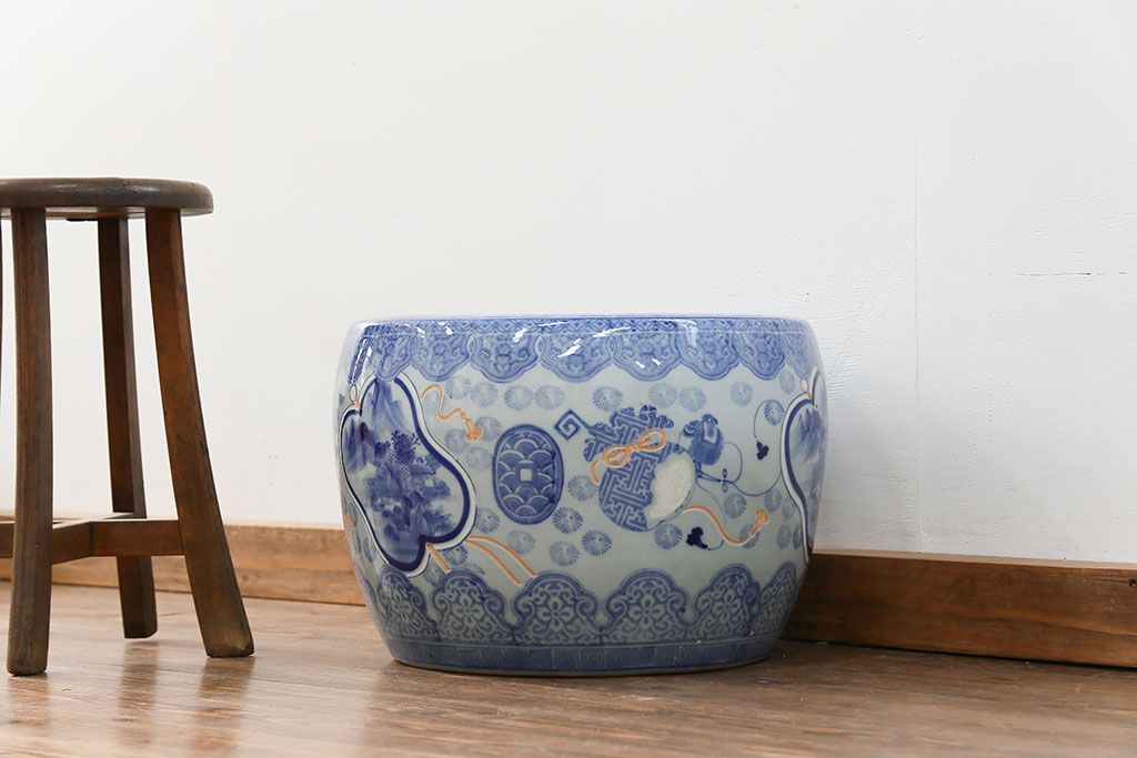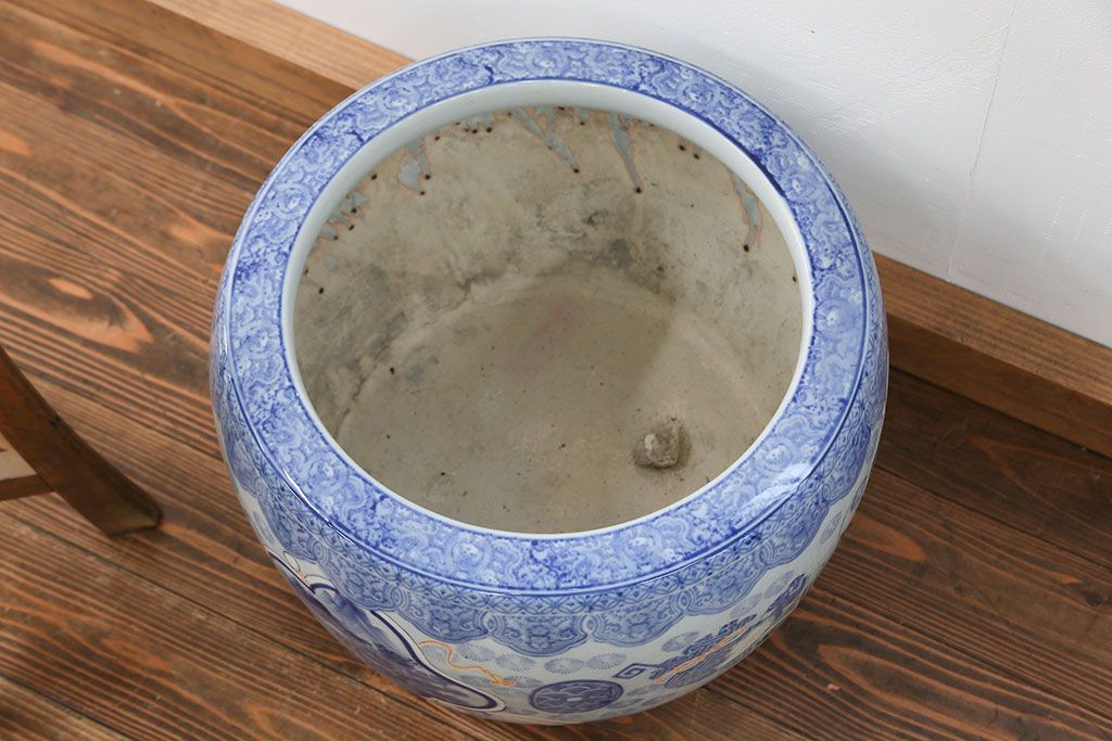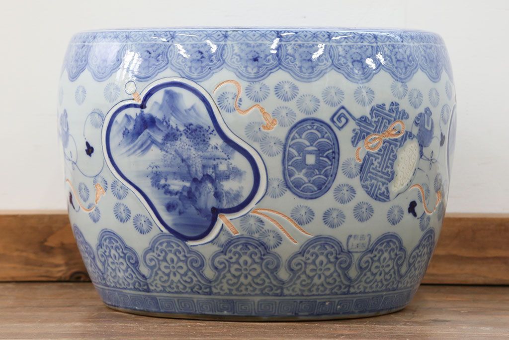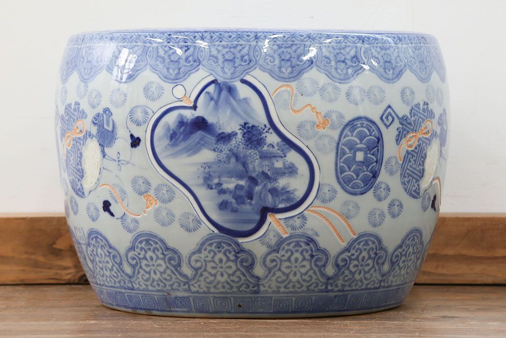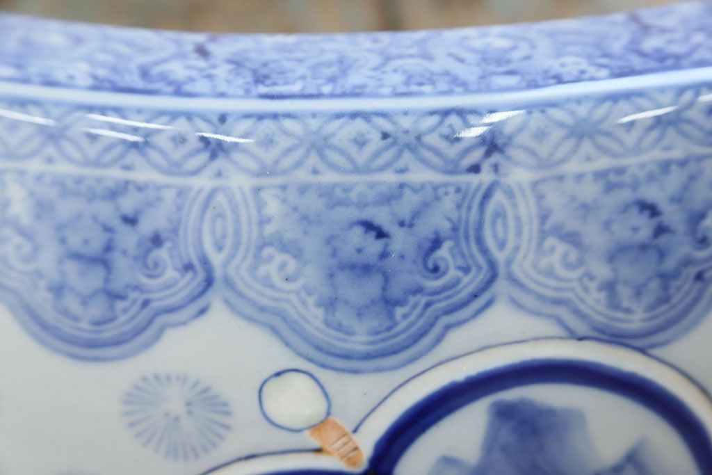 アンティーク雑貨 古民具・骨董 美しい図柄の瀬戸火鉢(1)