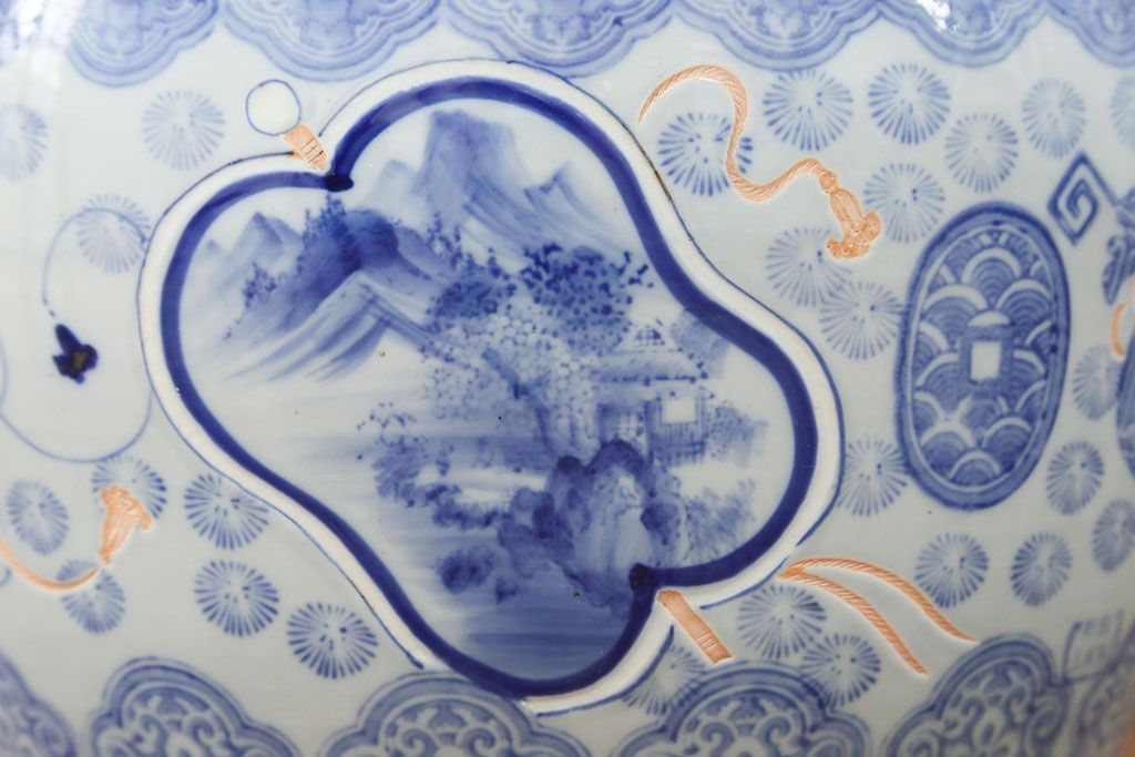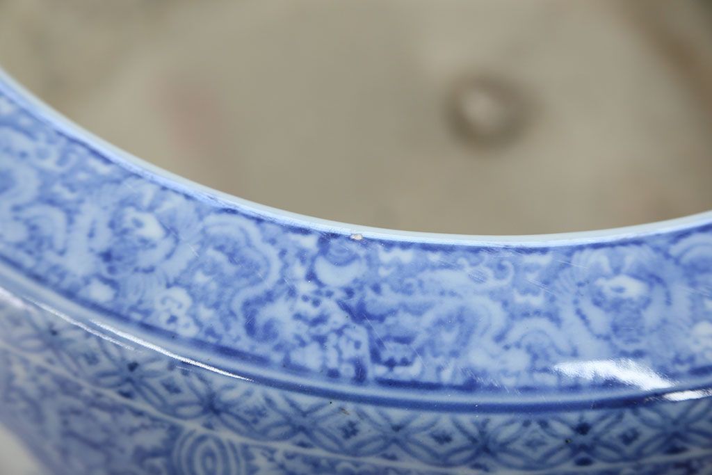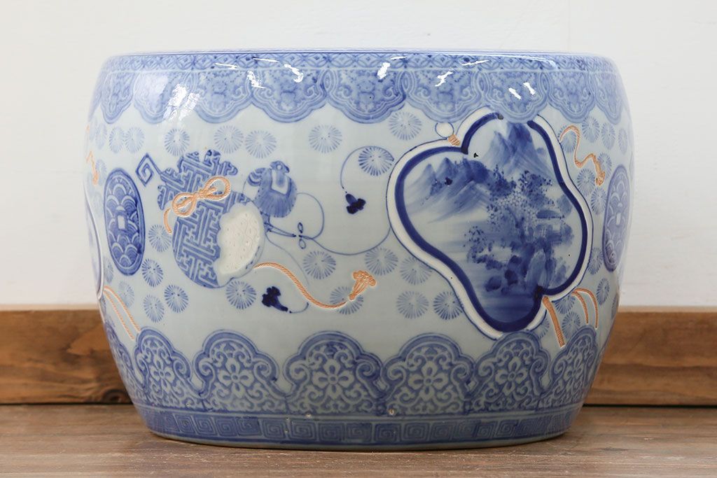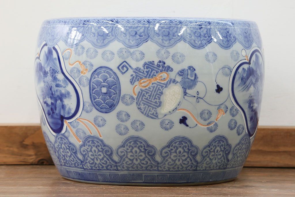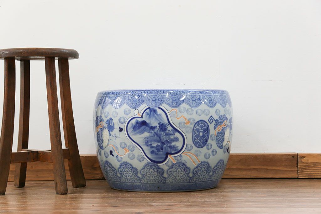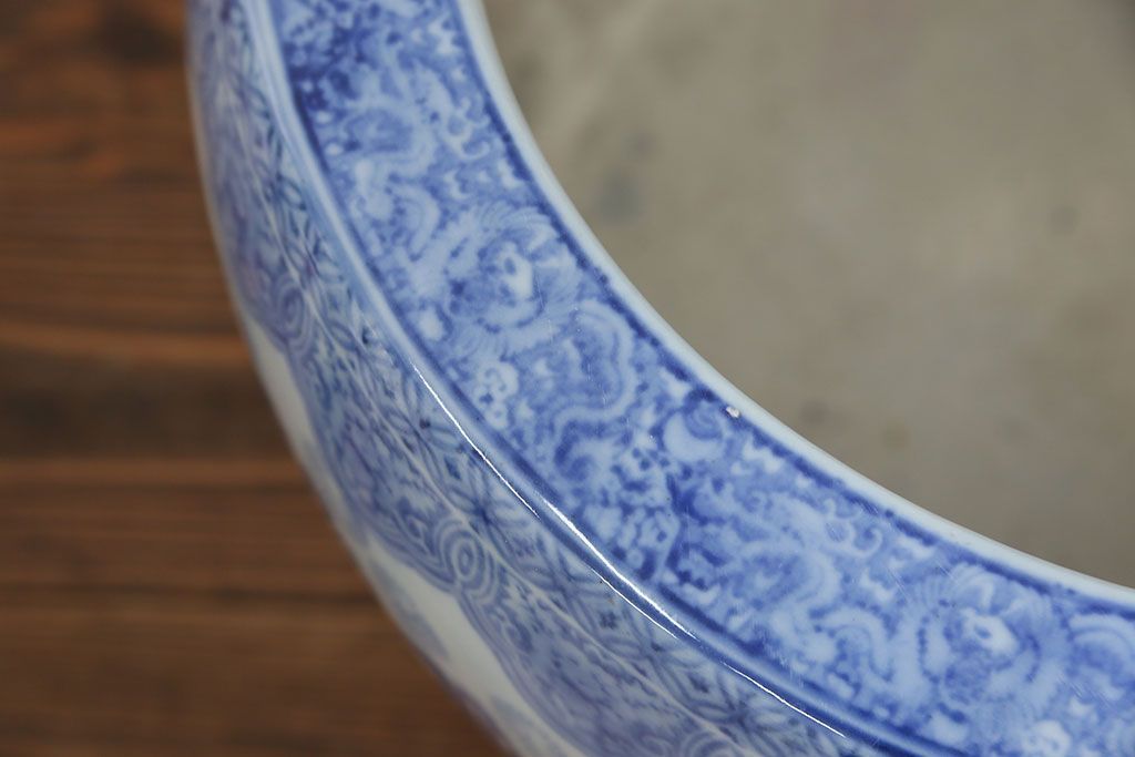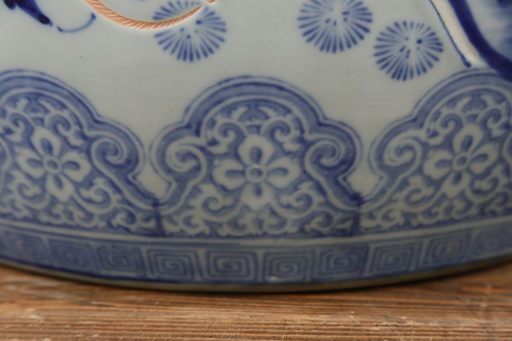 アンティーク雑貨 古民具・骨董 美しい図柄の瀬戸火鉢(1)