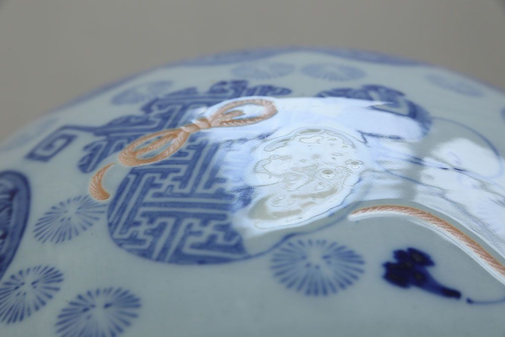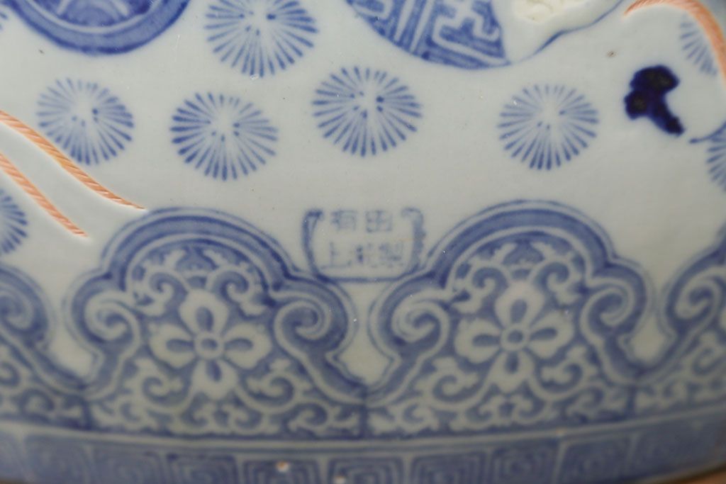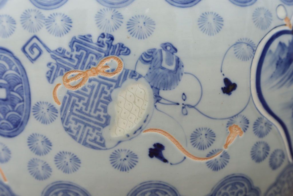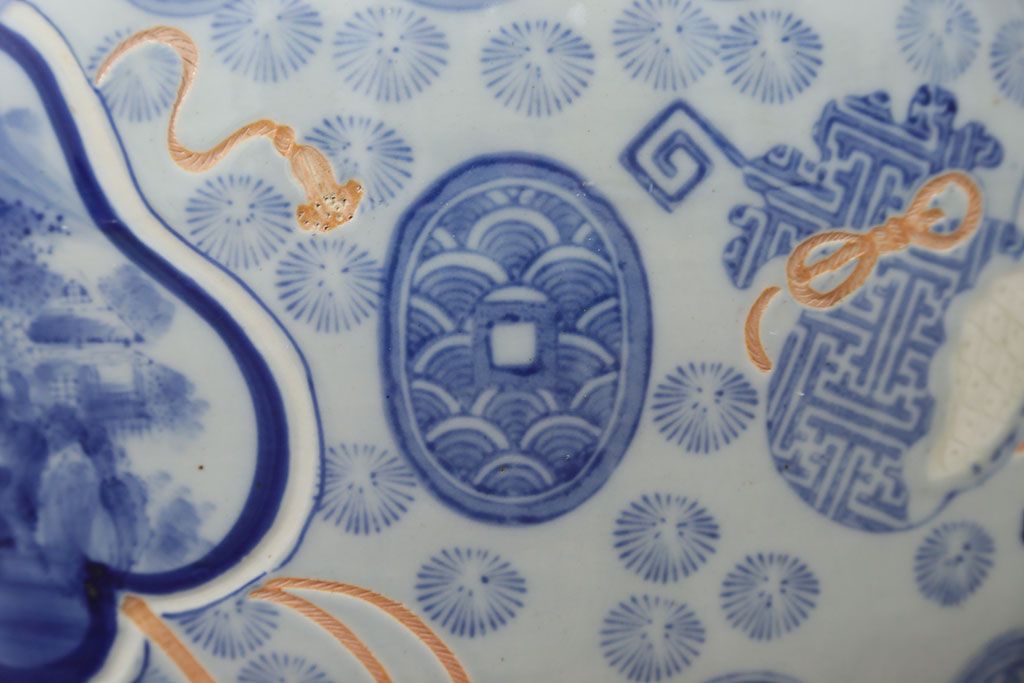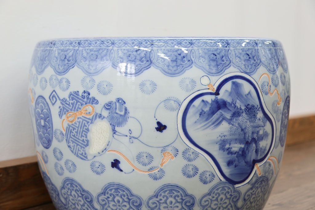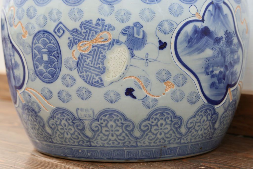 アンティーク雑貨 古民具・骨董 美しい図柄の瀬戸火鉢(1)