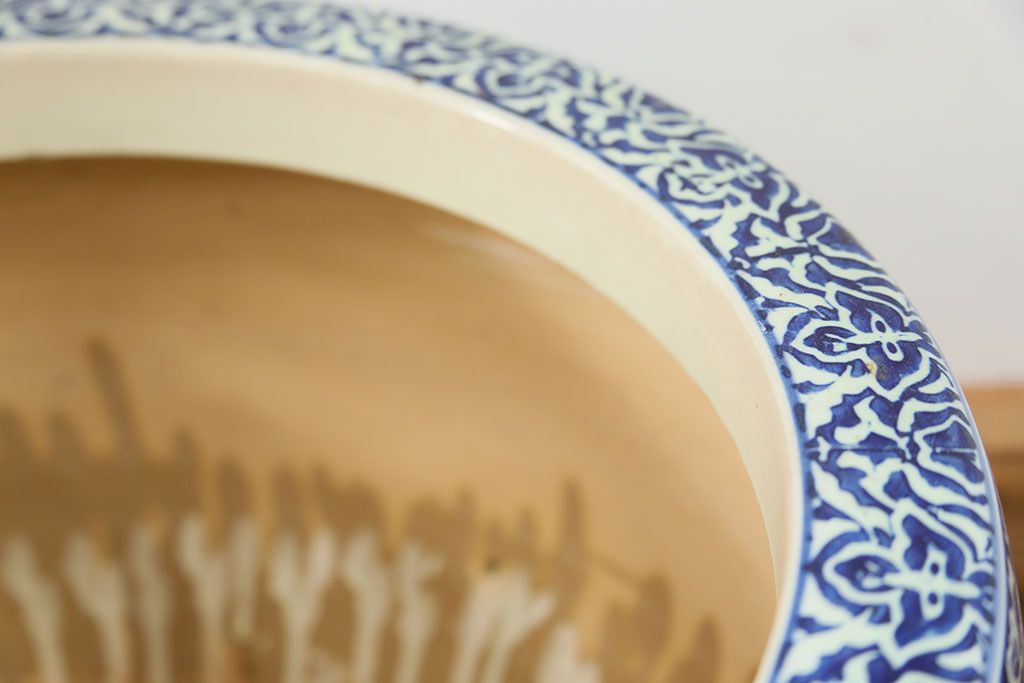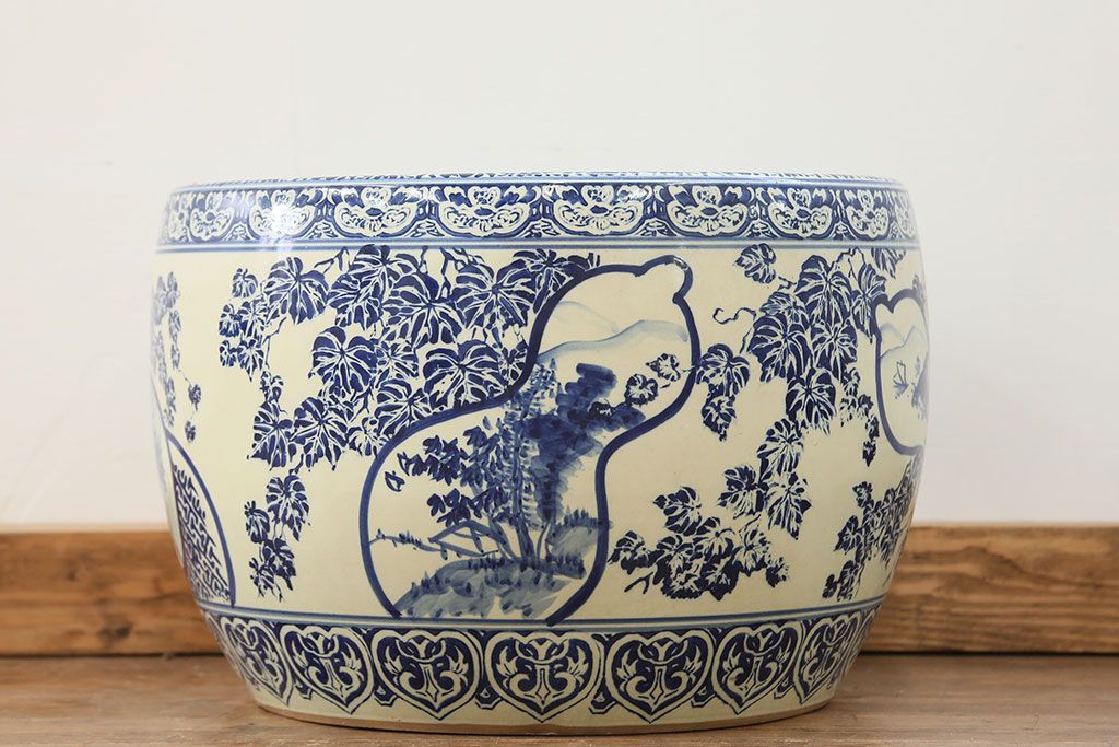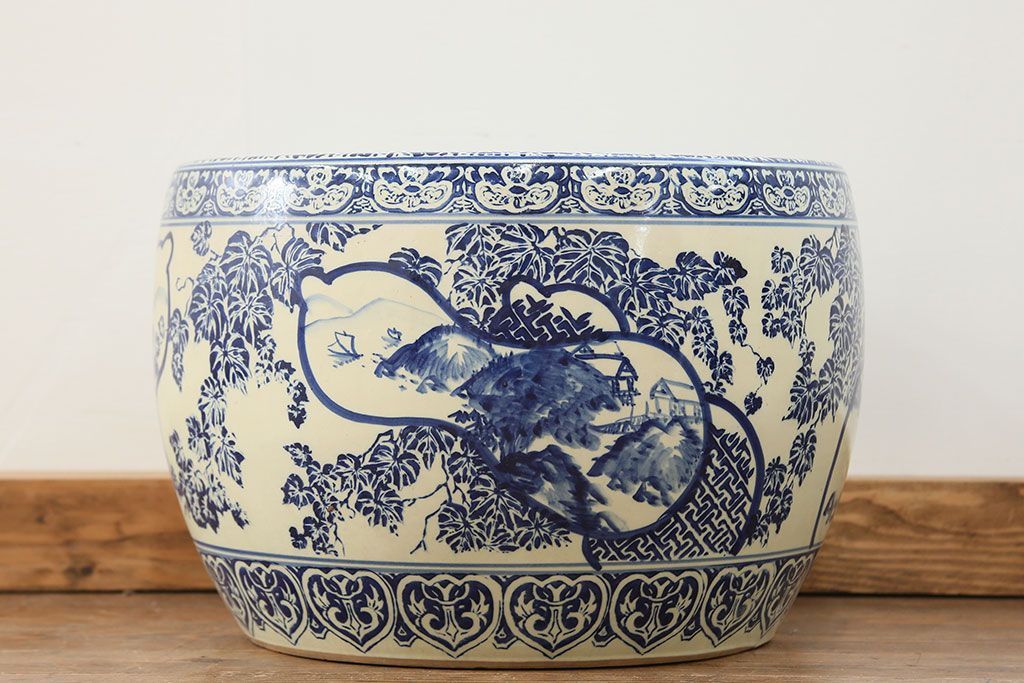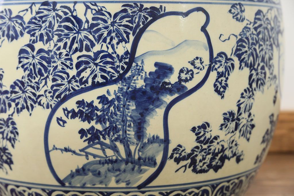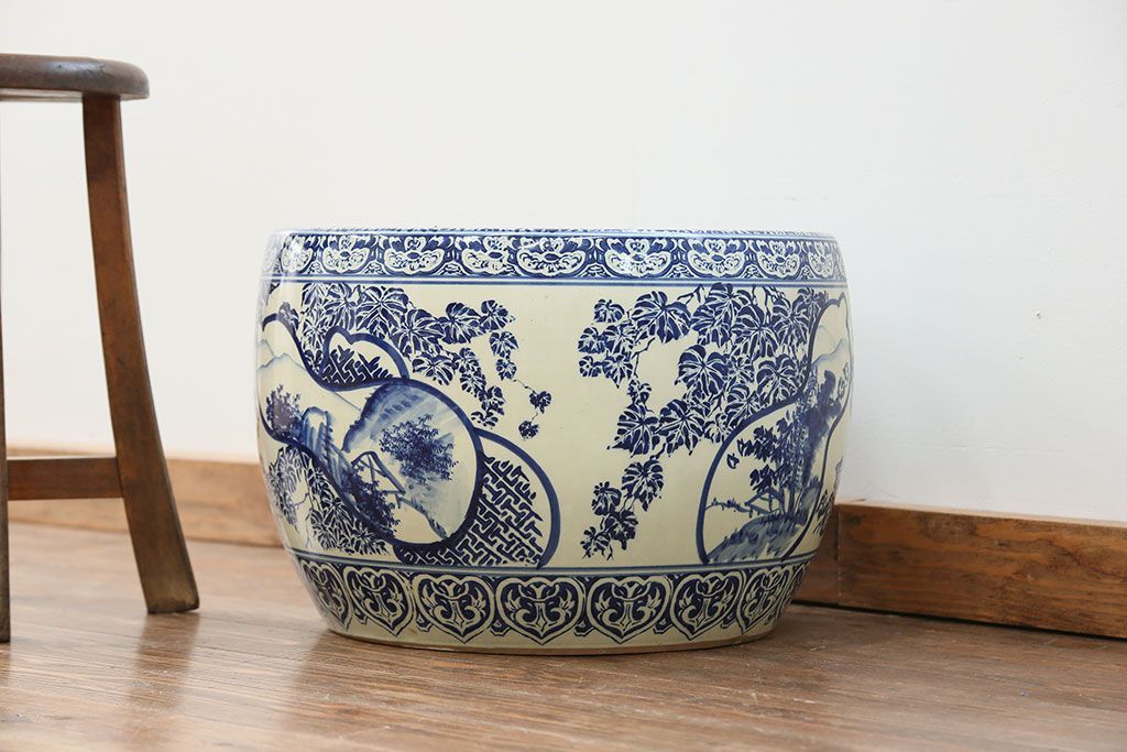 アンティーク雑貨 古民具・骨董 美しい図柄の瀬戸火鉢(2)
