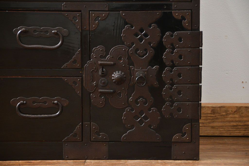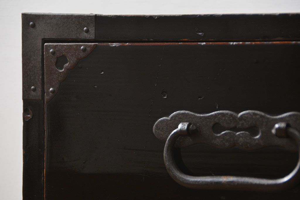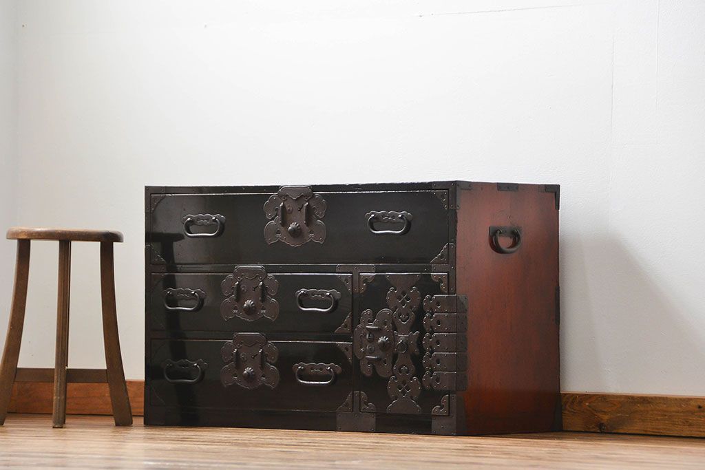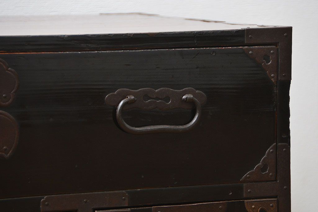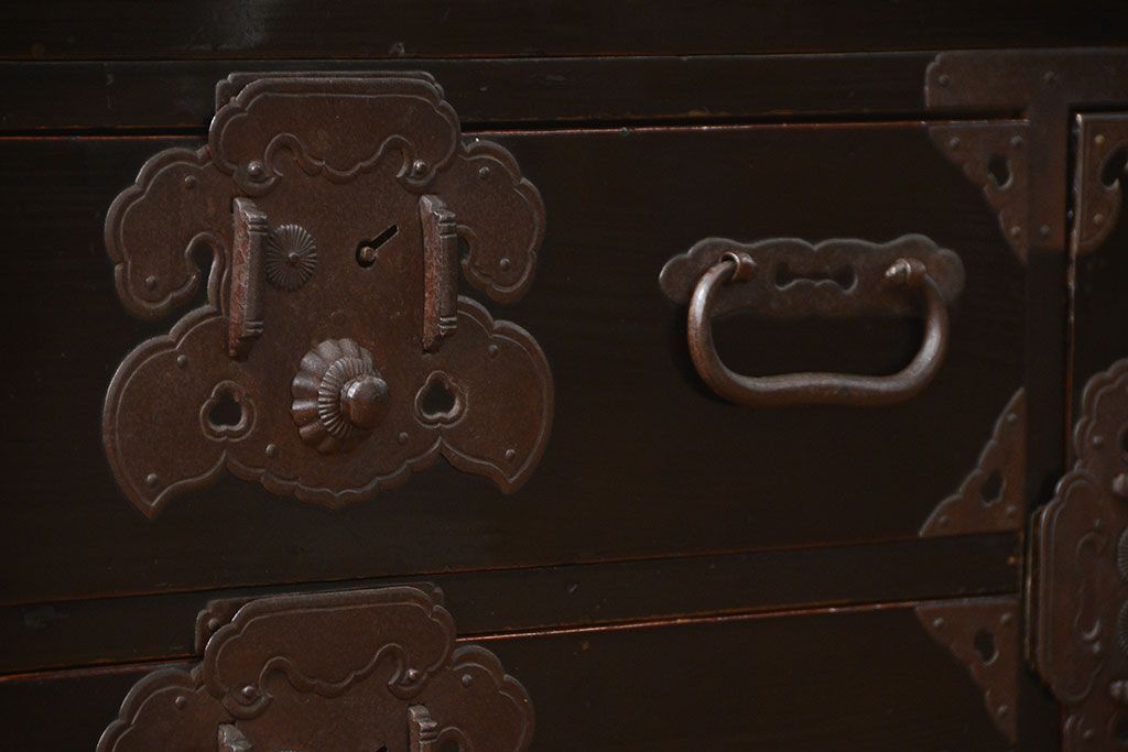 アンティーク家具 古民具・骨董 シックな庄内箪笥ローボード(2)(ローチェスト、時代箪笥)