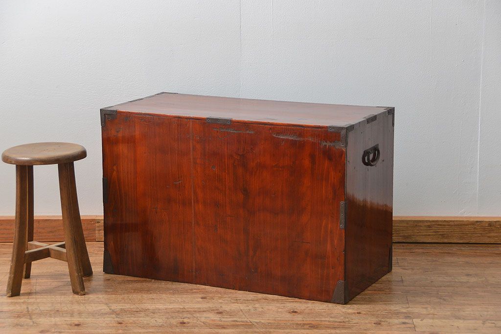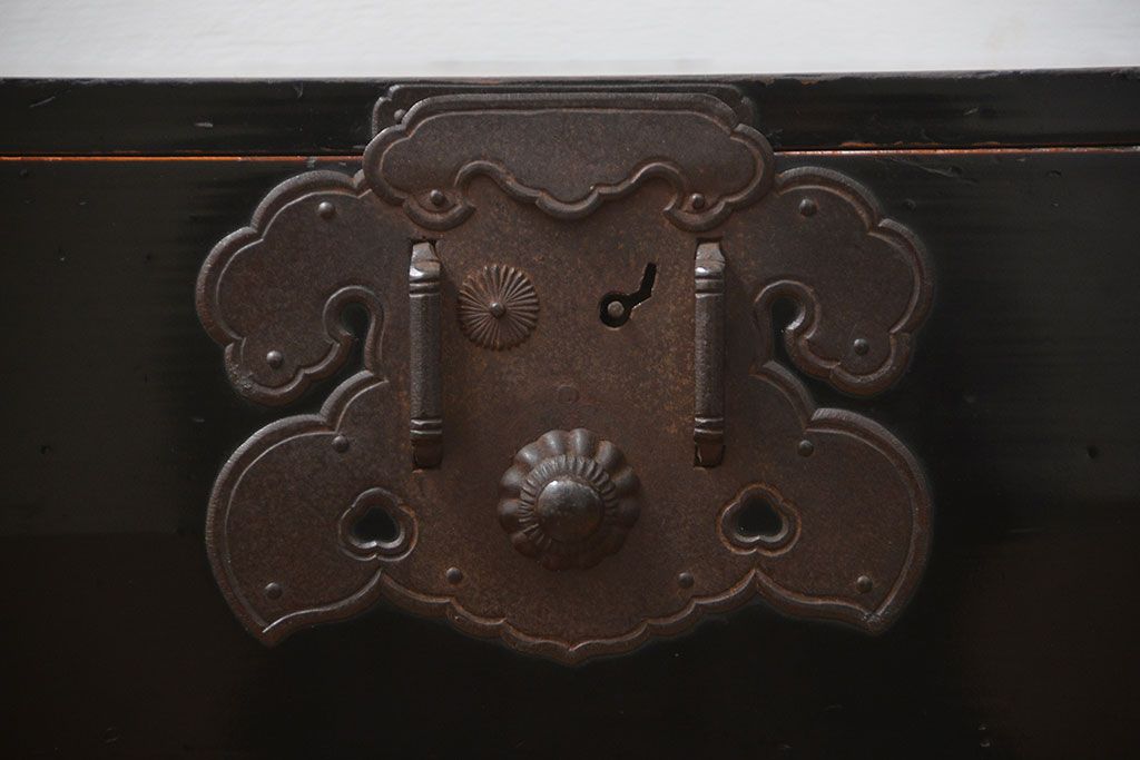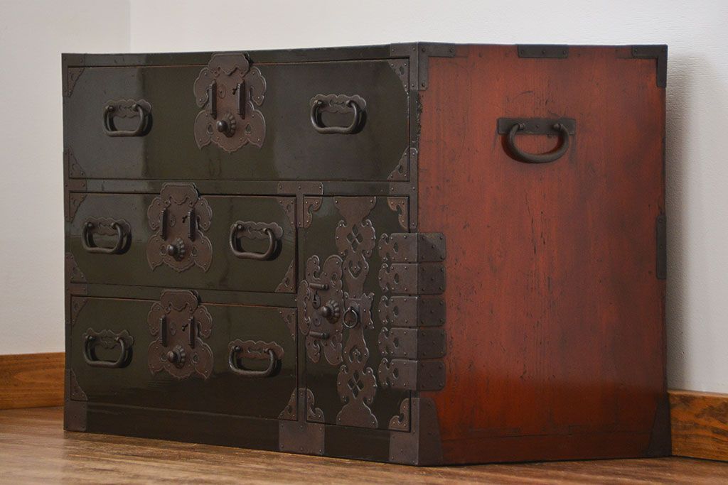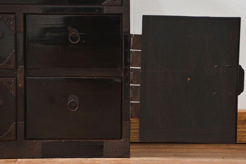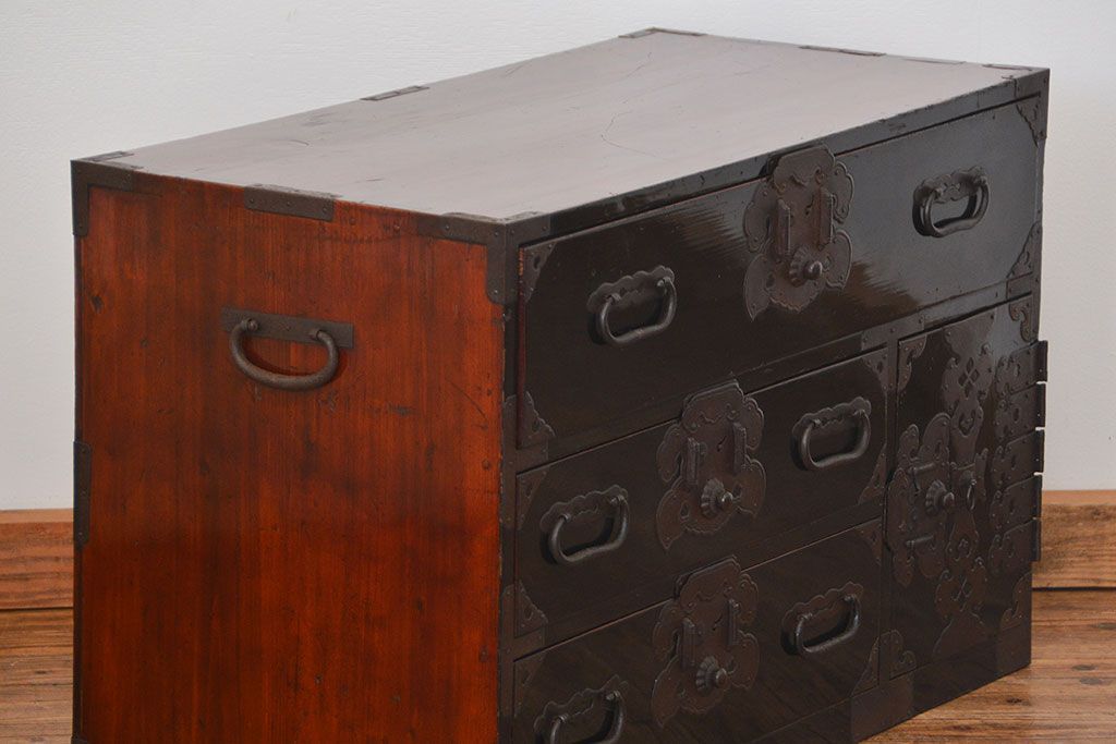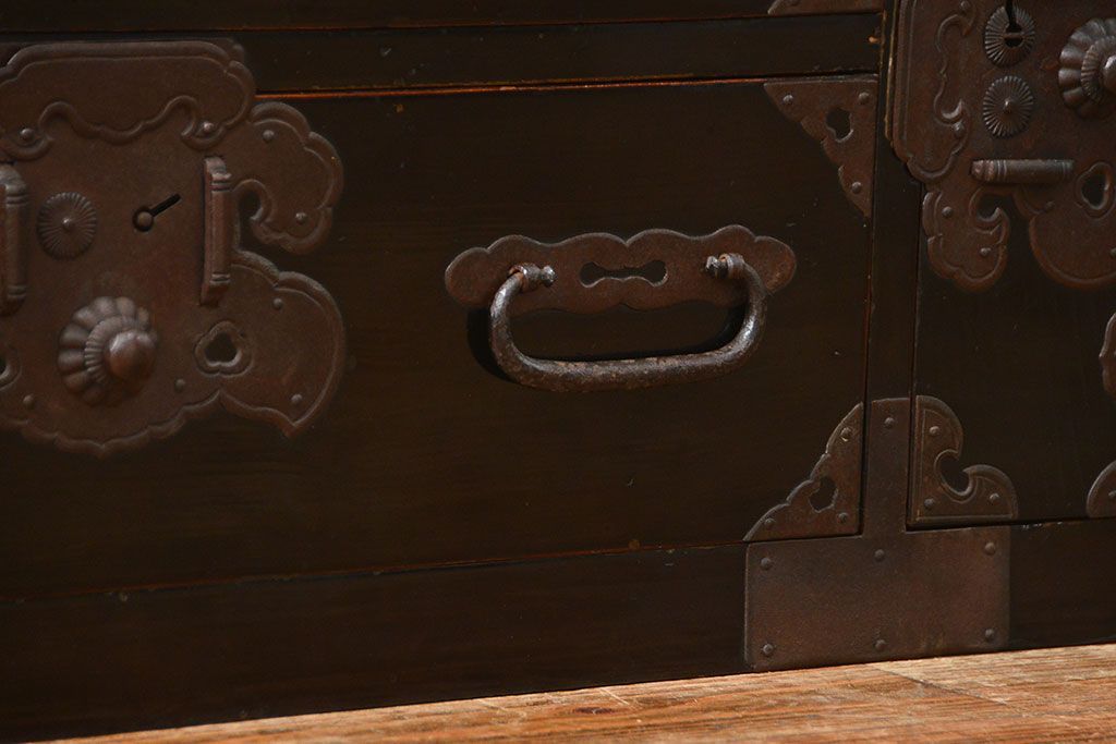 アンティーク家具 古民具・骨董 シックな庄内箪笥ローボード(2)(ローチェスト、時代箪笥)