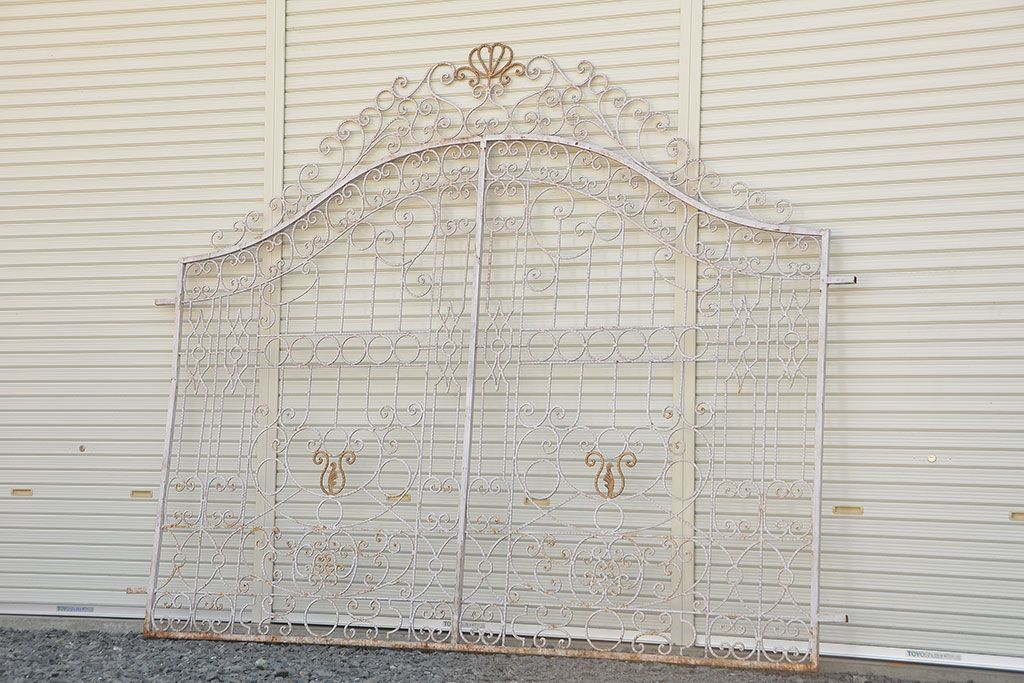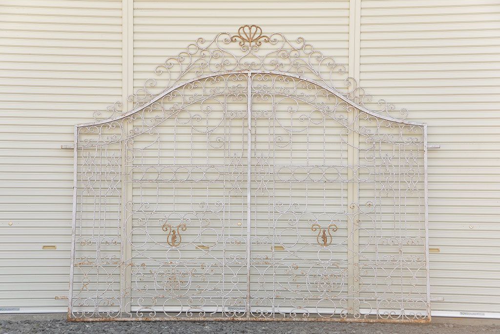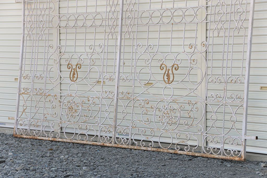 中古 大きなロートアイアンガーデンフェンス(32)(洋風フェンス、ヨーロッパ風フェンス、門扉、鉄柵)です。