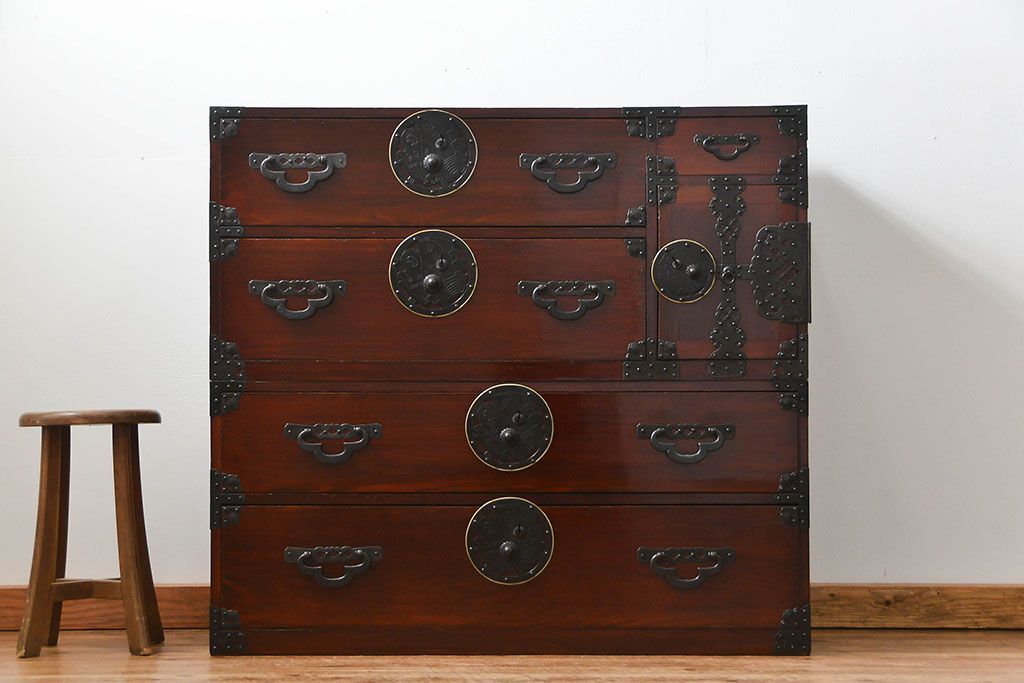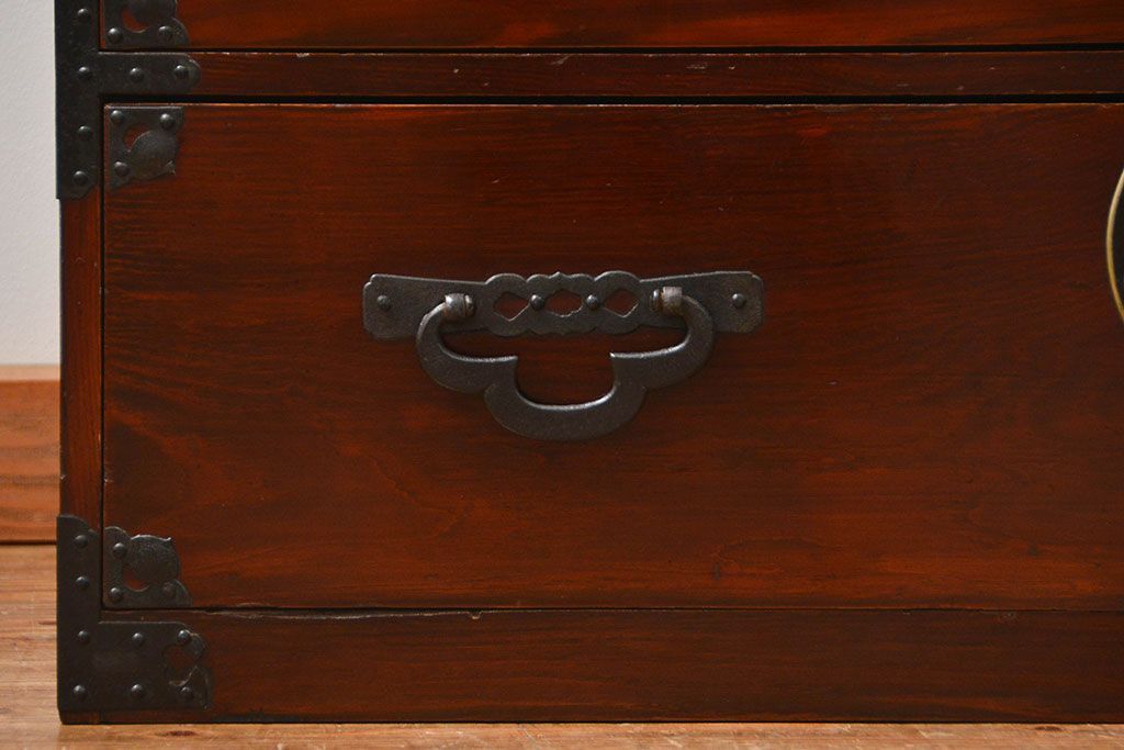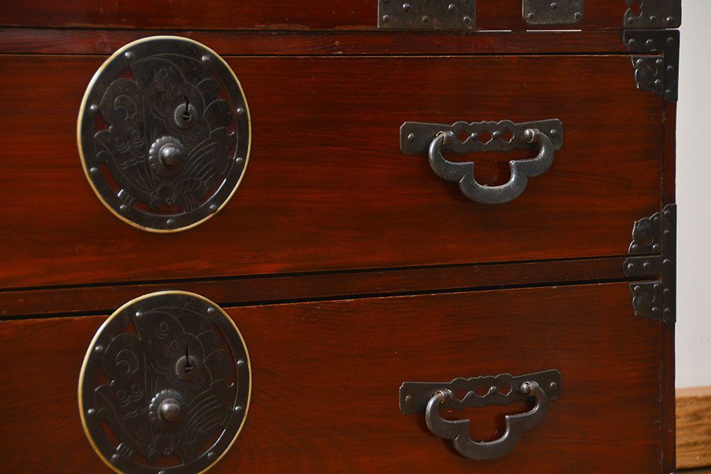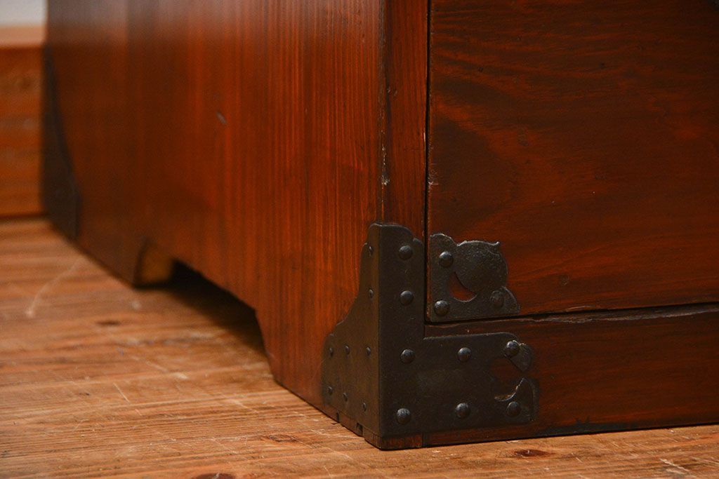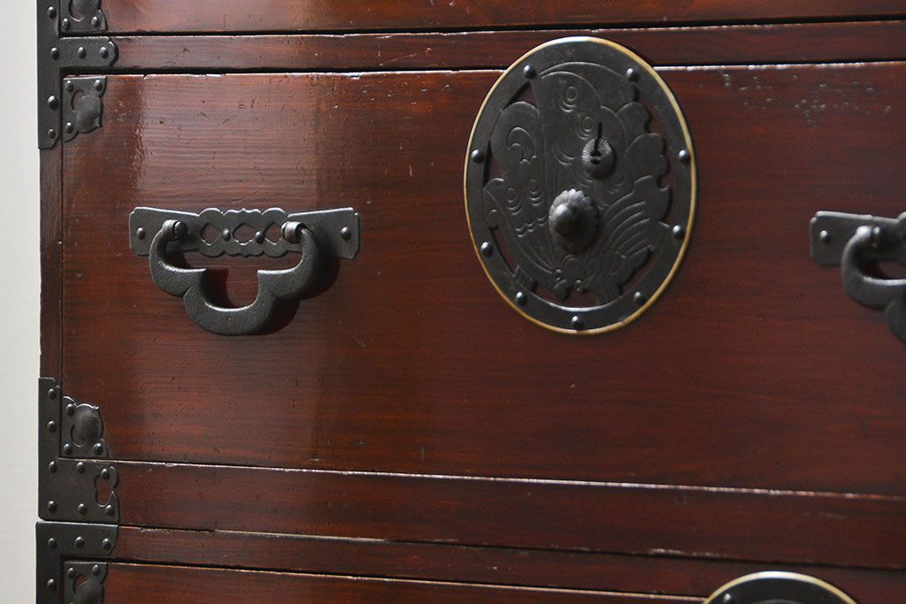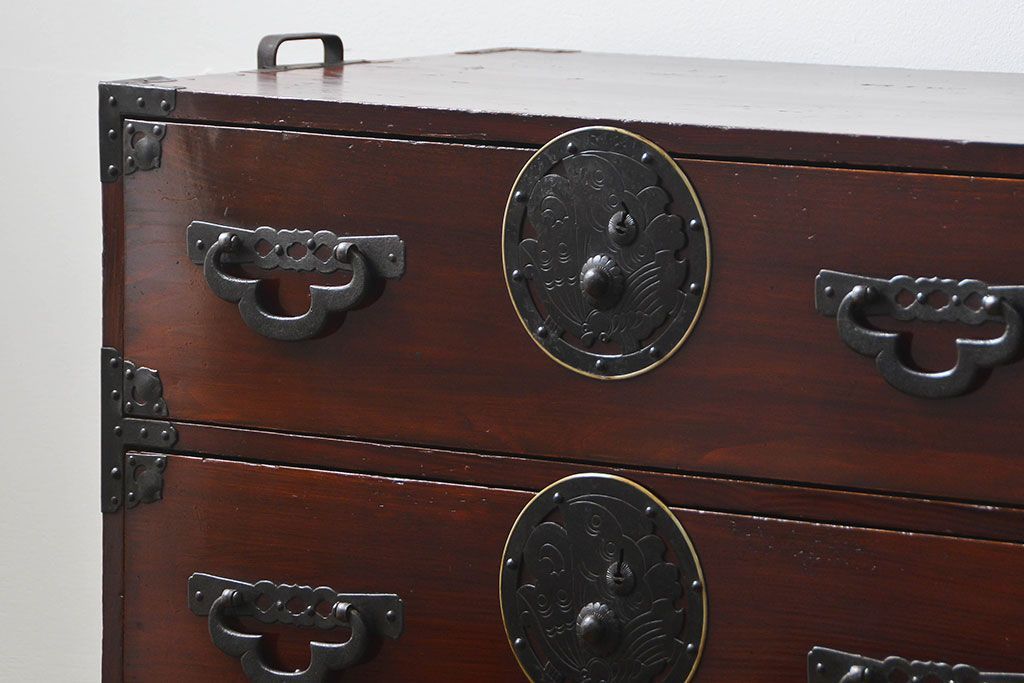 古民具・骨董 極上美品 蝶覆輪金具 前面栗材 米沢箪笥(時代箪笥)