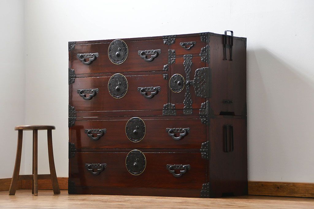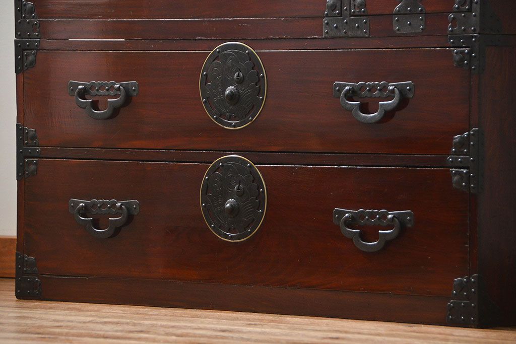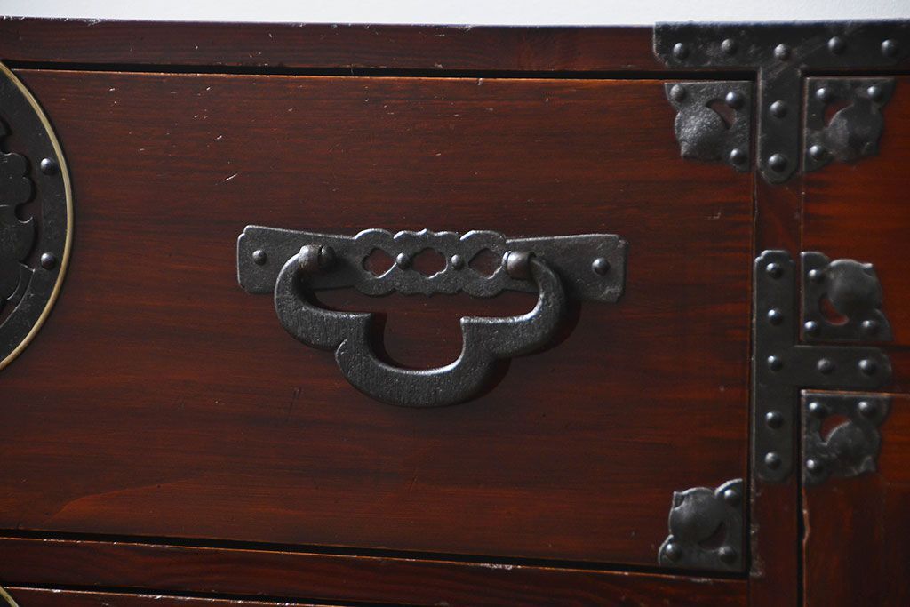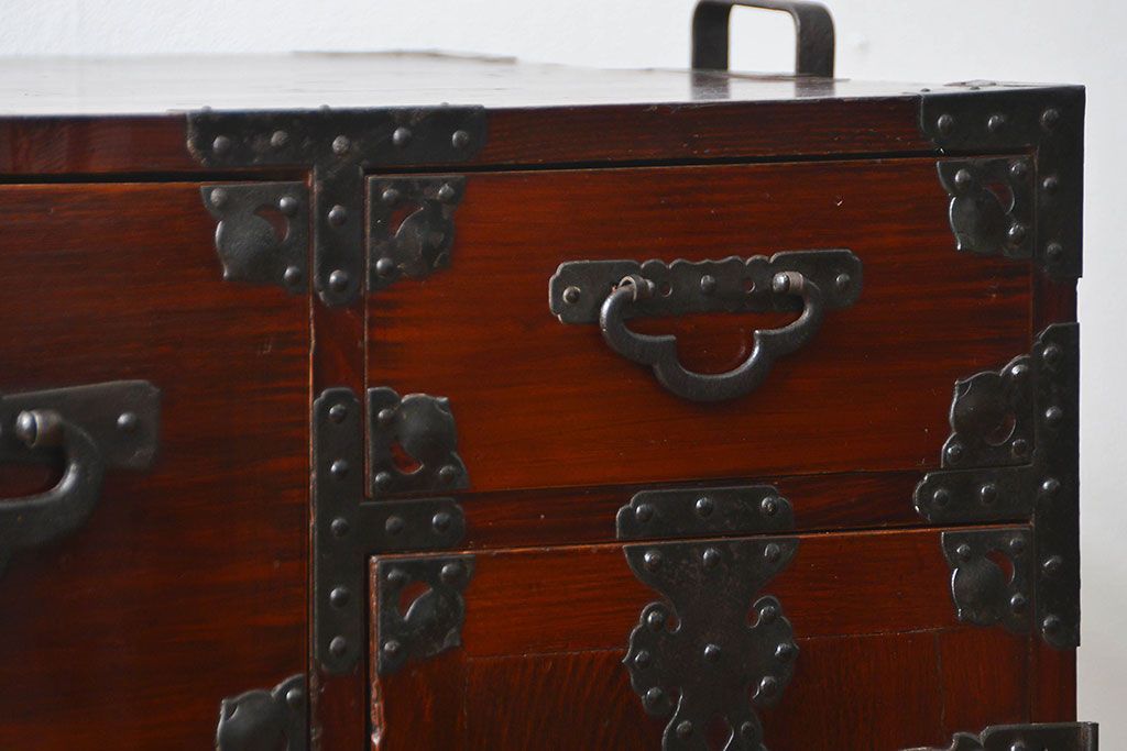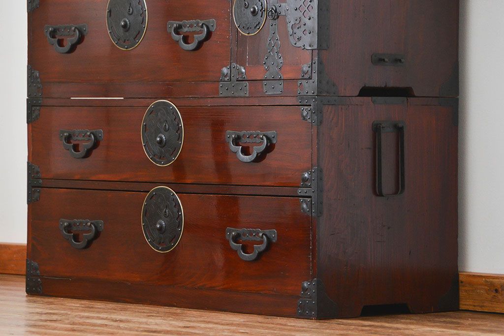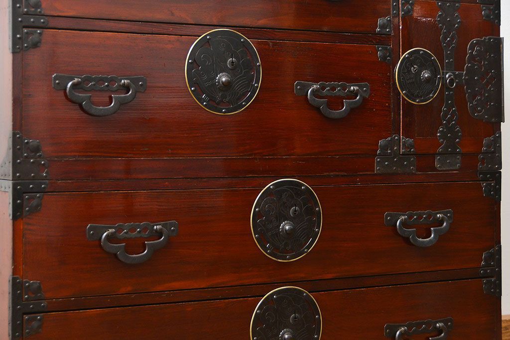 古民具・骨董 極上美品 蝶覆輪金具 前面栗材 米沢箪笥(時代箪笥)