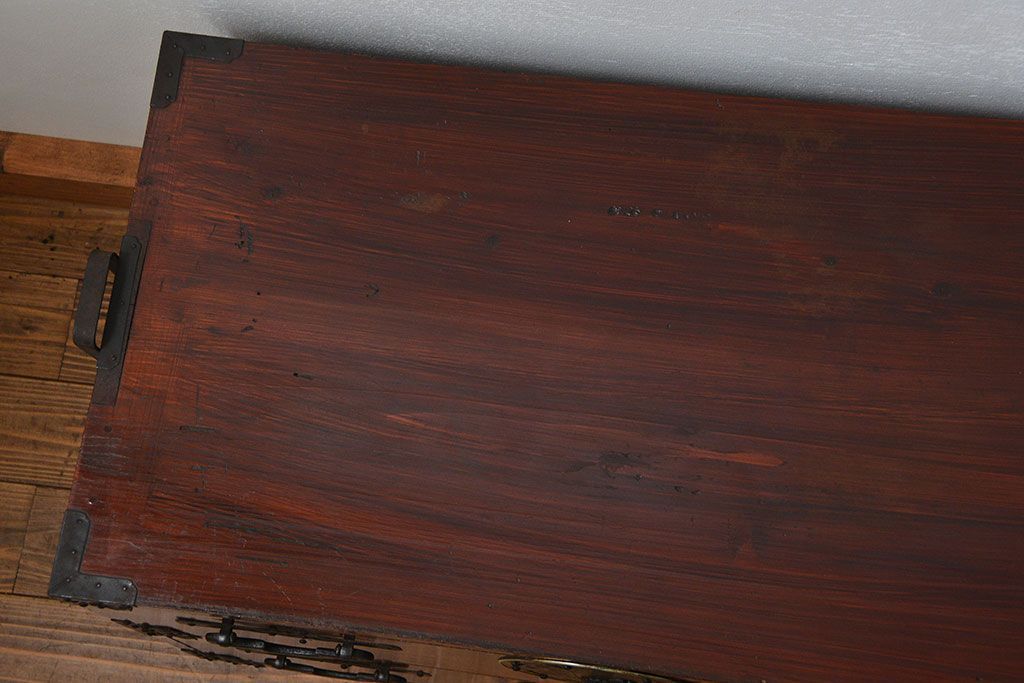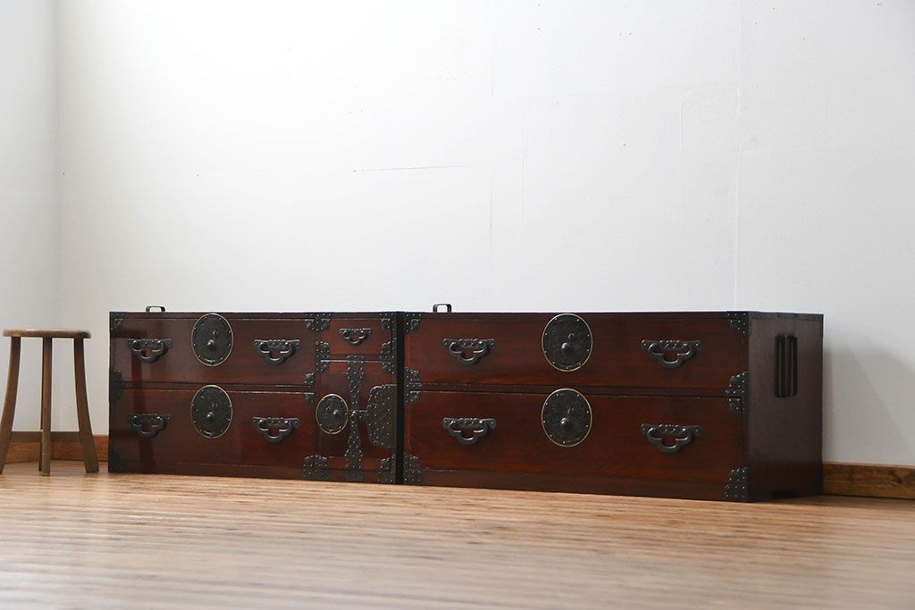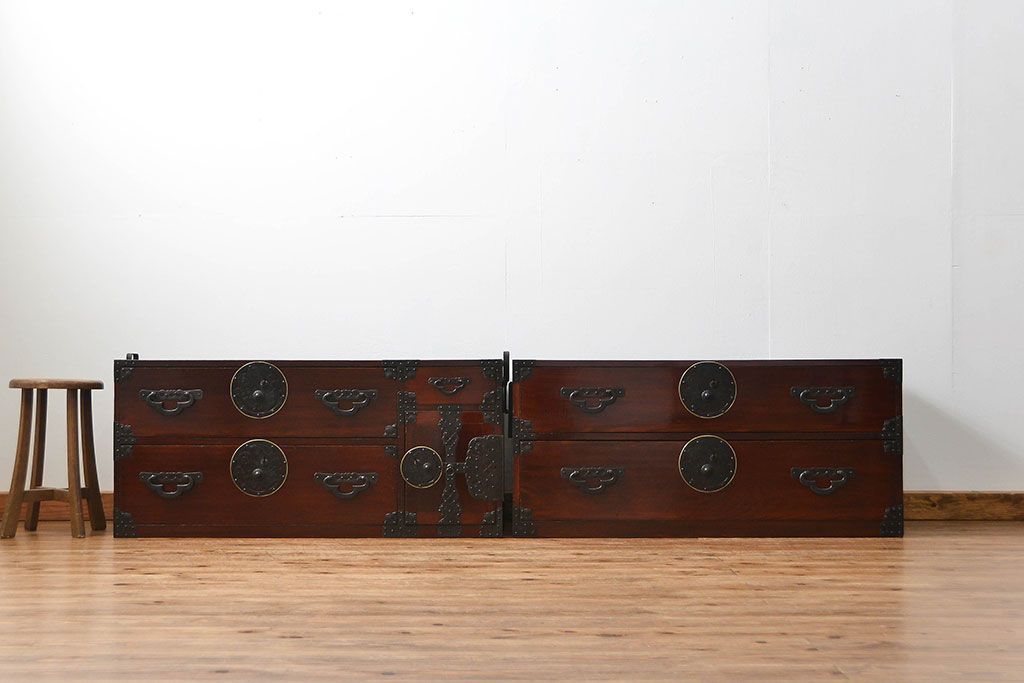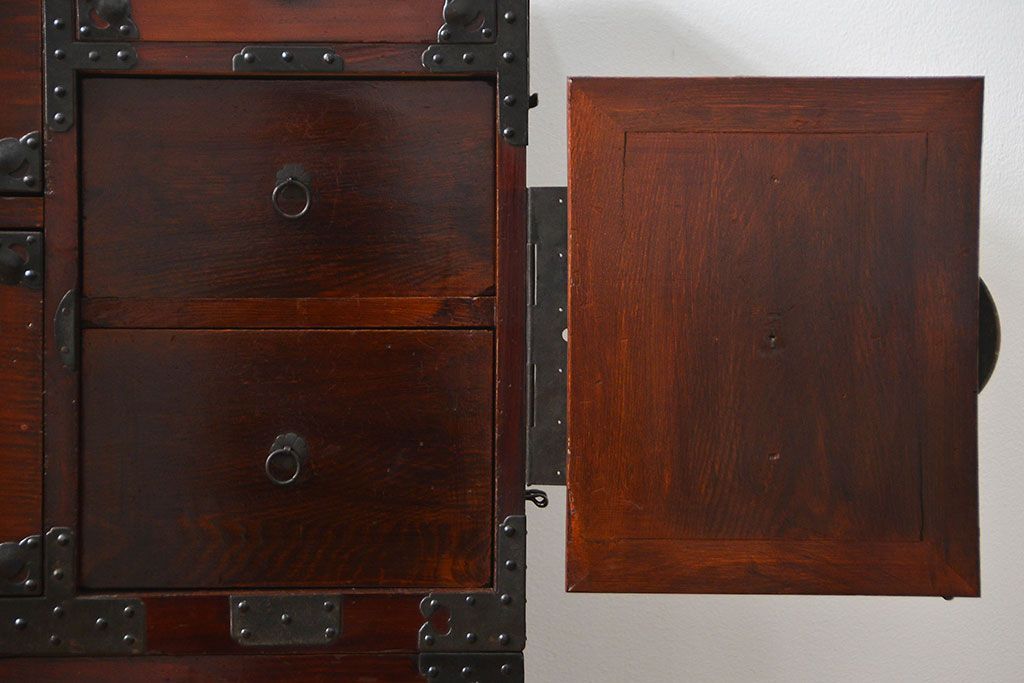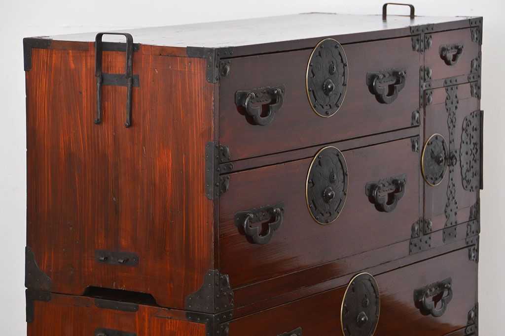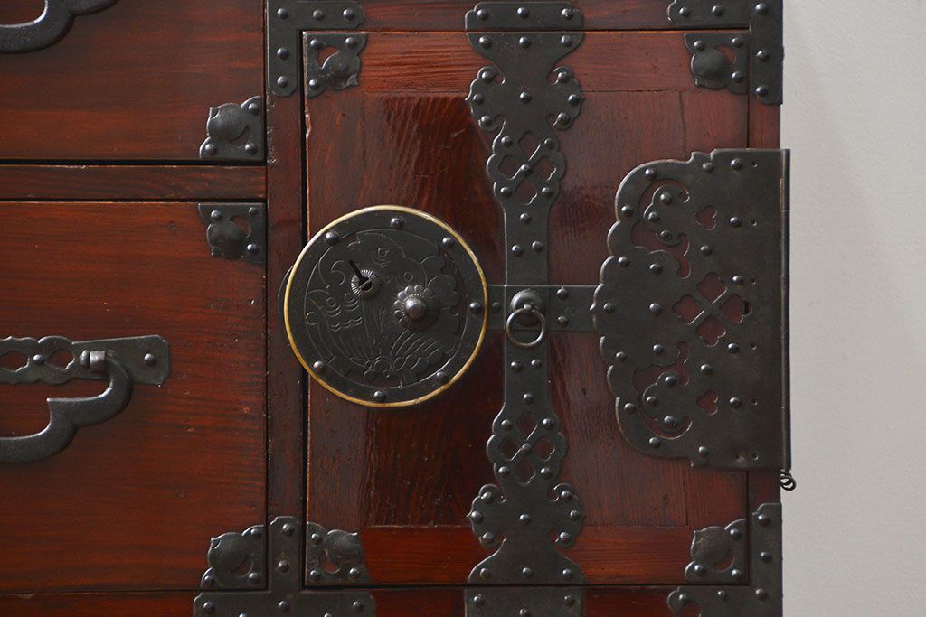 古民具・骨董 極上美品 蝶覆輪金具 前面栗材 米沢箪笥(時代箪笥)