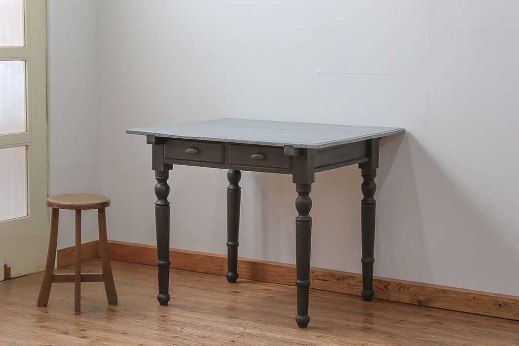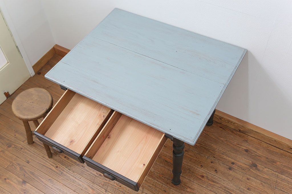 アンティーク家具 アンティークペイント 古い洋館で使われていたお洒落な平机(テーブル・デスク)