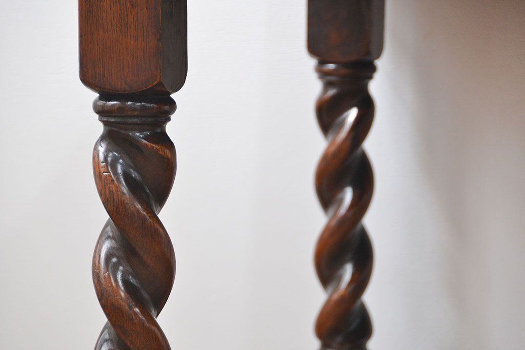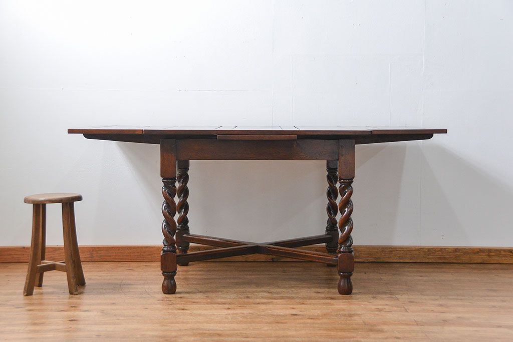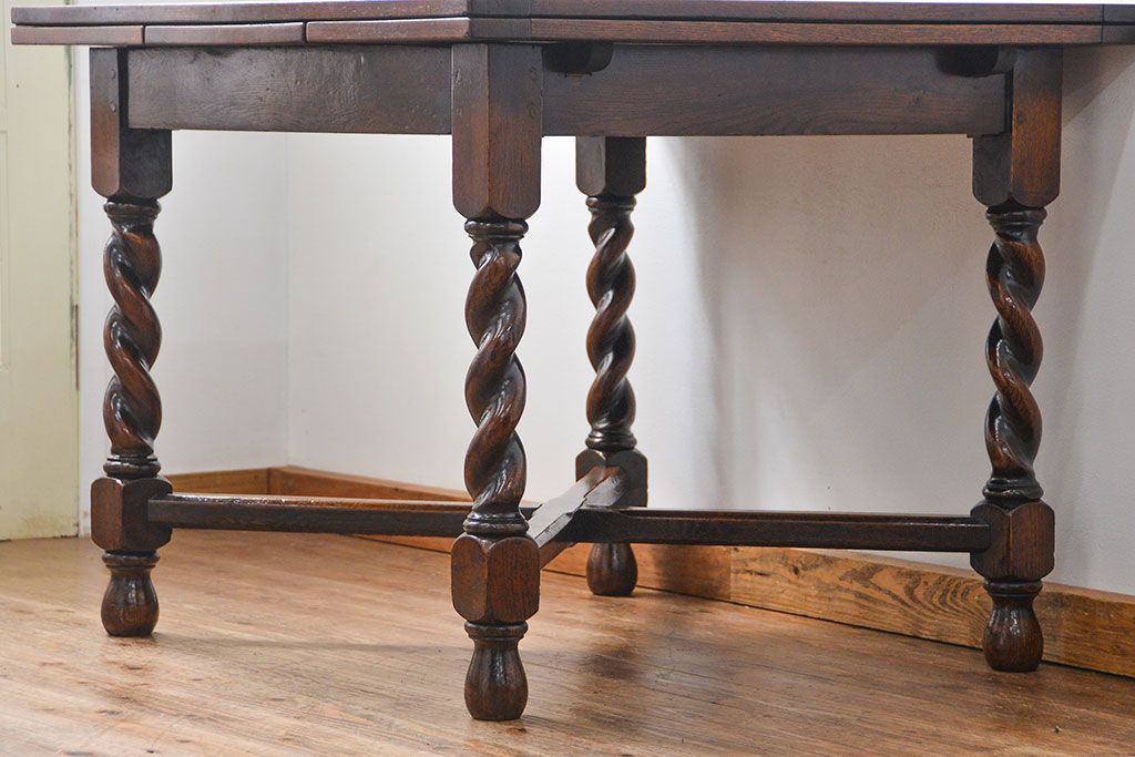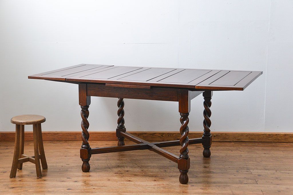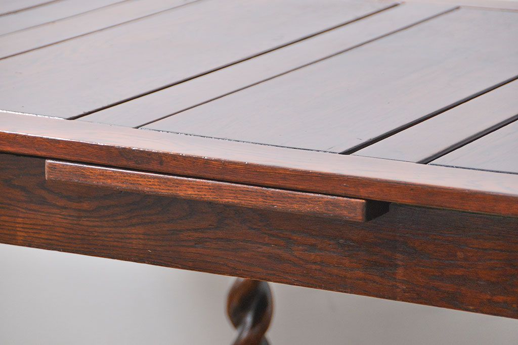 アンティーク家具 イギリスアンティーク ツイストレッグ オーク材 味わい深いドローリーフテーブル(エクステンションテーブル)