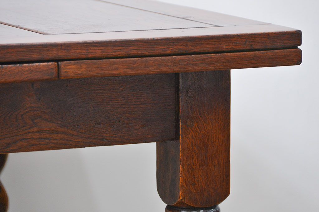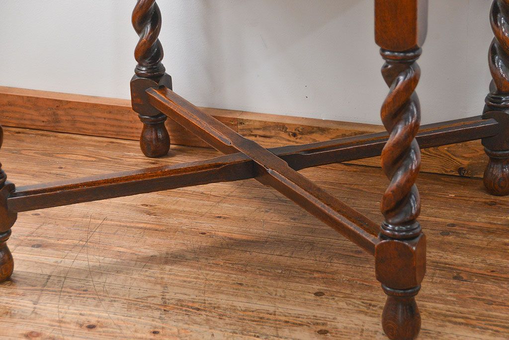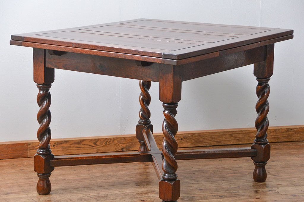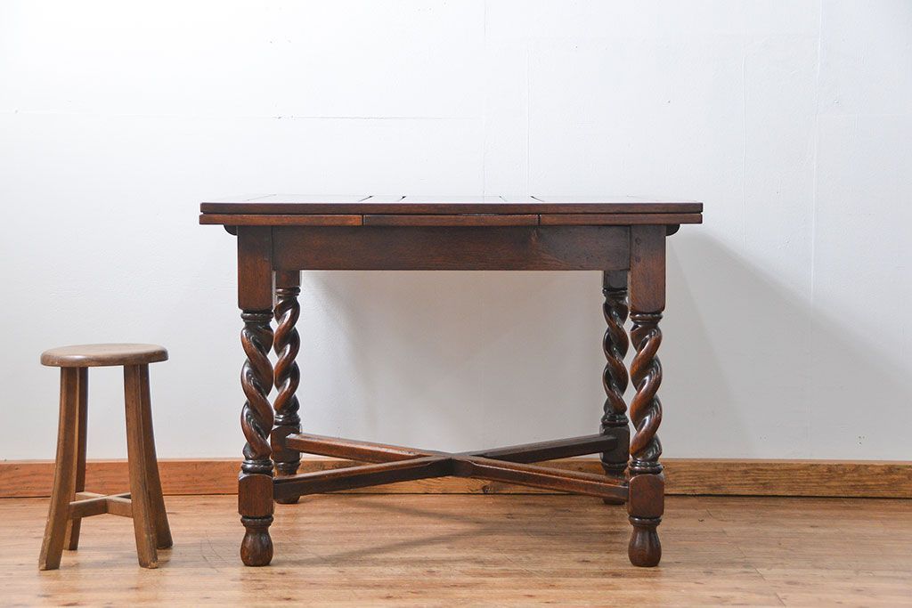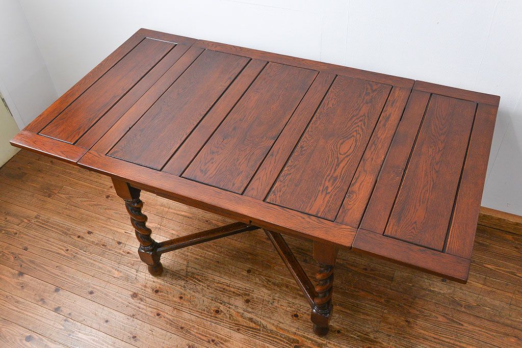 アンティーク家具 イギリスアンティーク ツイストレッグ オーク材 味わい深いドローリーフテーブル(エクステンションテーブル)