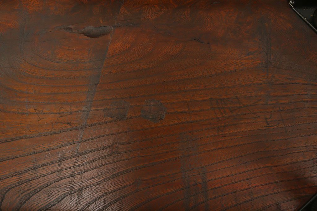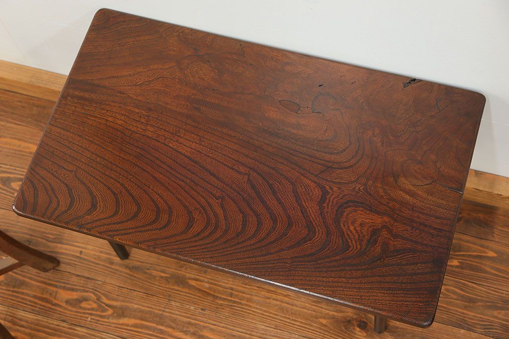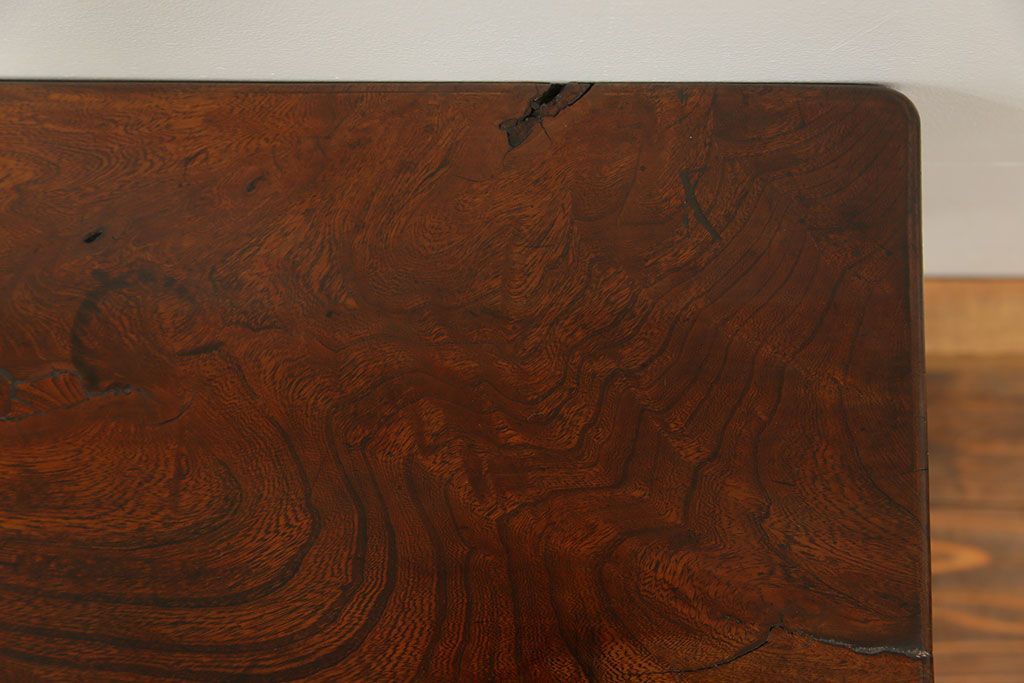 アンティーク家具 アンティーク 古い欅材 天板一枚板 杢目の素晴らしいセンターテーブル (机、サイドテーブル)