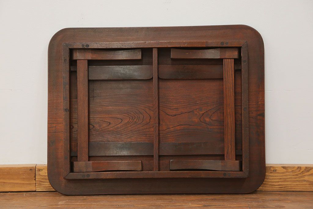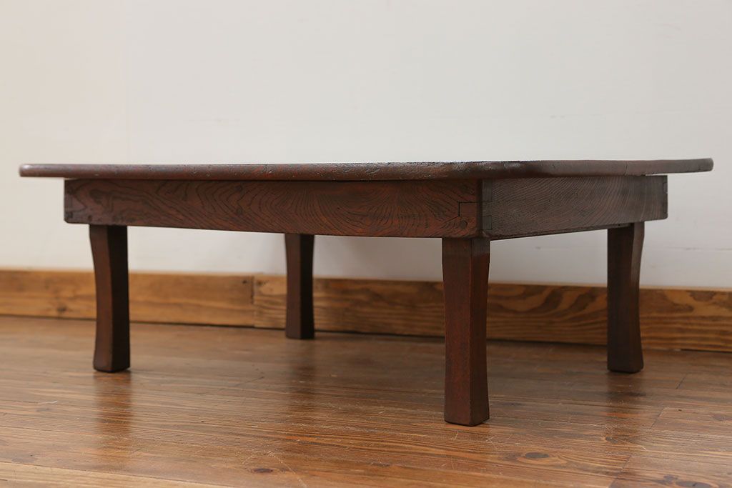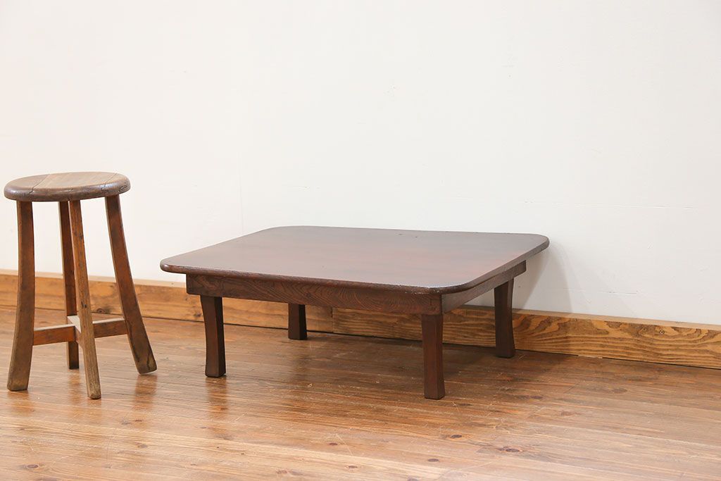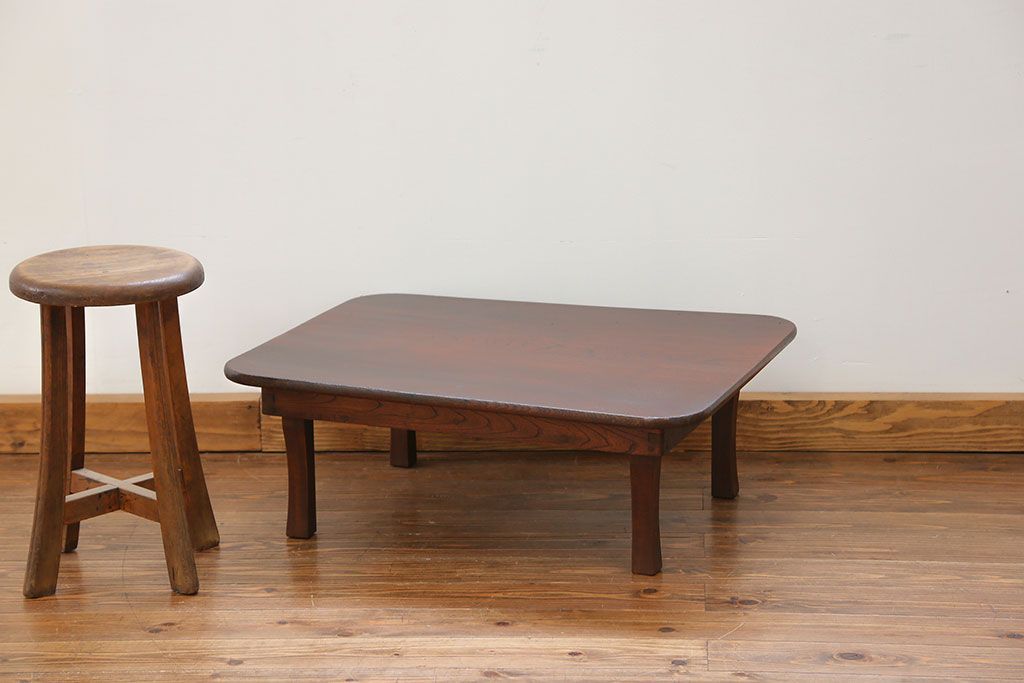レトロ家具 昭和レトロ 古い栓材の一枚板 角型ちゃぶ台 (テーブル)