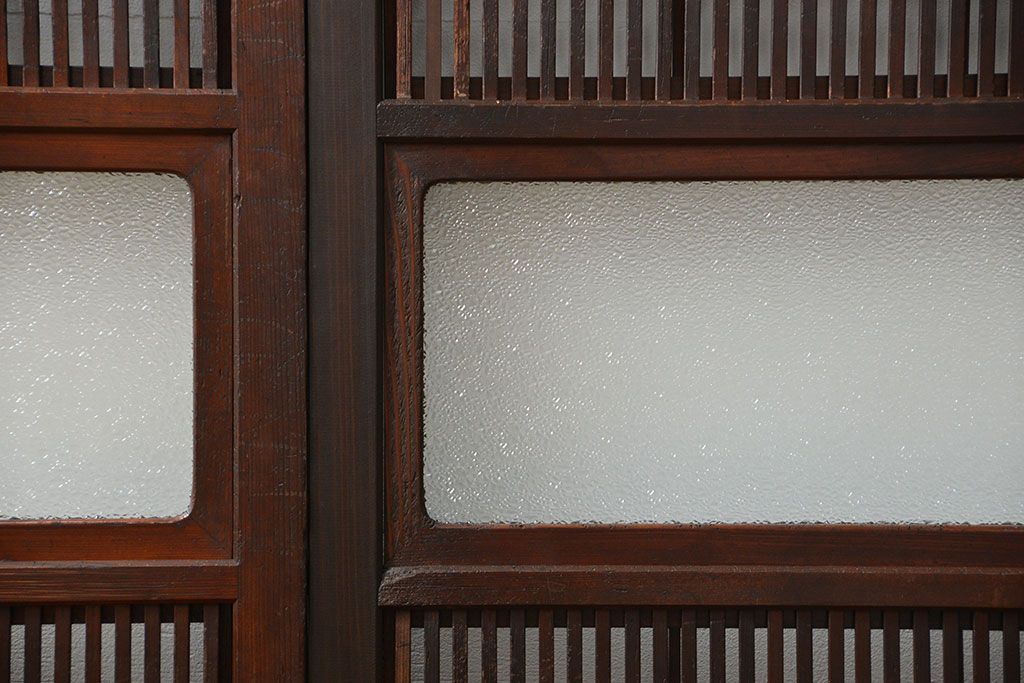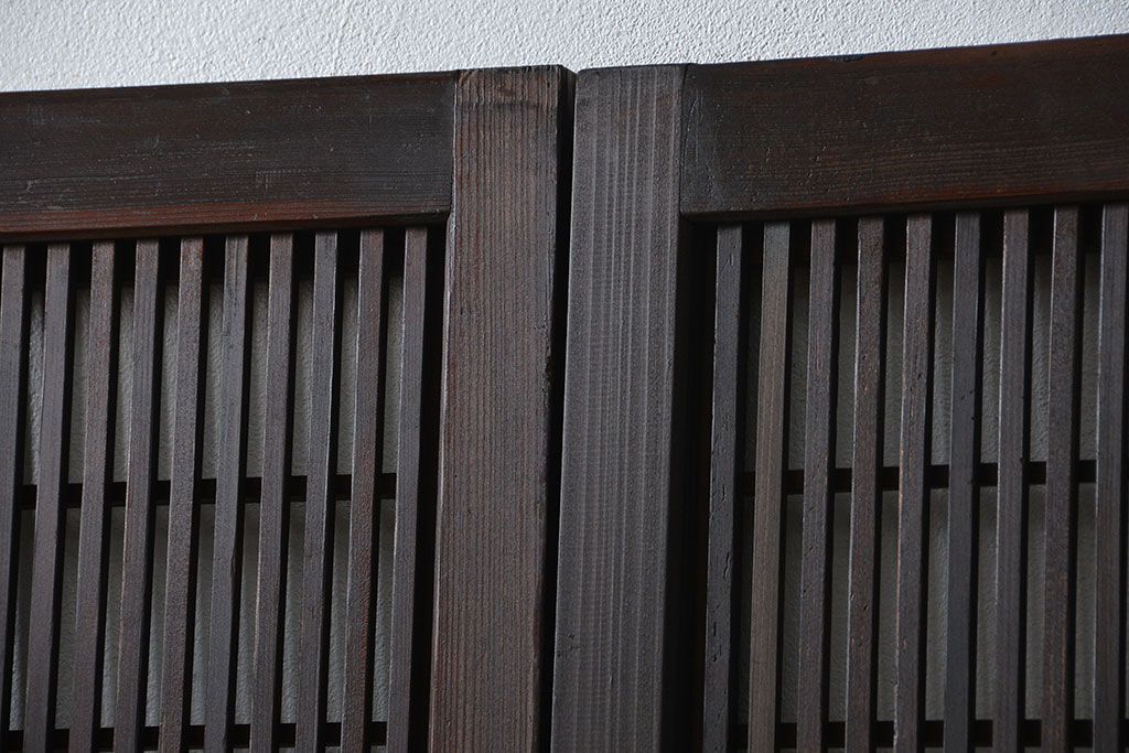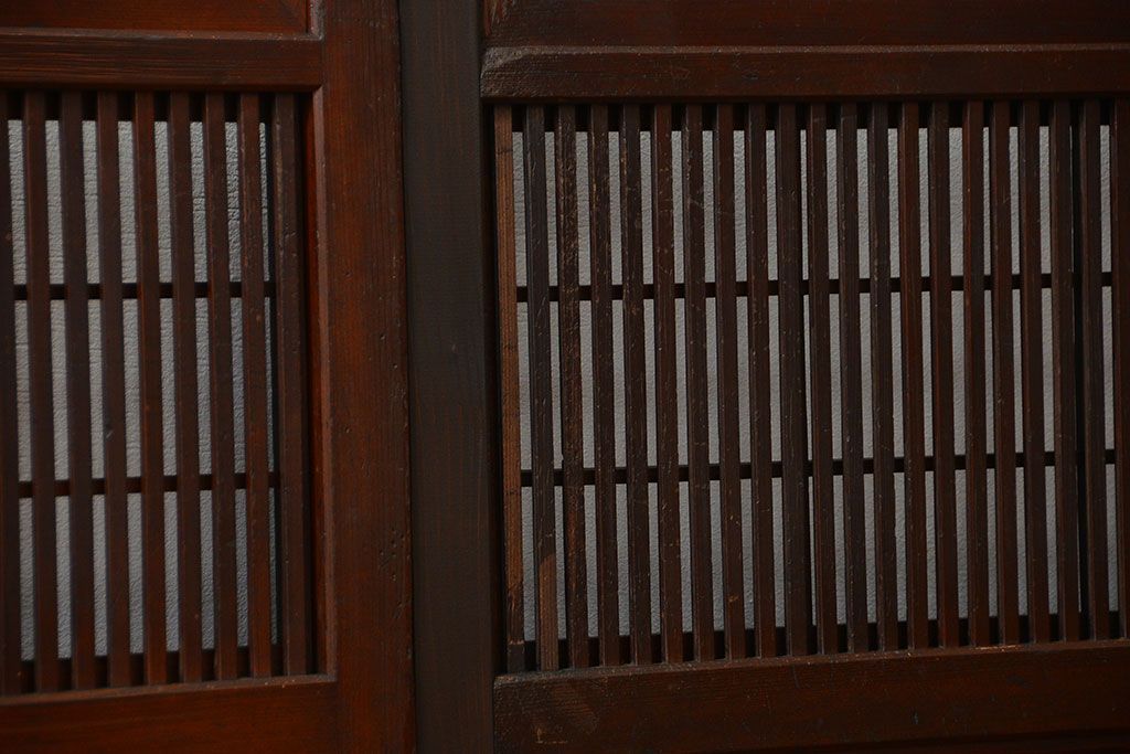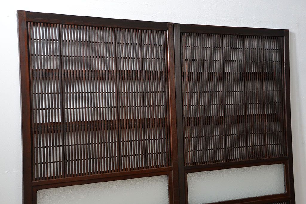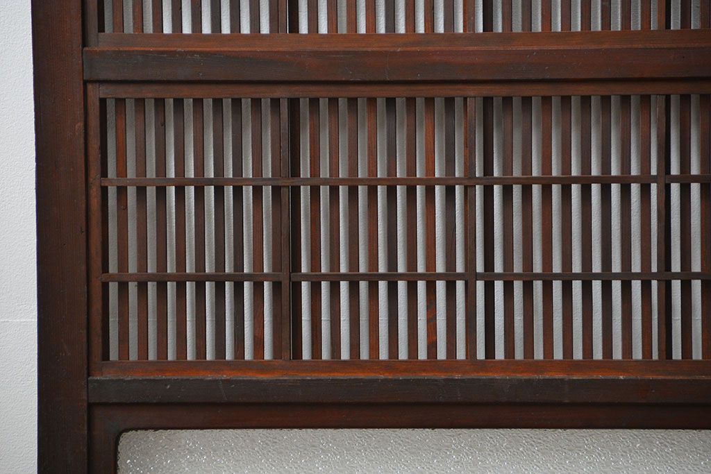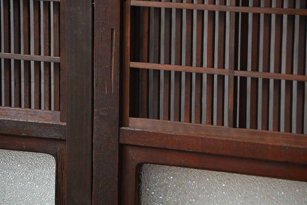 アンティーク 腰板欅材の上質な裏障子付き格子戸 2枚セット (和風建具、引き戸)です。