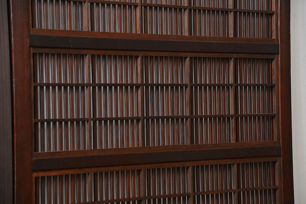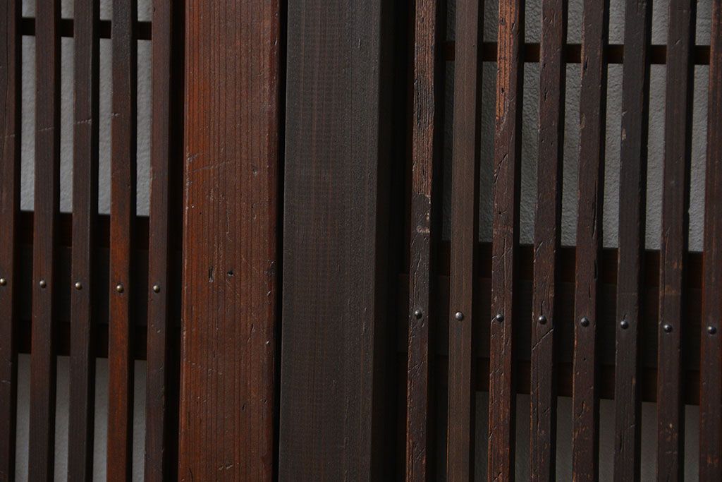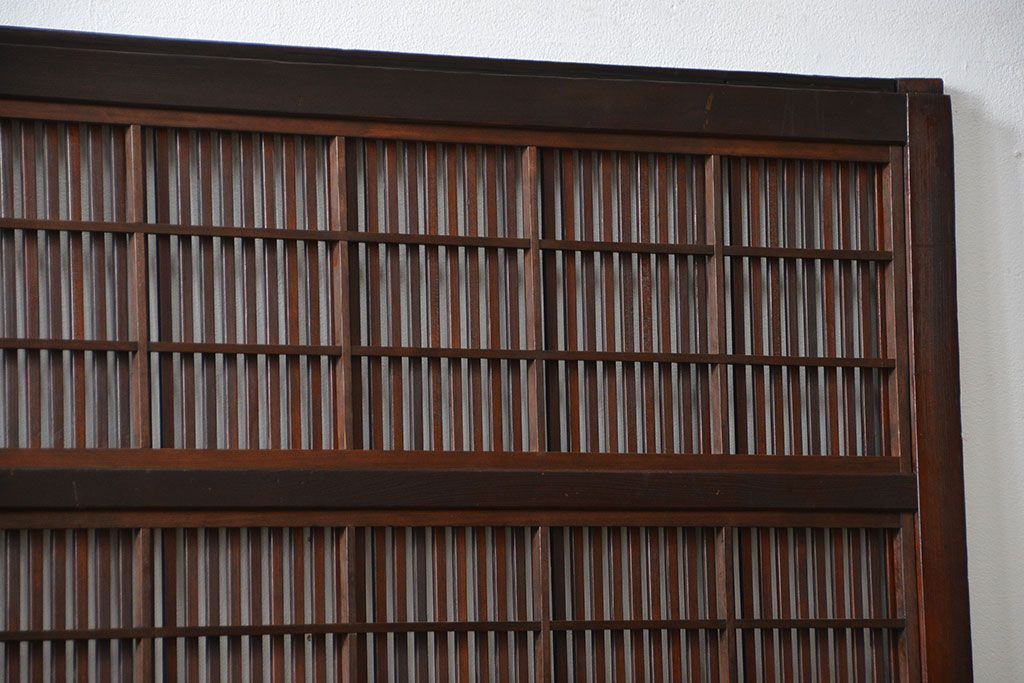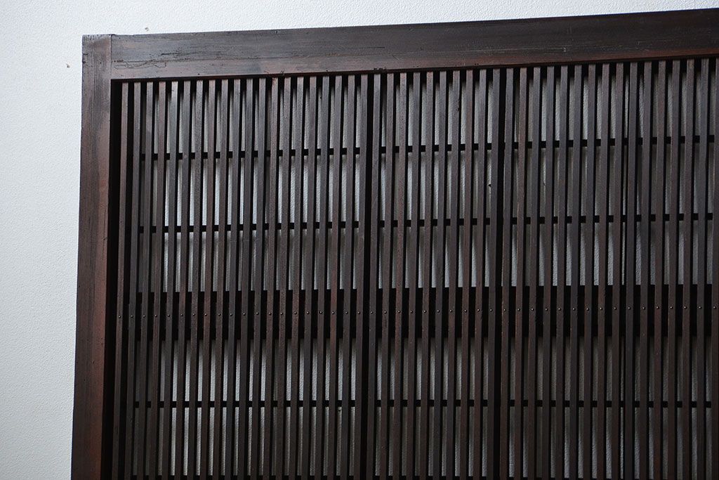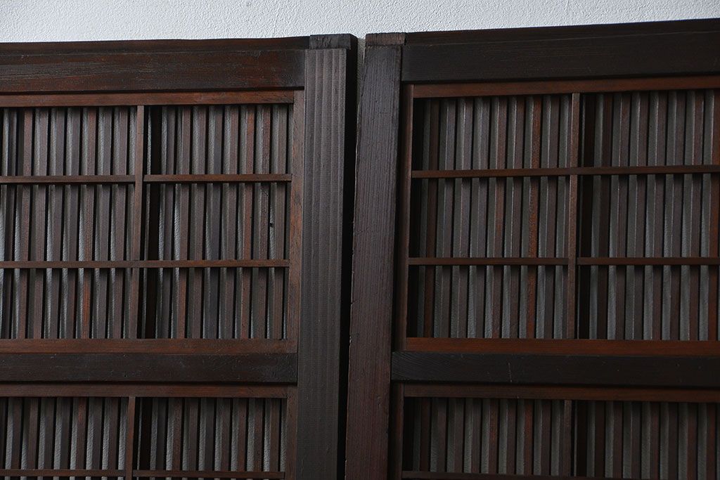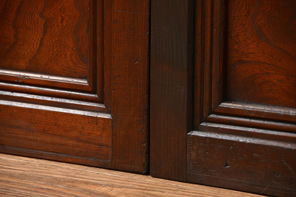 アンティーク 腰板欅材の上質な裏障子付き格子戸 2枚セット (和風建具、引き戸)です。