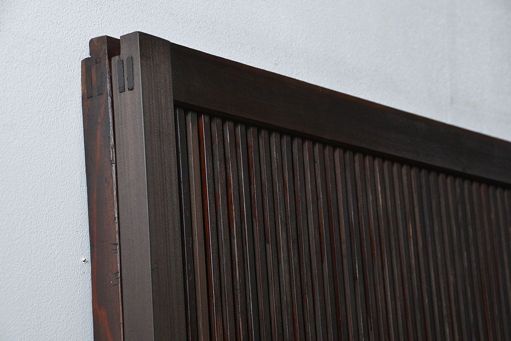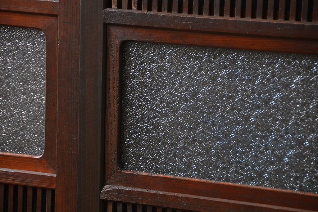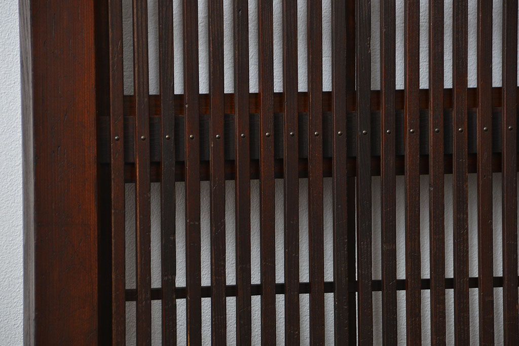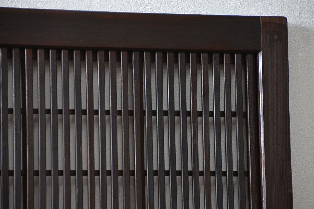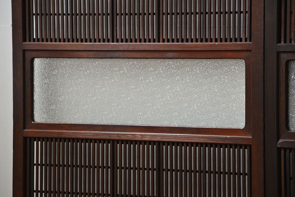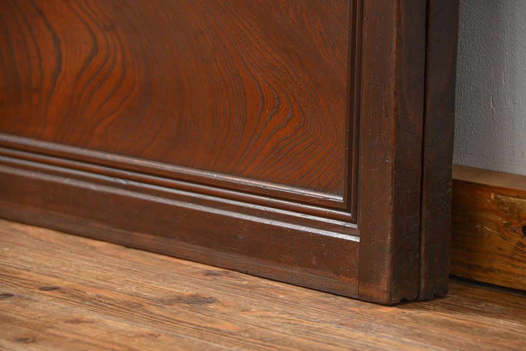 アンティーク 腰板欅材の上質な裏障子付き格子戸 2枚セット (和風建具、引き戸)です。