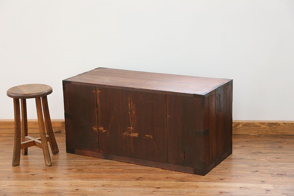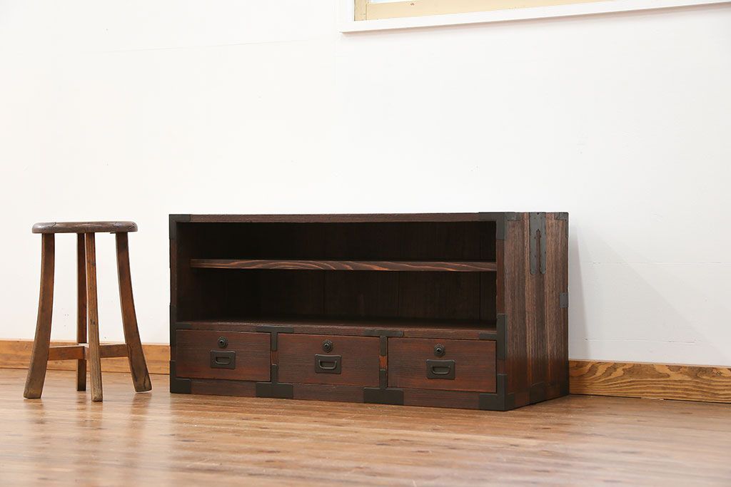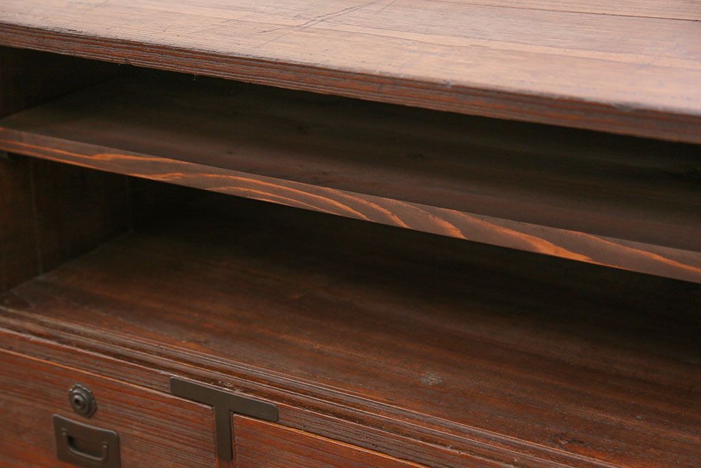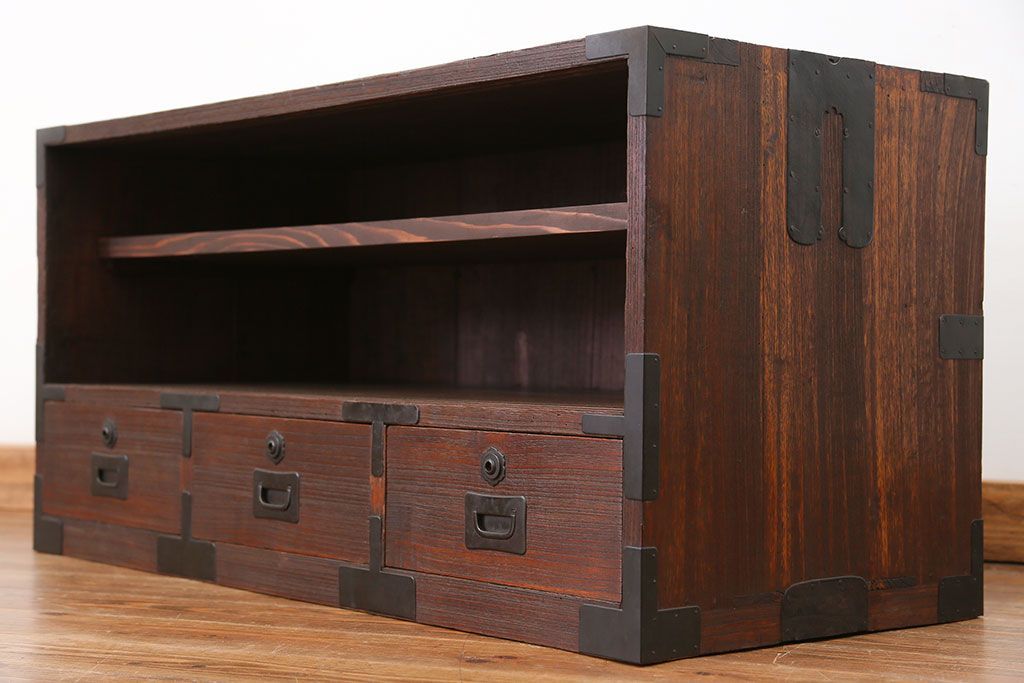 ラフジュ工房> キャビネット・戸棚> テレビ台・ローボード > レトロ家具 昭和レトロ 古い木の時代箪笥ローボード(ローチェスト)