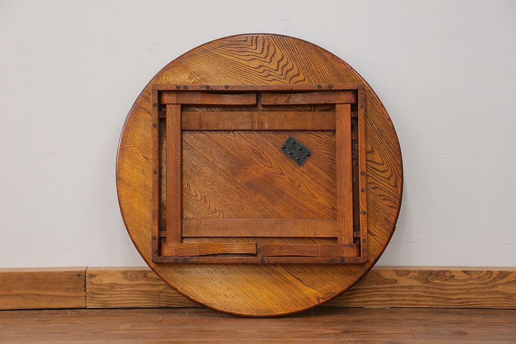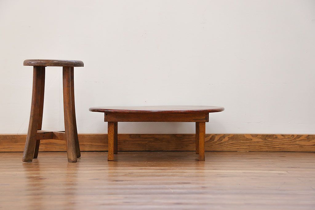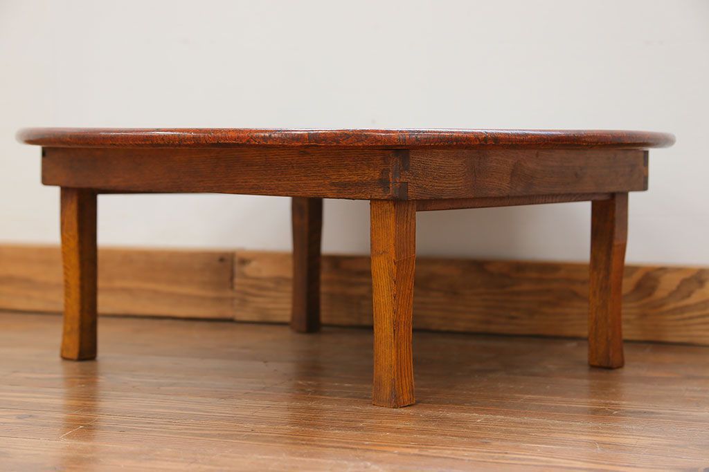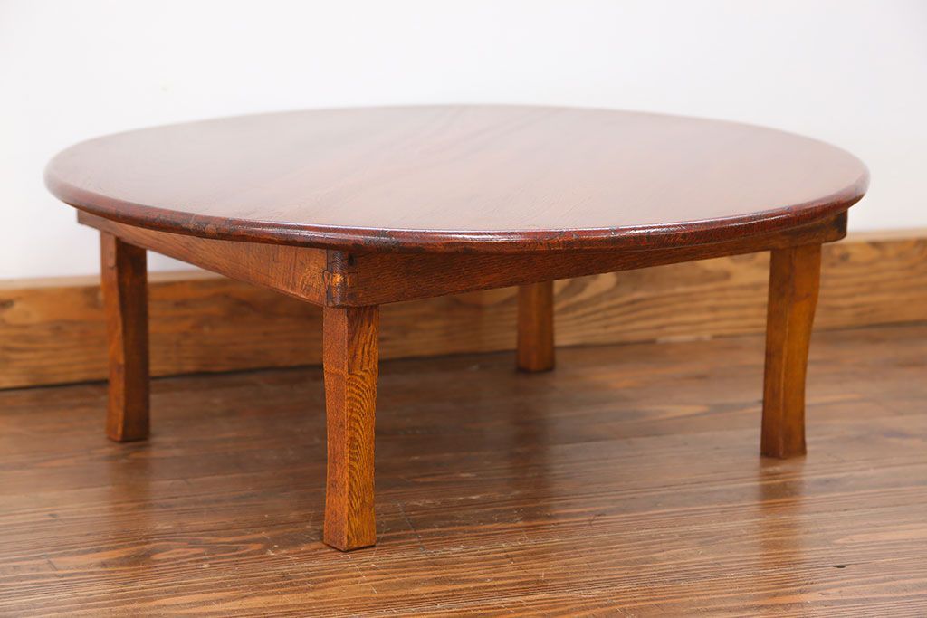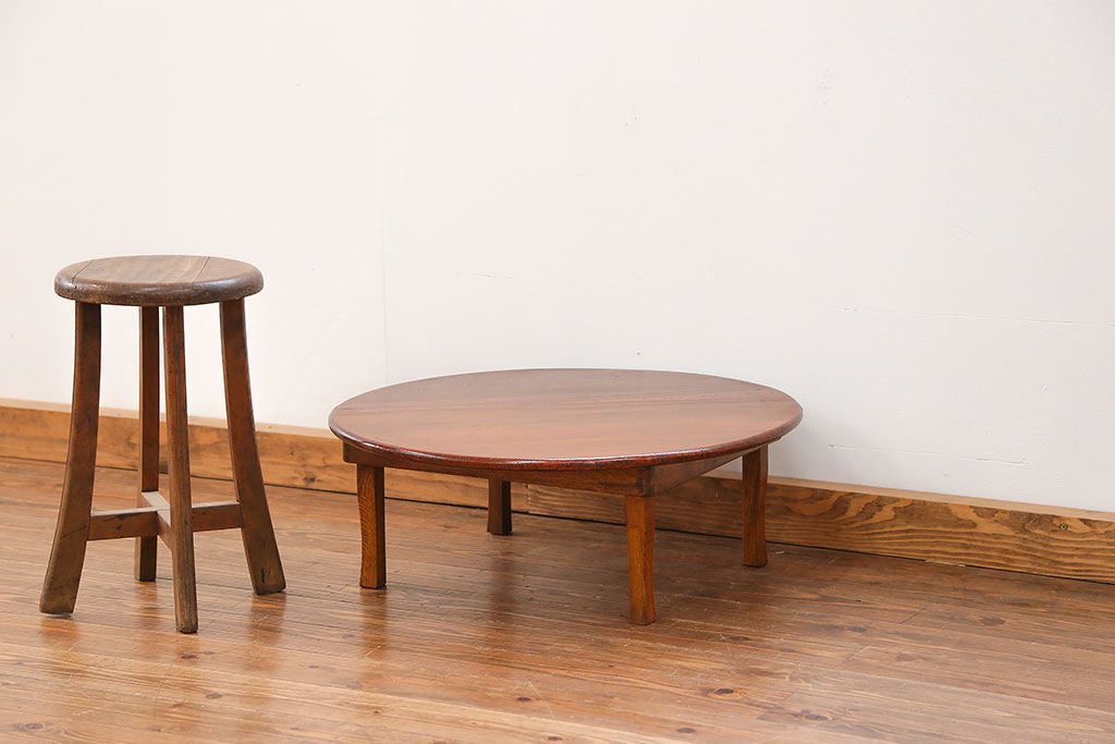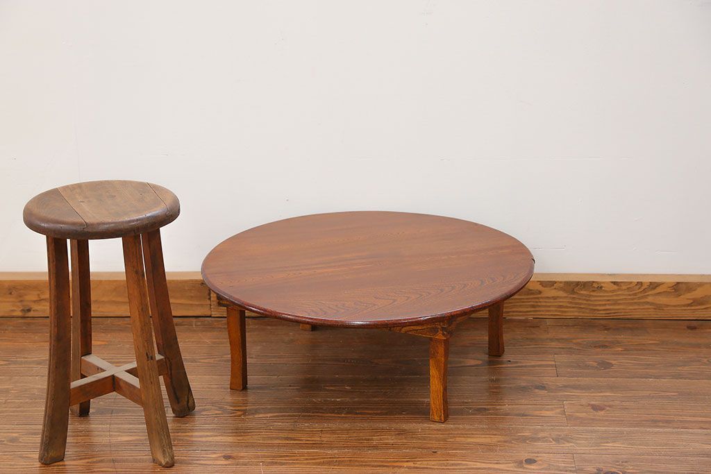 アンティーク キレイな杢目の小振りな丸型ちゃぶ台(テーブル)です。