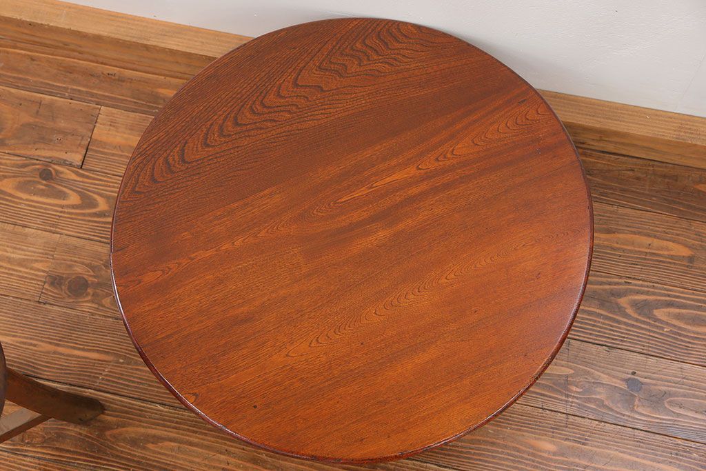 アンティーク家具 アンティーク キレイな杢目の小振りな丸型ちゃぶ台(テーブル)