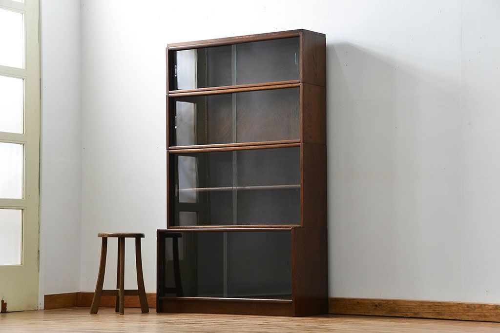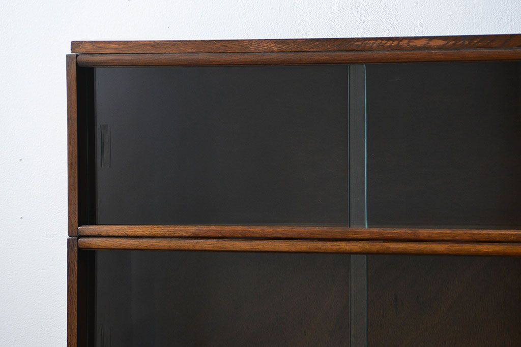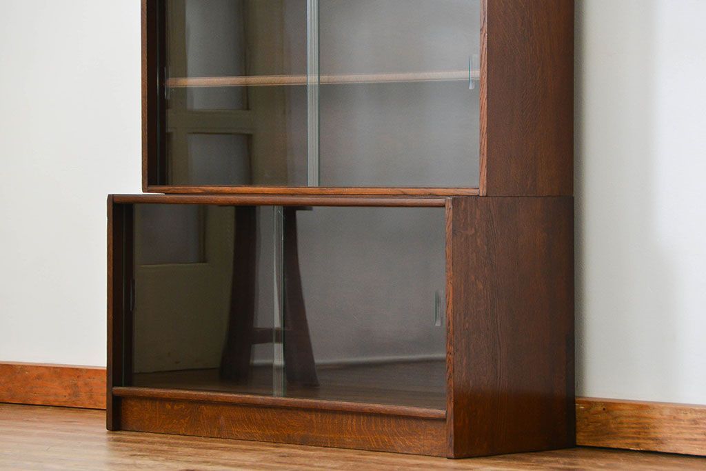 アンティーク家具 イギリスアンティーク シンプルなデザインのオーク材 スタッキングブックケース(2)(ガラスケース、本箱、収納棚)