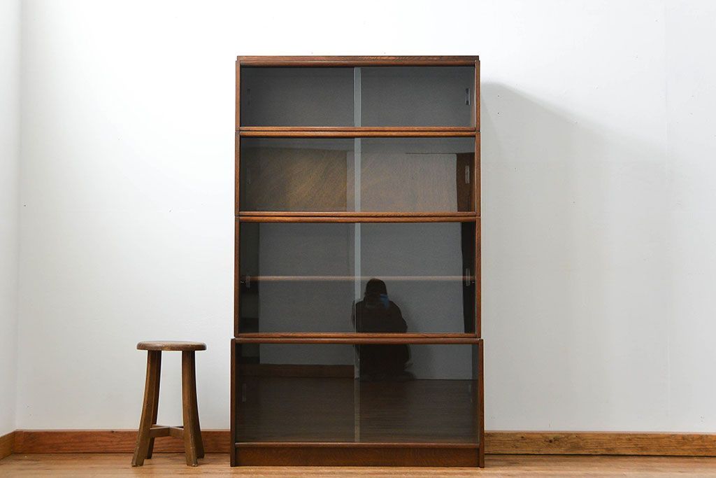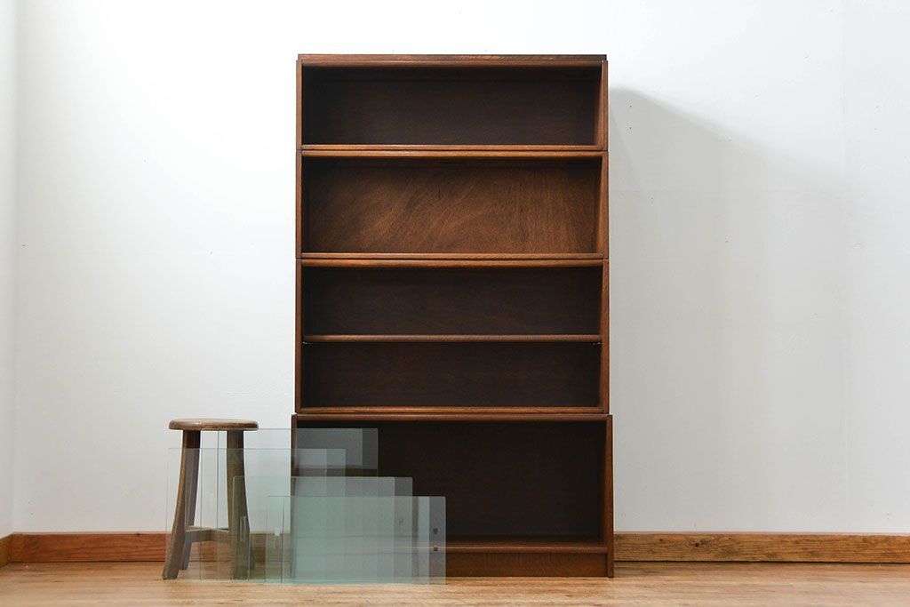 キャビネット・戸棚> 本箱 > アンティーク家具 イギリスアンティーク シンプルなデザインのオーク材 スタッキングブックケース(2)(ガラスケース、本箱、収納棚)