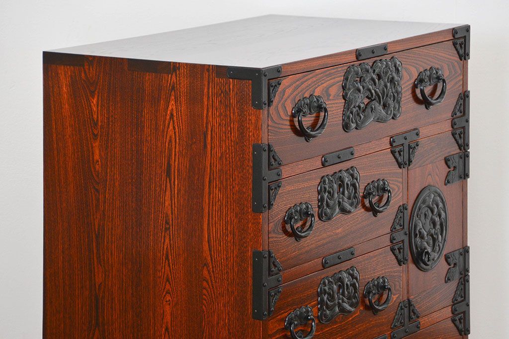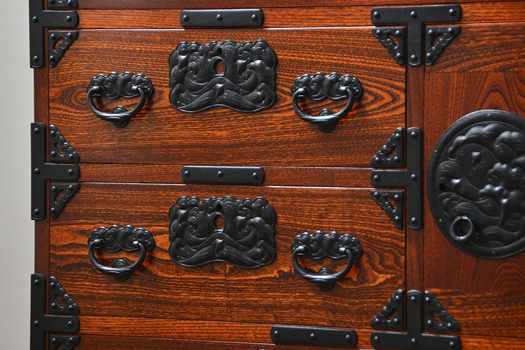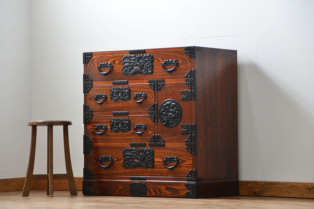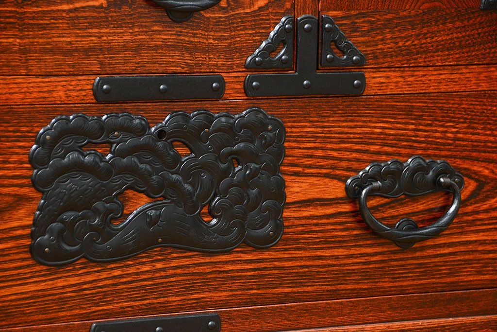 ラフジュ工房> 和箪笥 > 中古 秋田県 川連漆器伝統工芸 無垢材 がんこ箪笥(定価 約40万円)