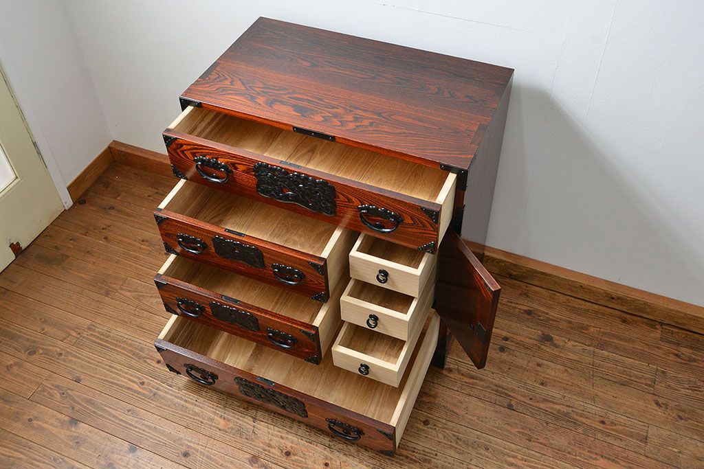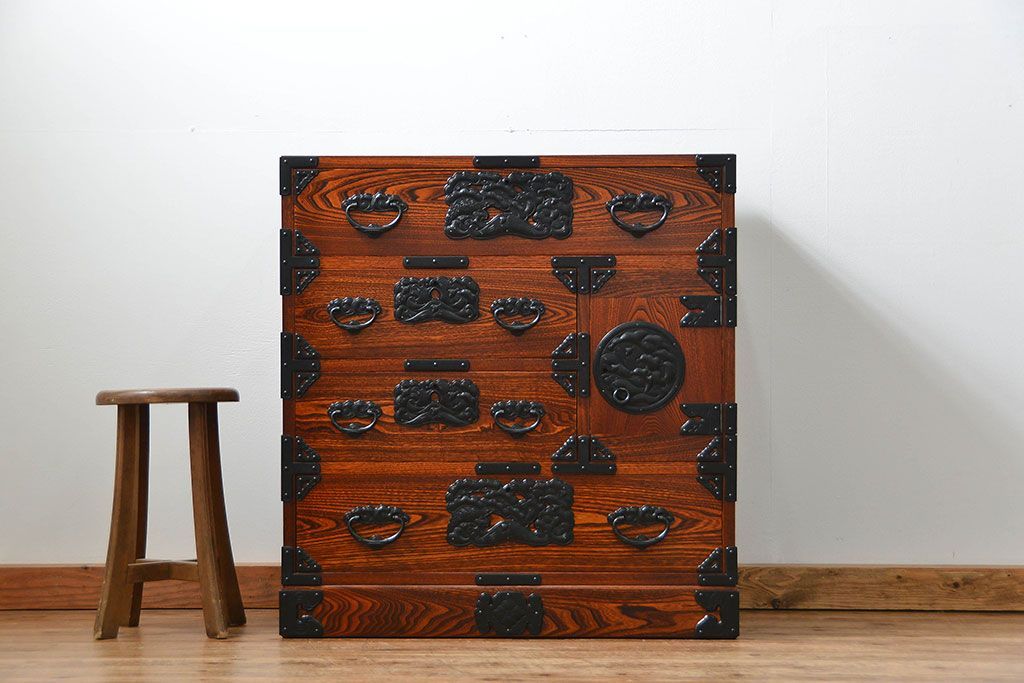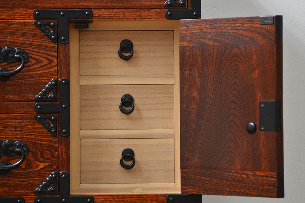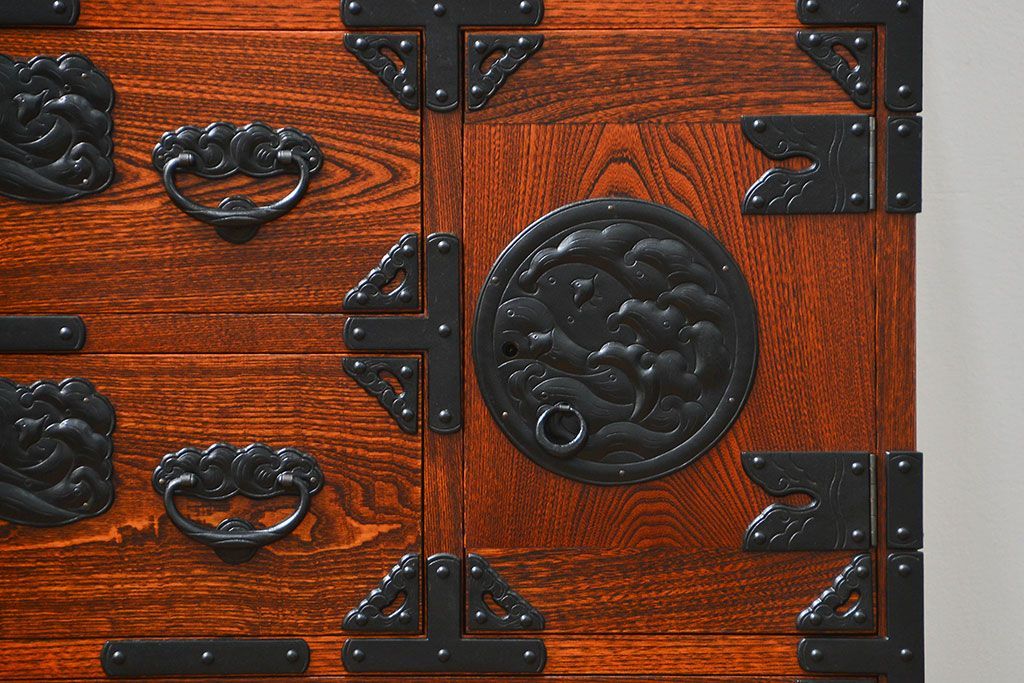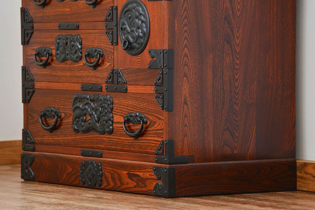 ラフジュ工房> 和箪笥 > 中古 秋田県 川連漆器伝統工芸 無垢材 がんこ箪笥(定価 約40万円)