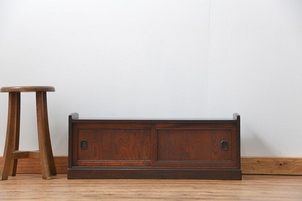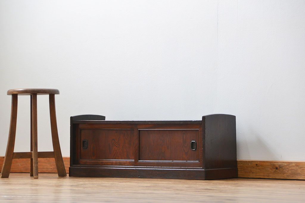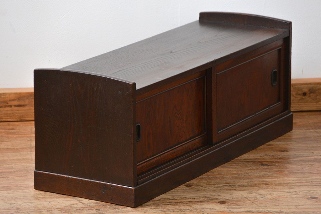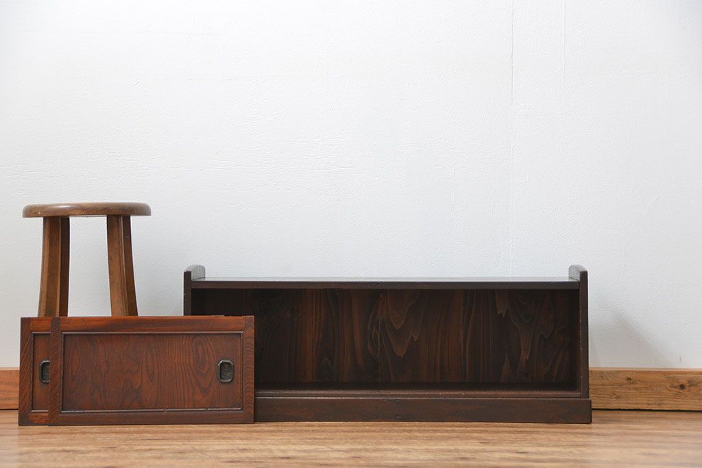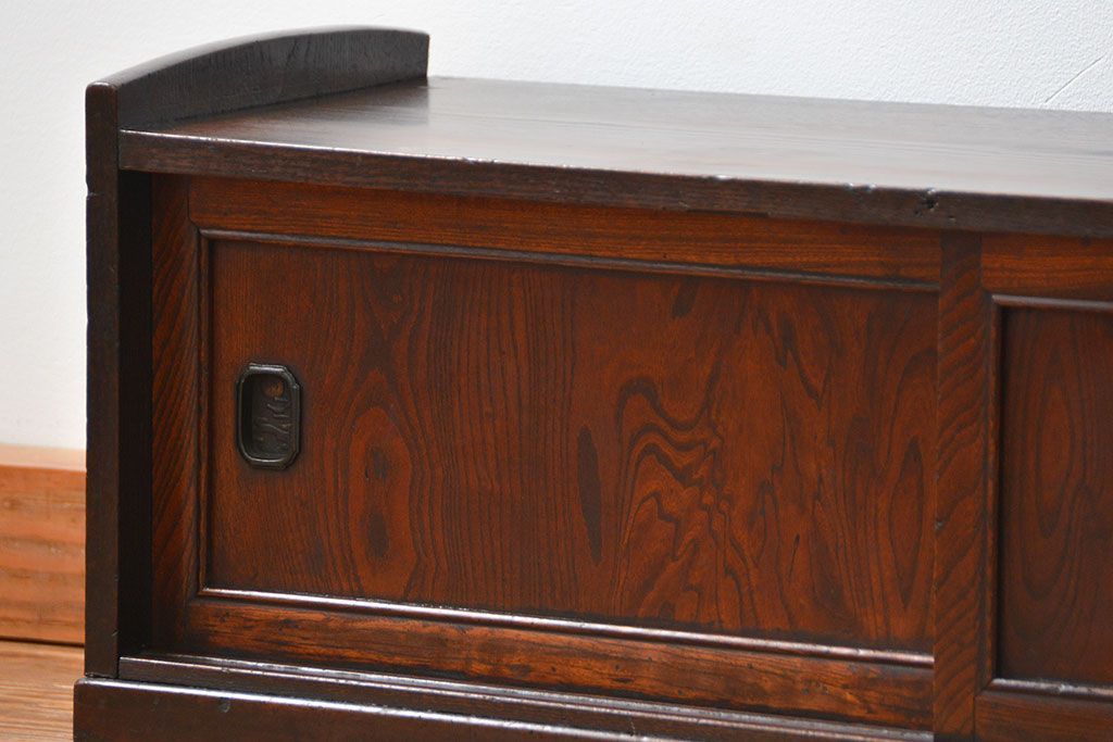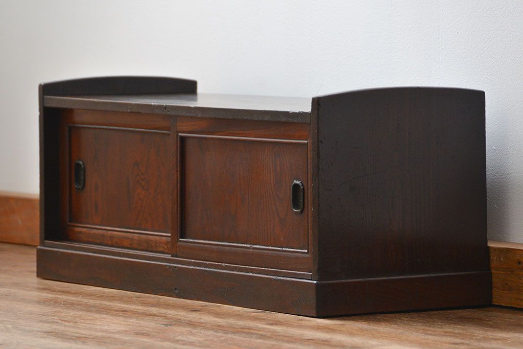 アンティーク家具 古民具・骨董 古い欅材と栗材の小振りな置き床(置床、ローボード)