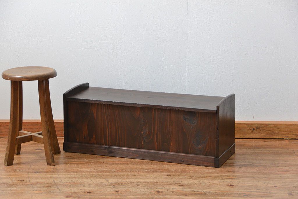 古民具・骨董 古い欅材と栗材の小振りな置き床(置床、ローボード)です。
