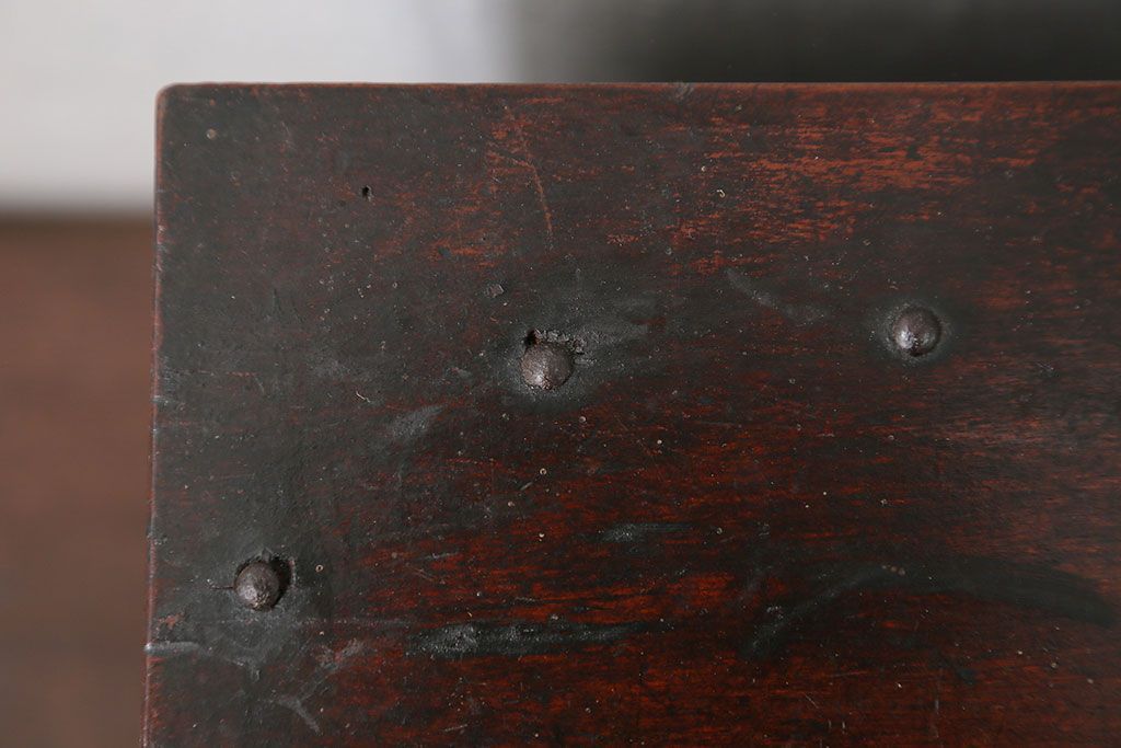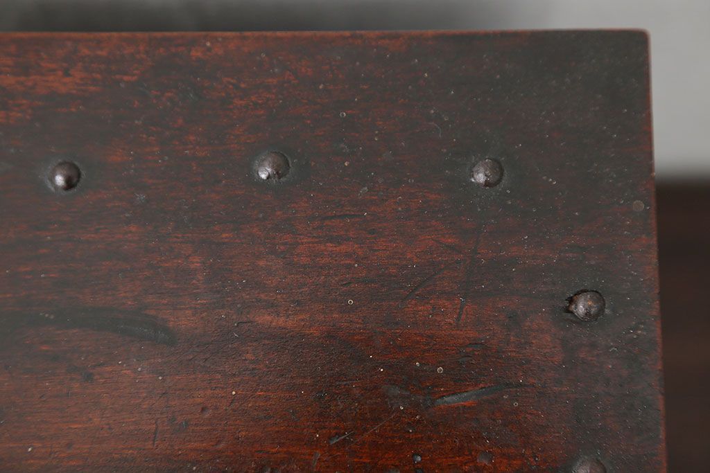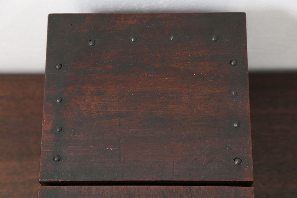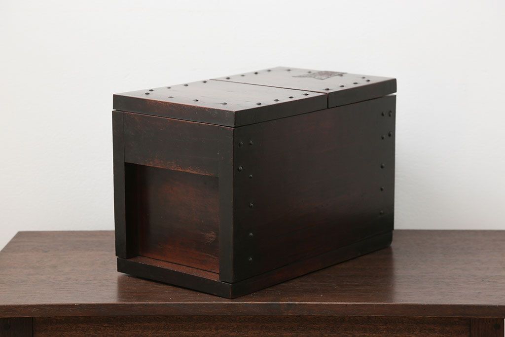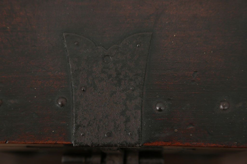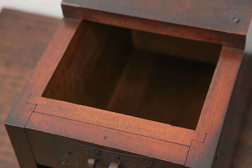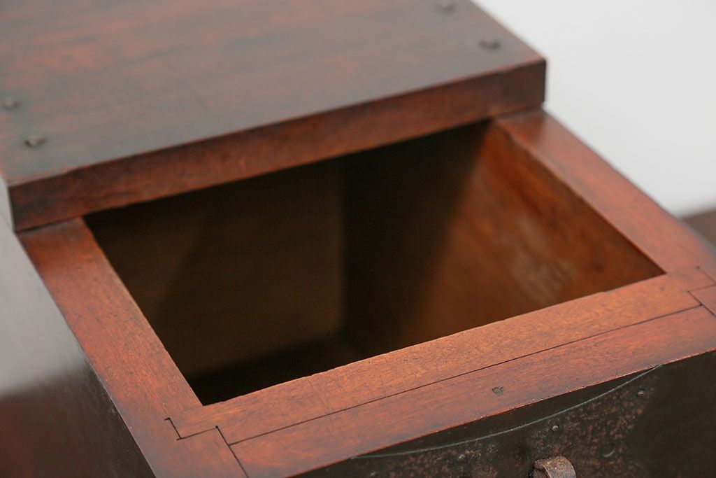 アンティーク雑貨 古民具・骨董 錠前付きの古い桜材の重厚な銭箱(銭函)