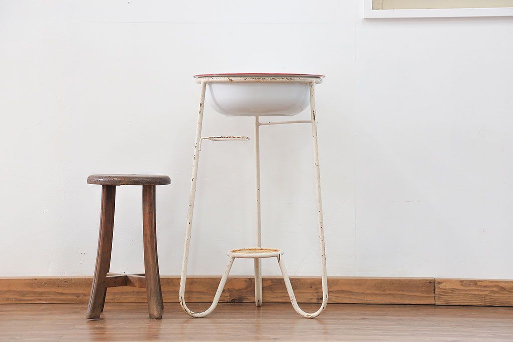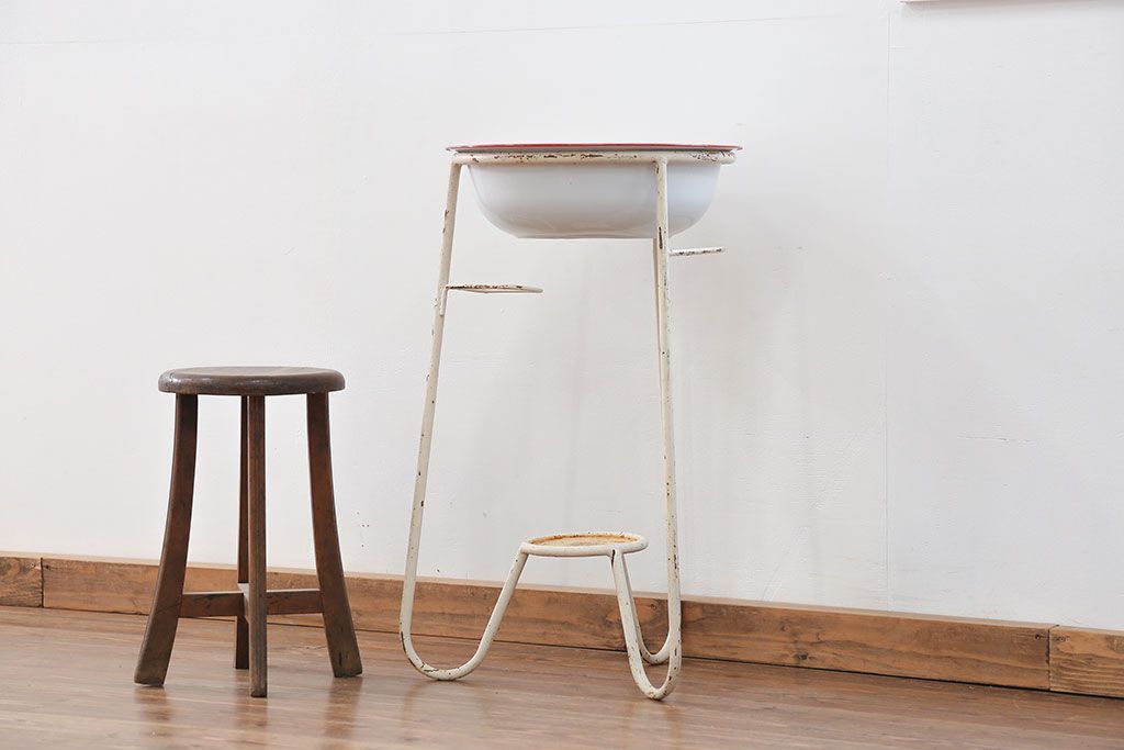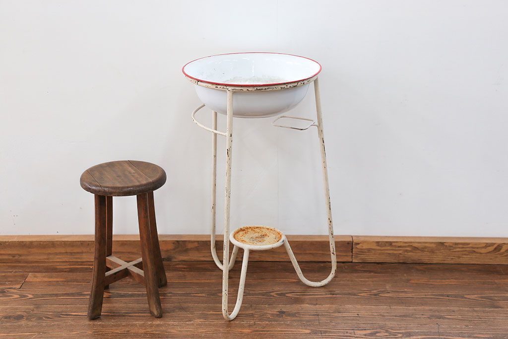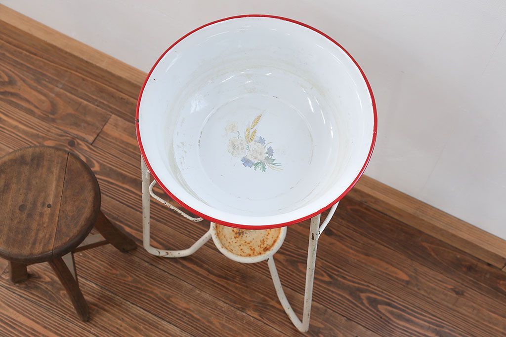アンティーク雑貨 イギリスアンティーク 大振りなホーロー洗面器(ウォッシュスタンド、シンク、手洗スタンド)