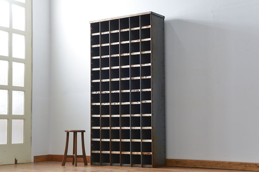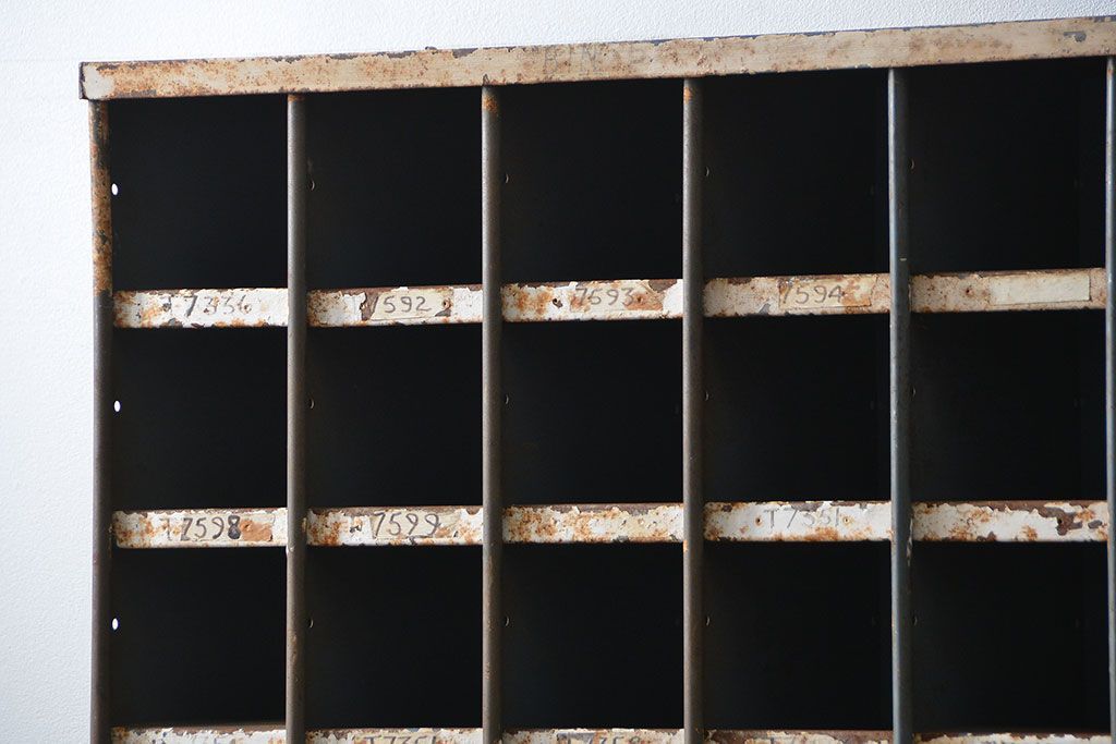 ヴィンテージ家具 イギリスビンテージ インダストリアル(工業系)アイアン部品棚(マス目棚、升目棚)