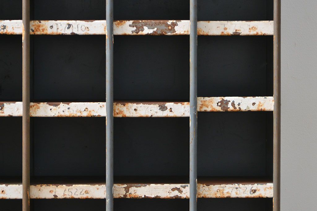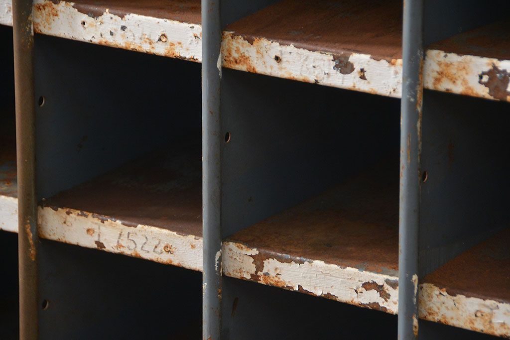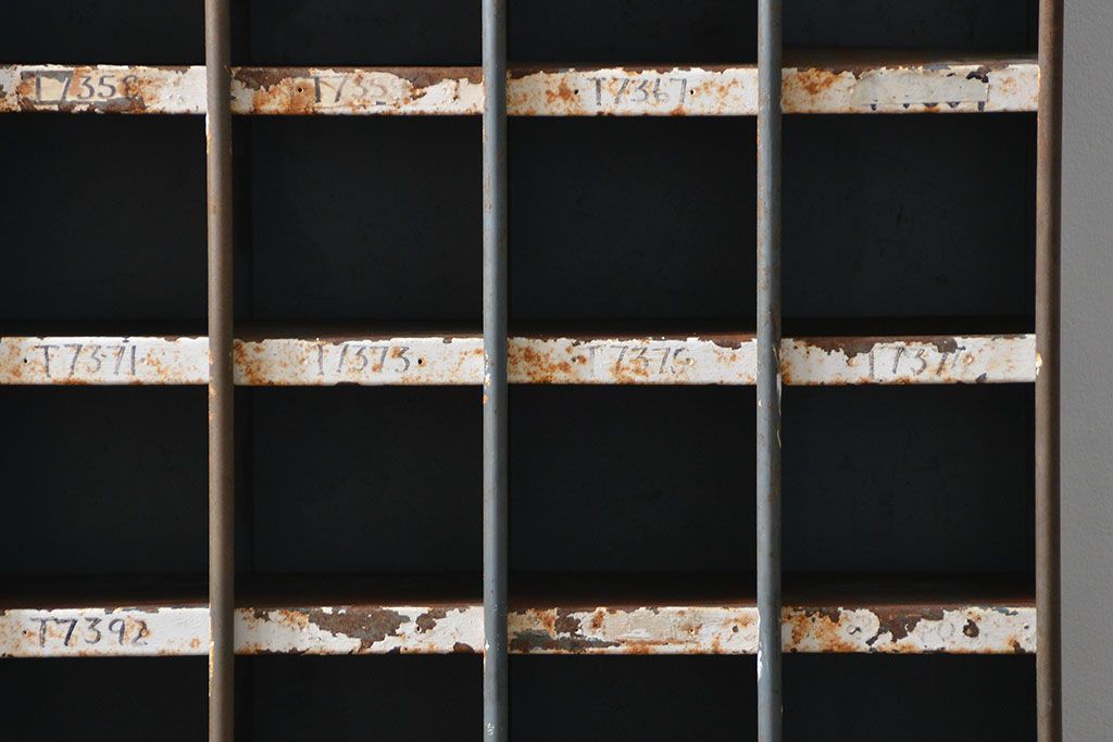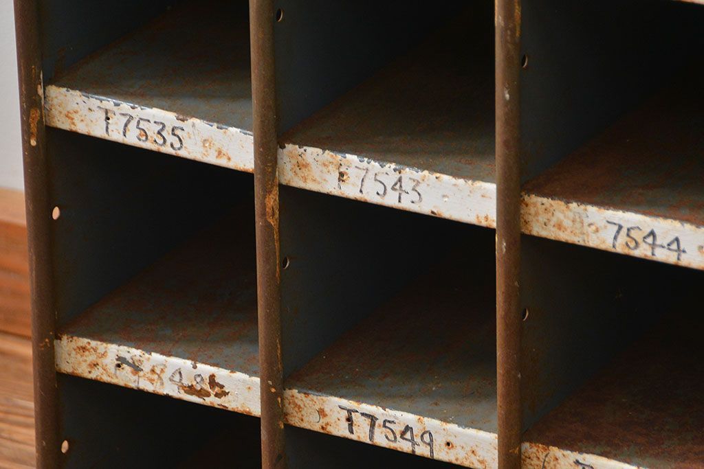 ラフジュ工房> オープンラック・シェルフ> ディスプレイラック > ヴィンテージ家具 イギリスビンテージ インダストリアル(工業系)アイアン部品棚(マス目棚、升目棚)