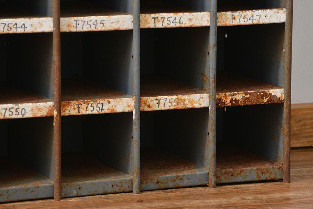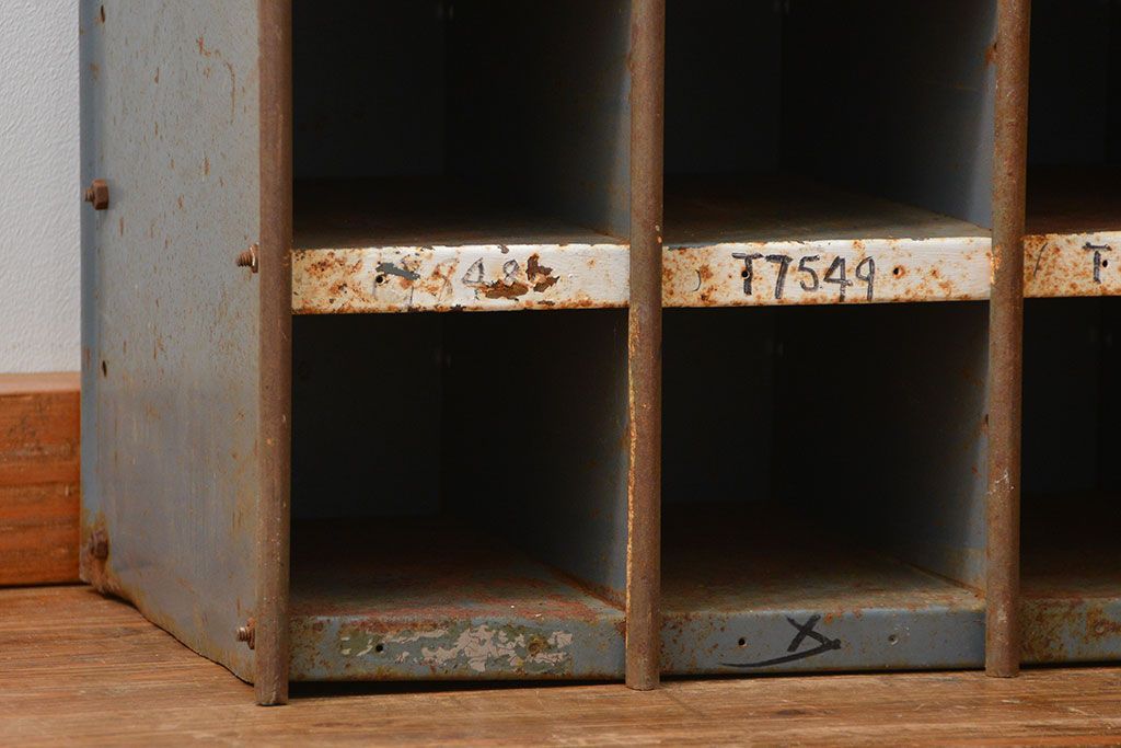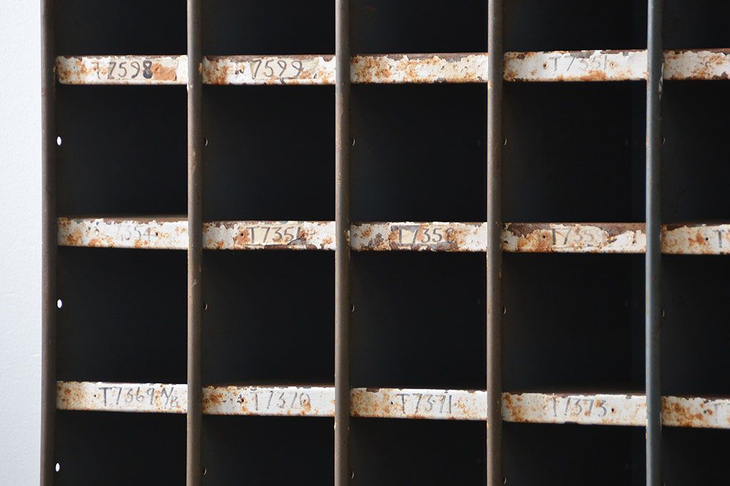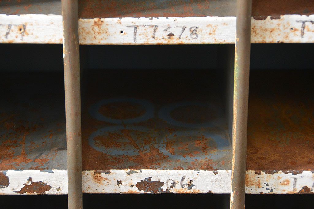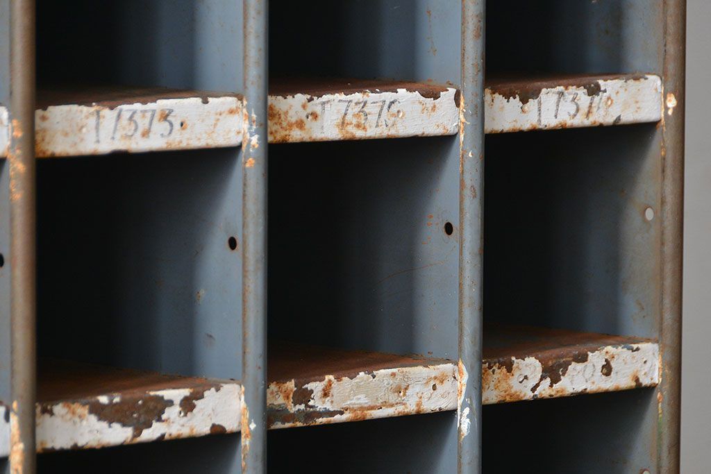 ラフジュ工房> オープンラック・シェルフ> ディスプレイラック > ヴィンテージ家具 イギリスビンテージ インダストリアル(工業系)アイアン部品棚(マス目棚、升目棚)
