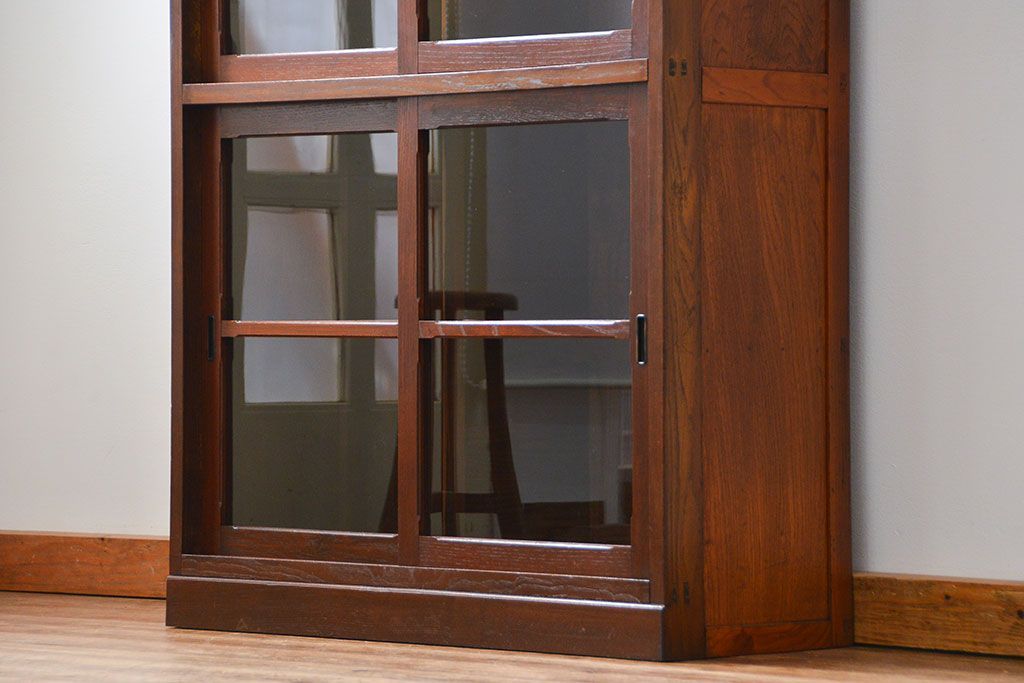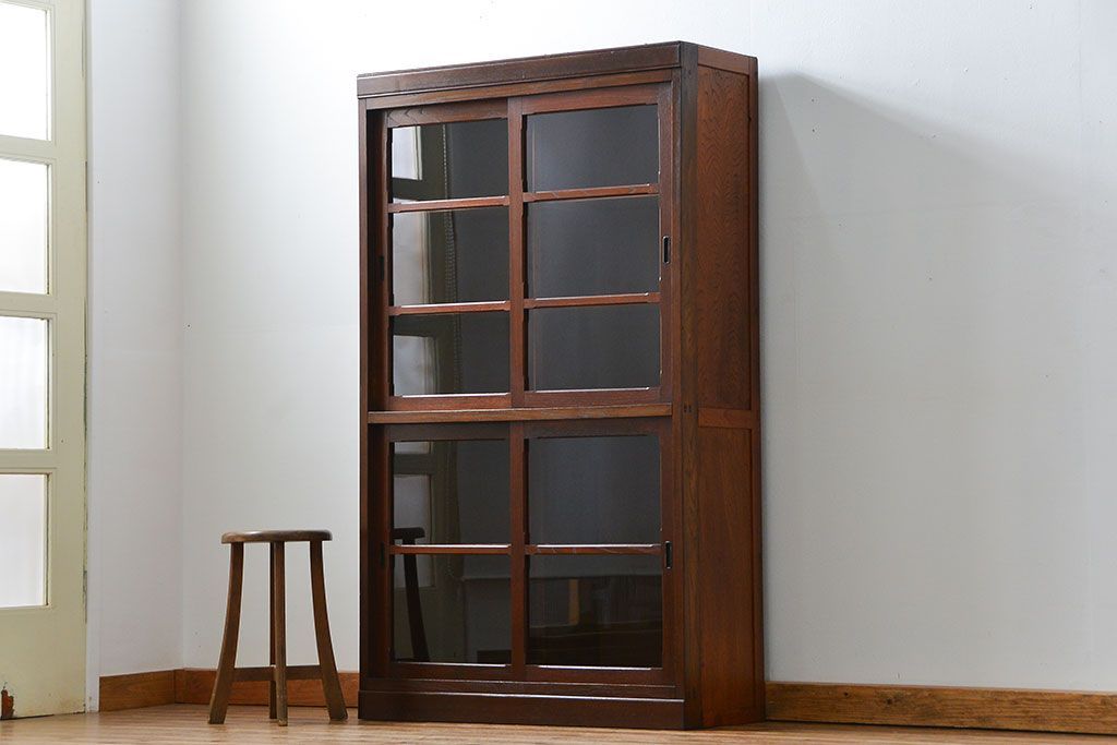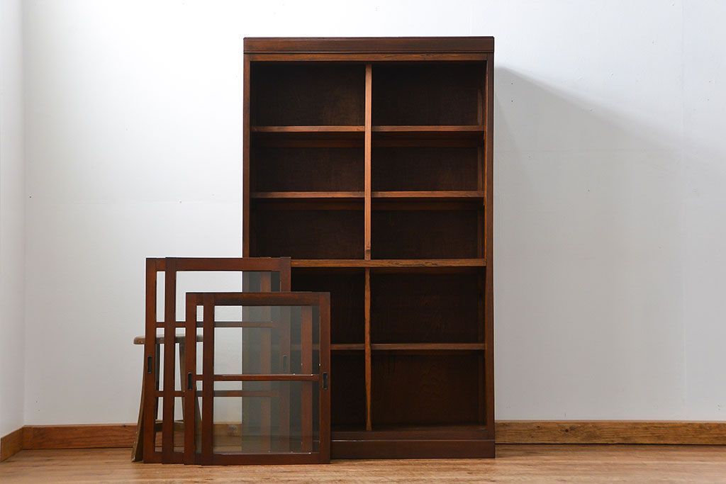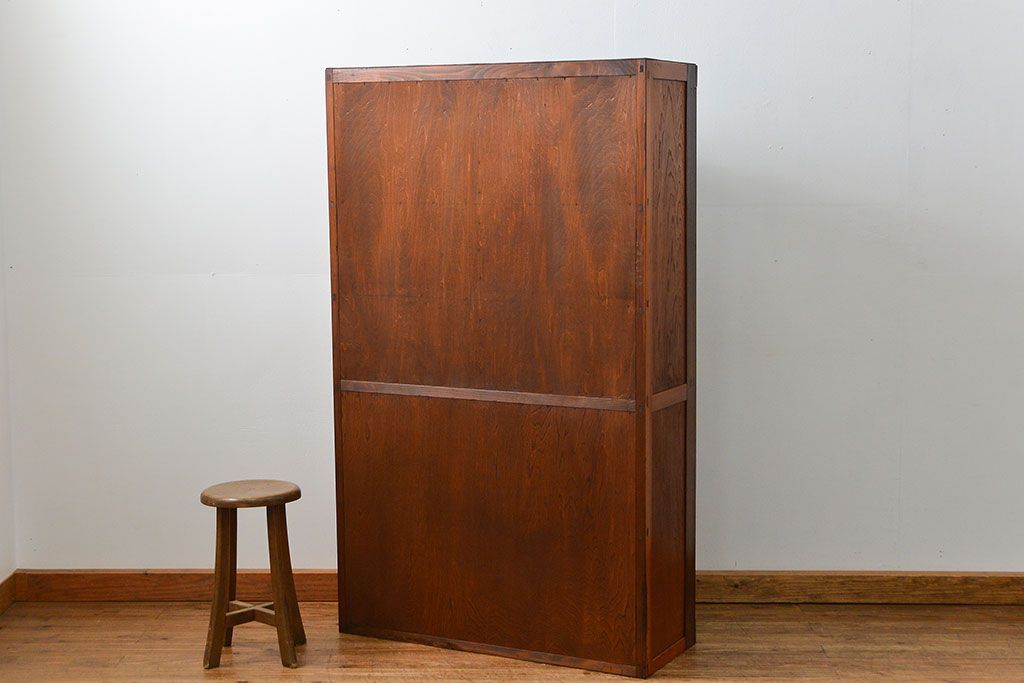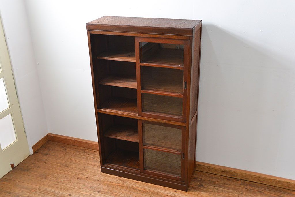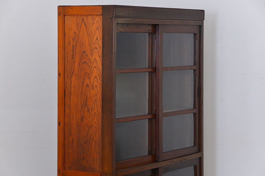 レトロ家具 昭和レトロ 前面栗材のシンプルなアンティーク収納棚(本棚、飾り棚、食器棚)