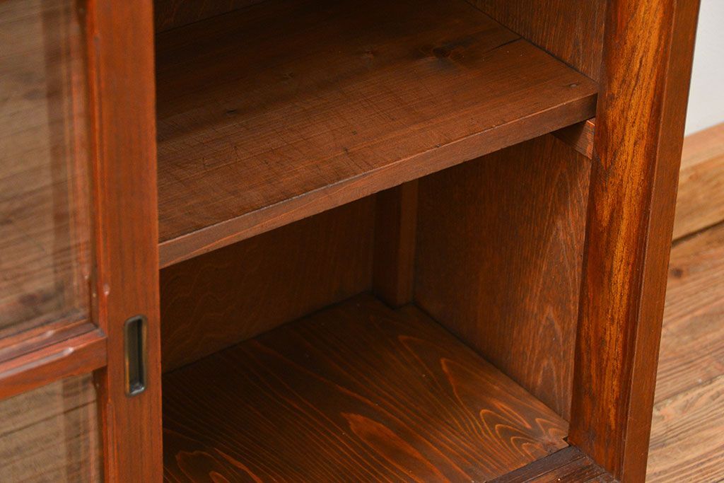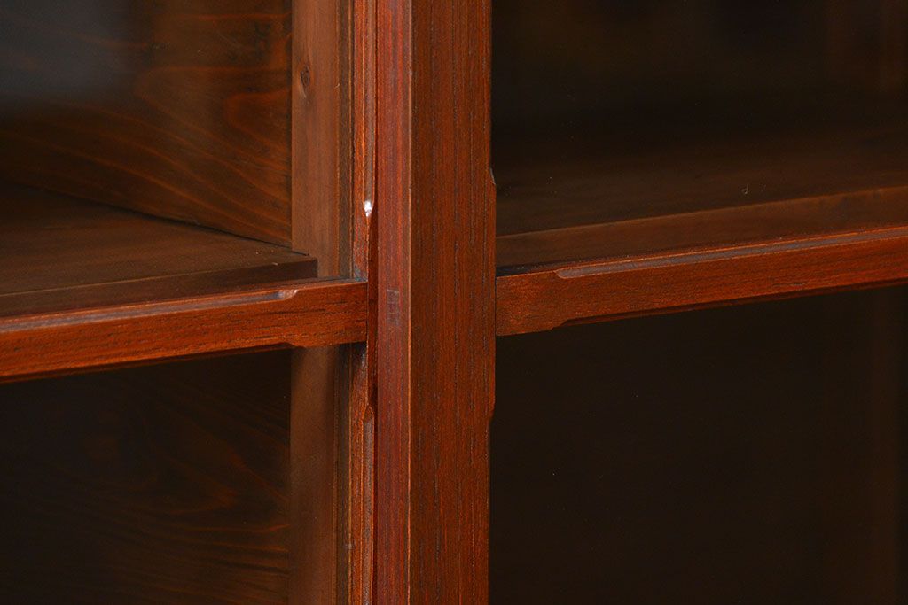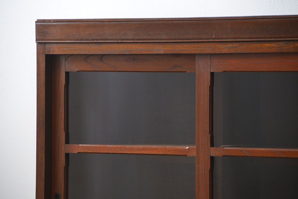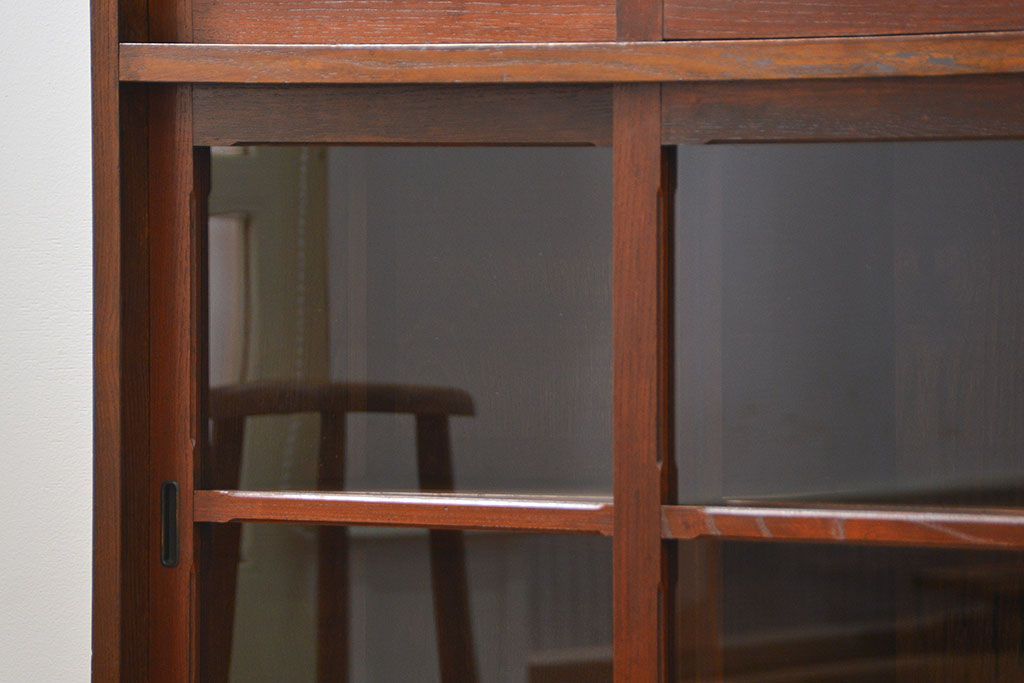 昭和レトロ 前面栗材のシンプルなアンティーク収納棚(本棚、飾り棚、食器棚)です。