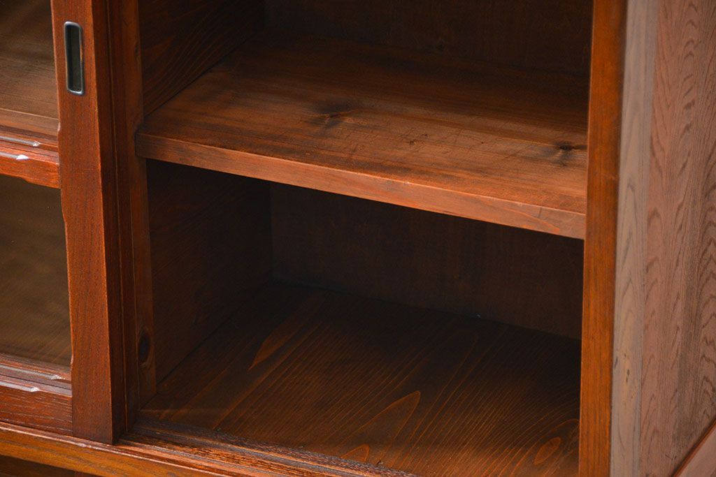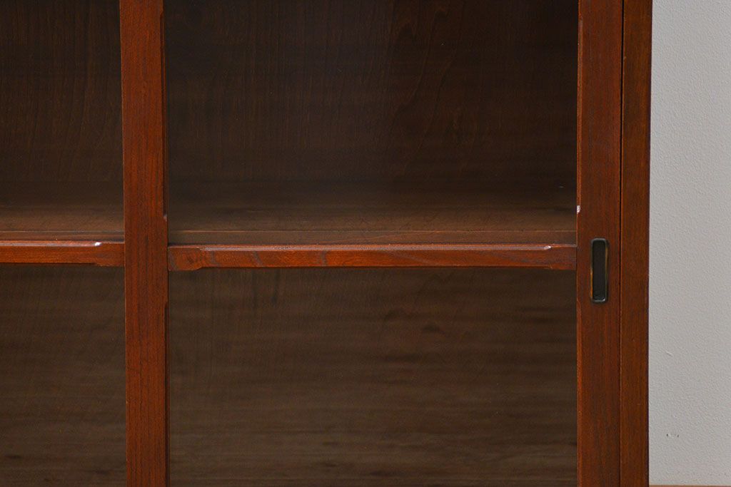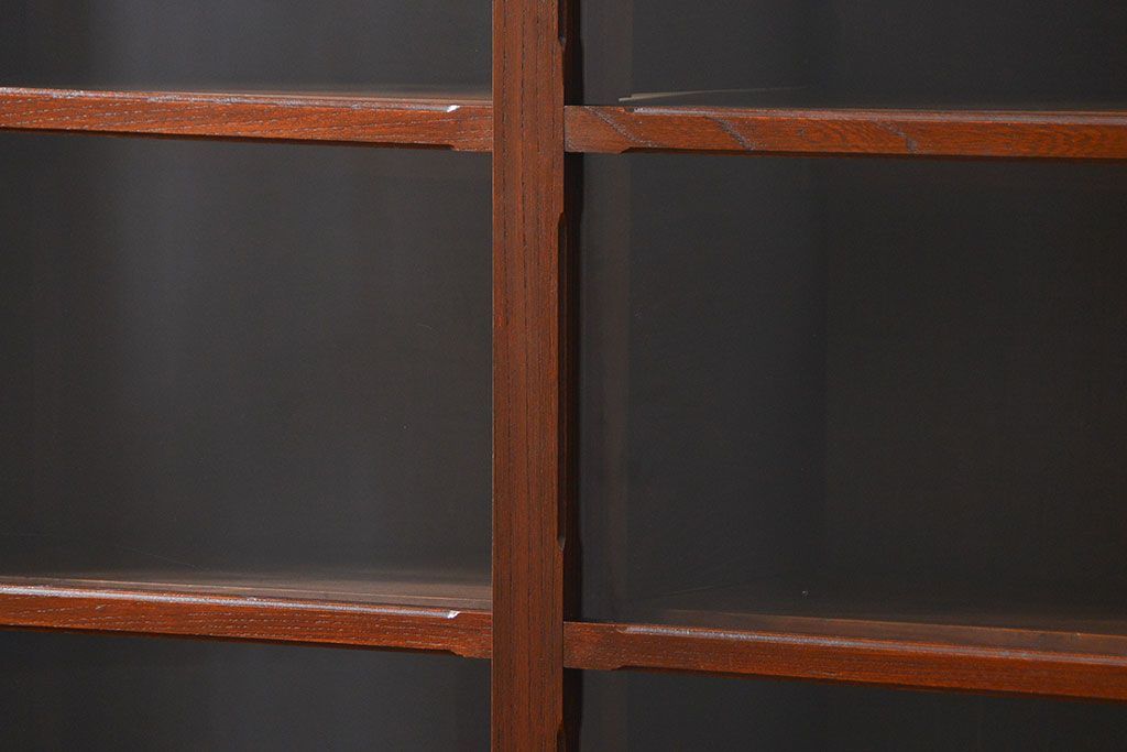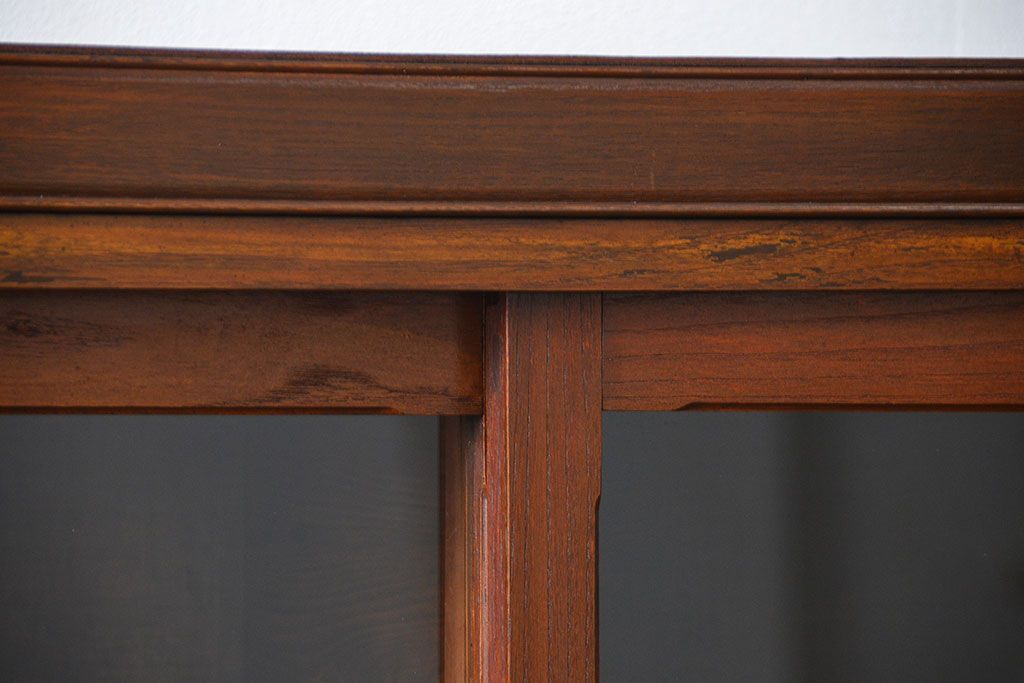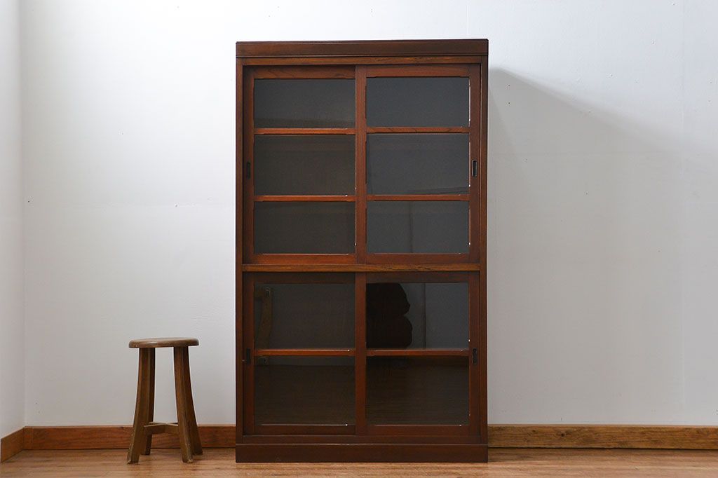 昭和レトロ 前面栗材のシンプルなアンティーク収納棚(本棚、飾り棚、食器棚)です。