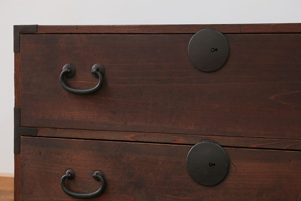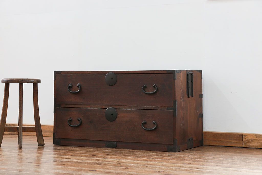 アンティーク家具 古民具・骨董 丸金具の時代箪笥ローボード(2)(ローチェスト)