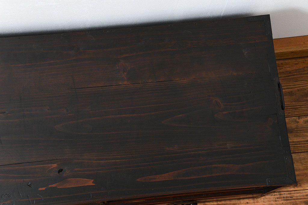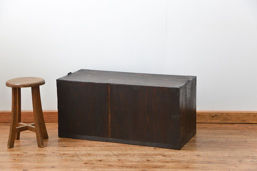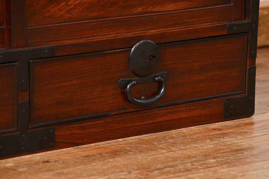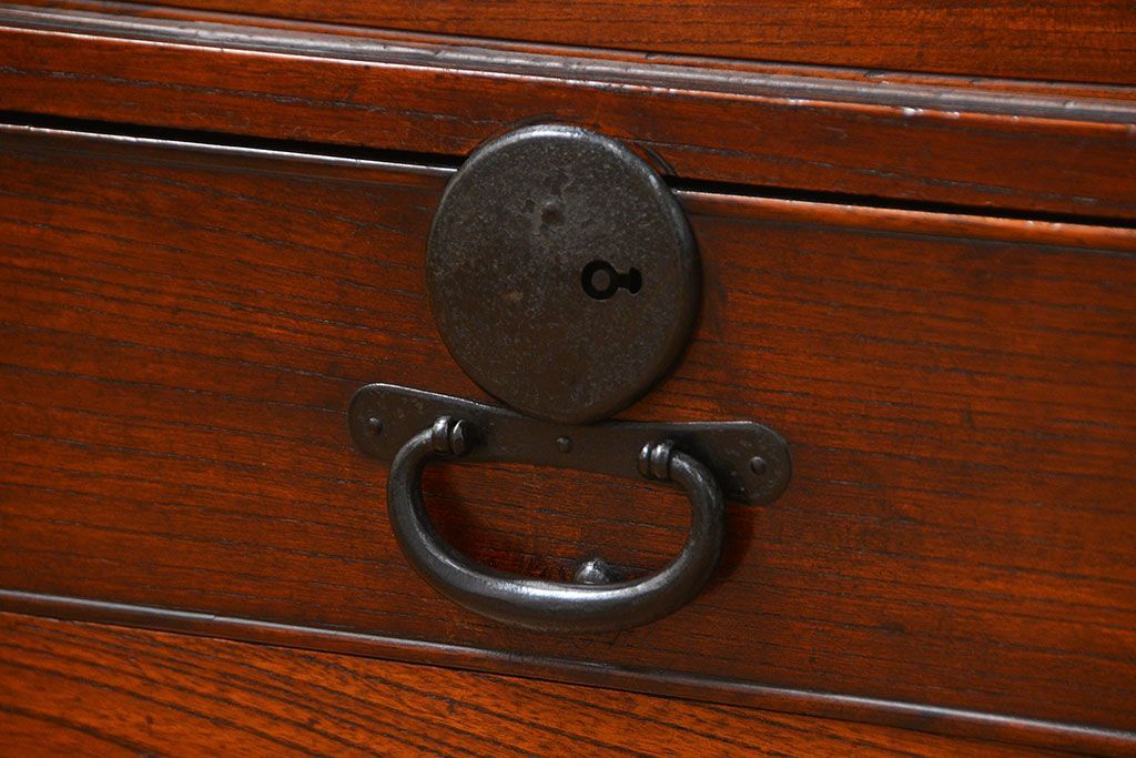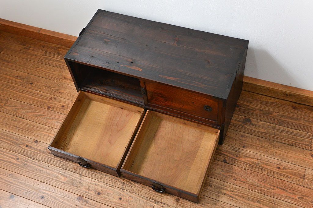 ラフジュ工房> チェスト・引き出し> ローチェスト > アンティーク家具 古民具・骨董 前面欅材の黒柿枠引き出し時代箪笥ローボード(ローチェスト)