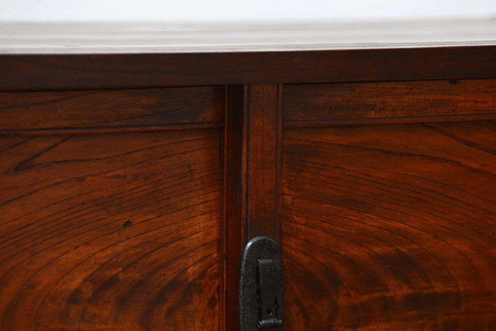 アンティーク家具 古民具・骨董 前面欅材の黒柿枠引き出し時代箪笥ローボード(ローチェスト)