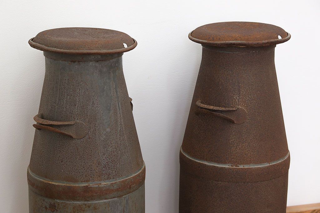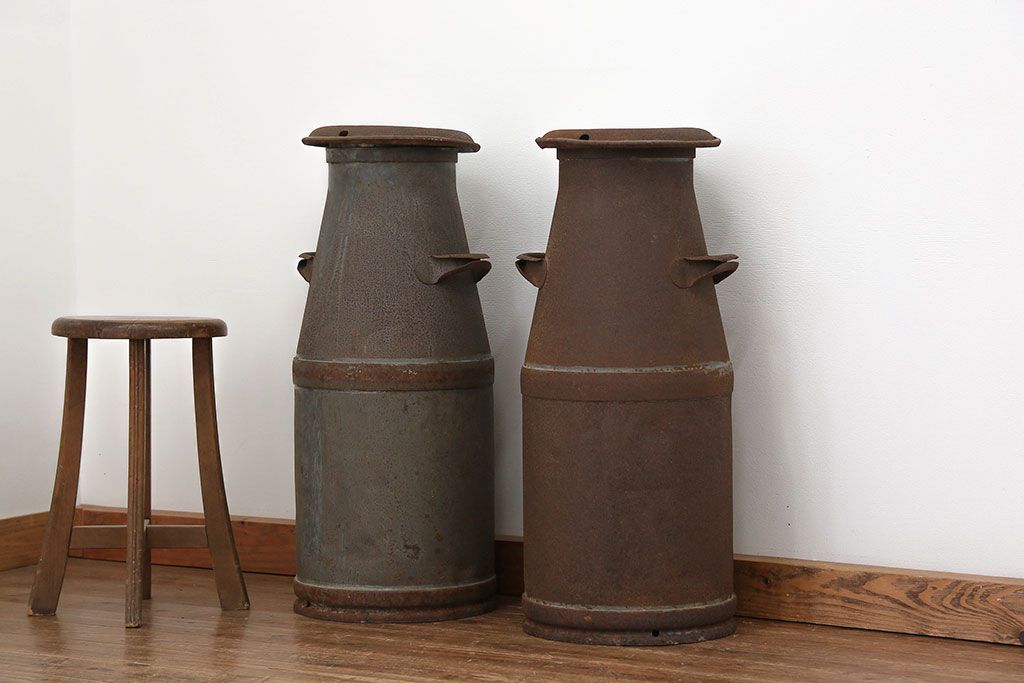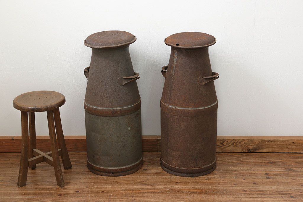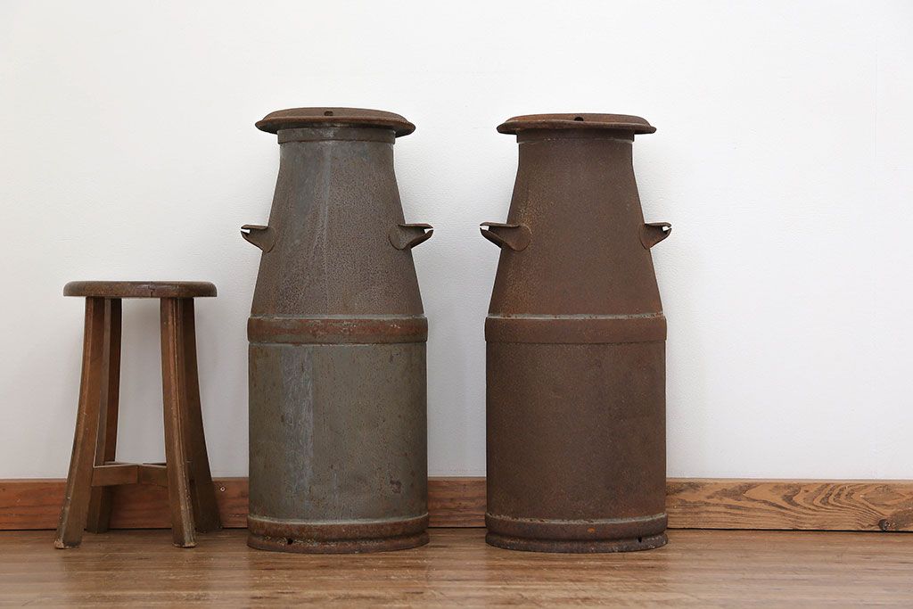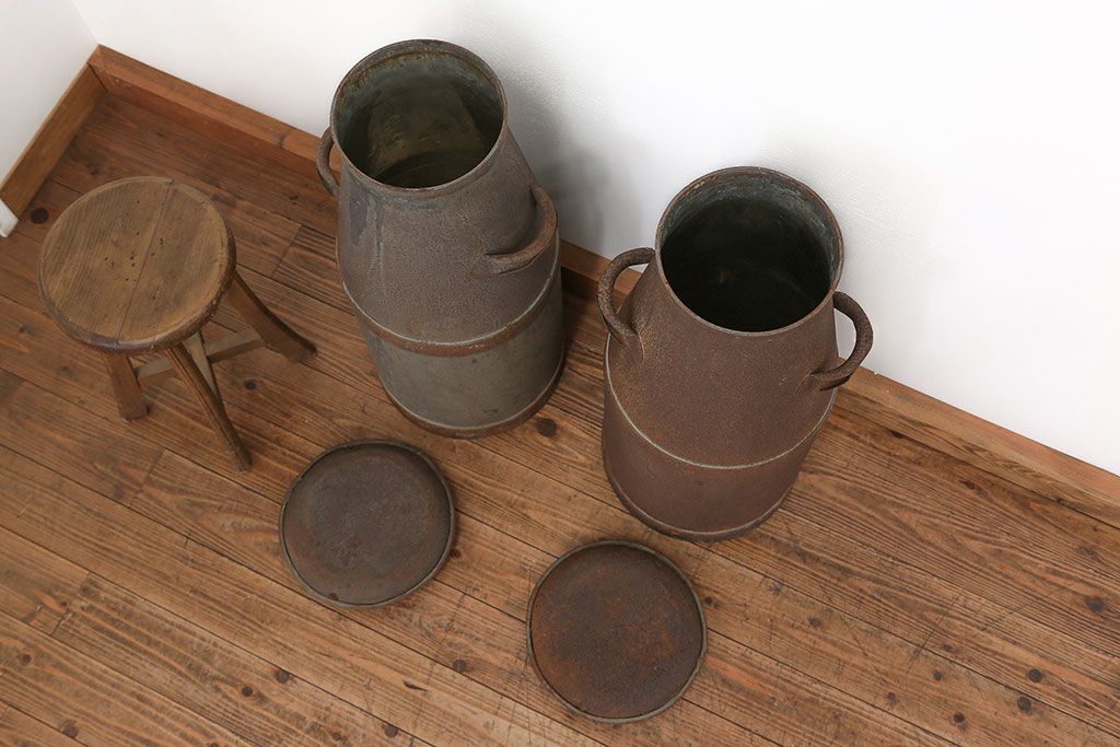 アンティーク雑貨 昭和レトロ 古いアイアンの牛乳缶2個セット(ミルク缶)