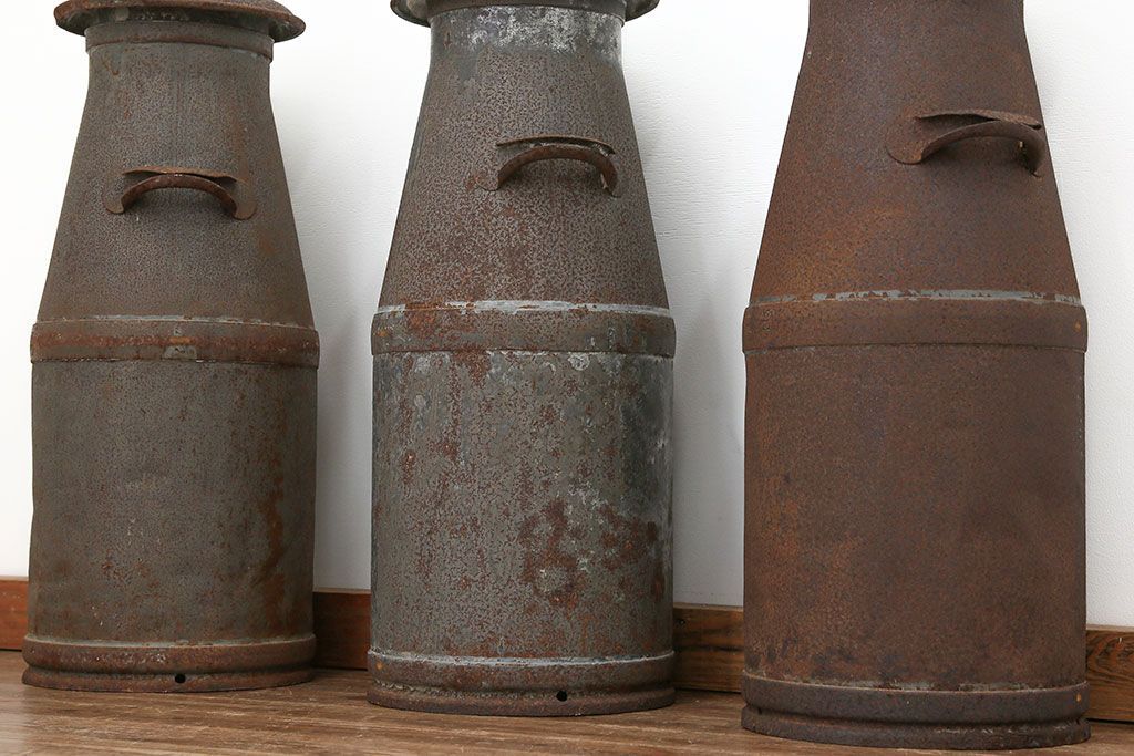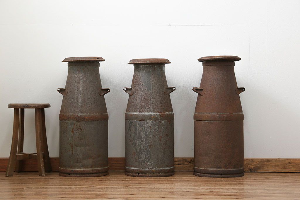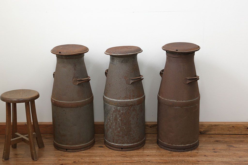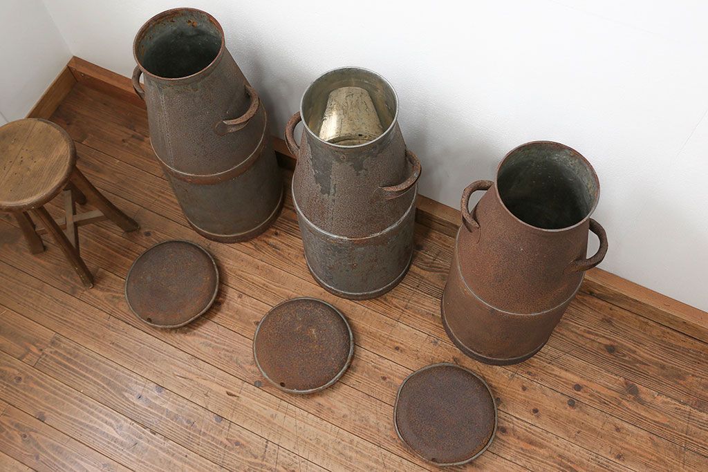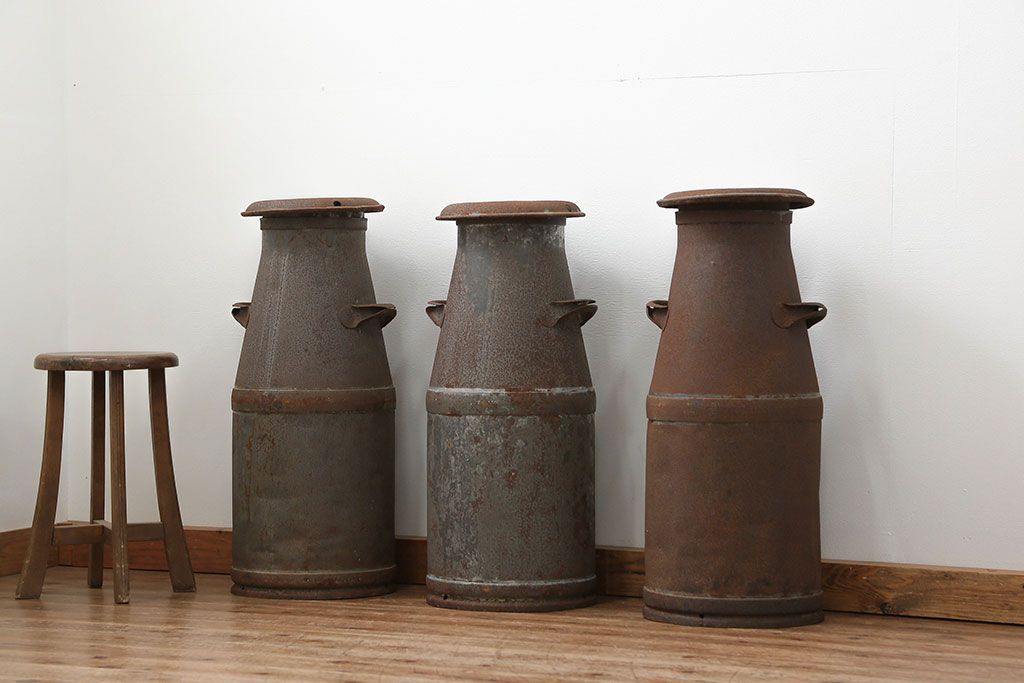 アンティーク雑貨 昭和レトロ 古いアイアンの牛乳缶3個セット(ミルク缶)