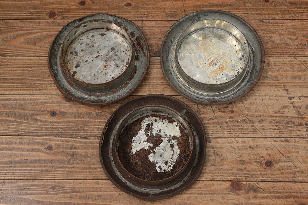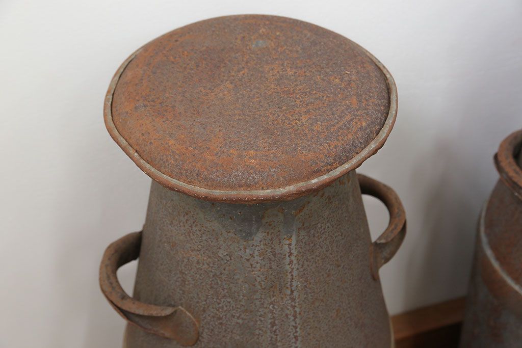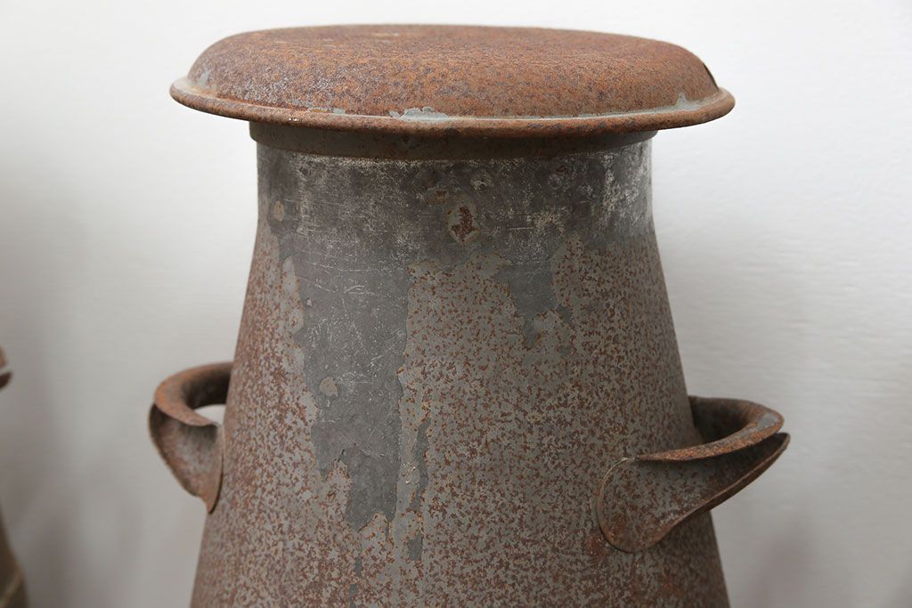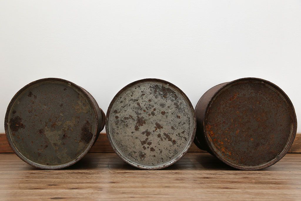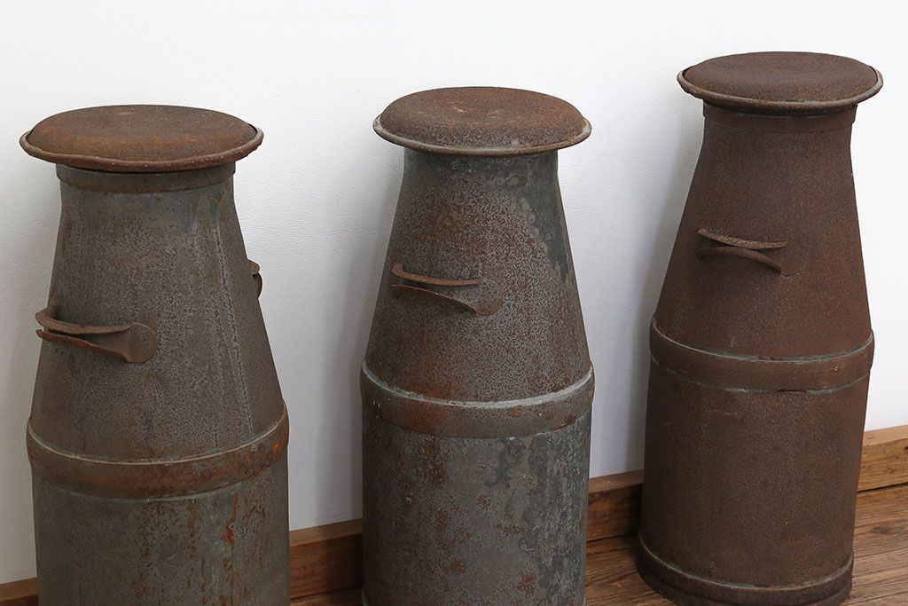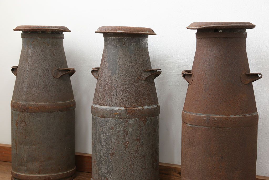 アンティーク雑貨 昭和レトロ 古いアイアンの牛乳缶3個セット(ミルク缶)