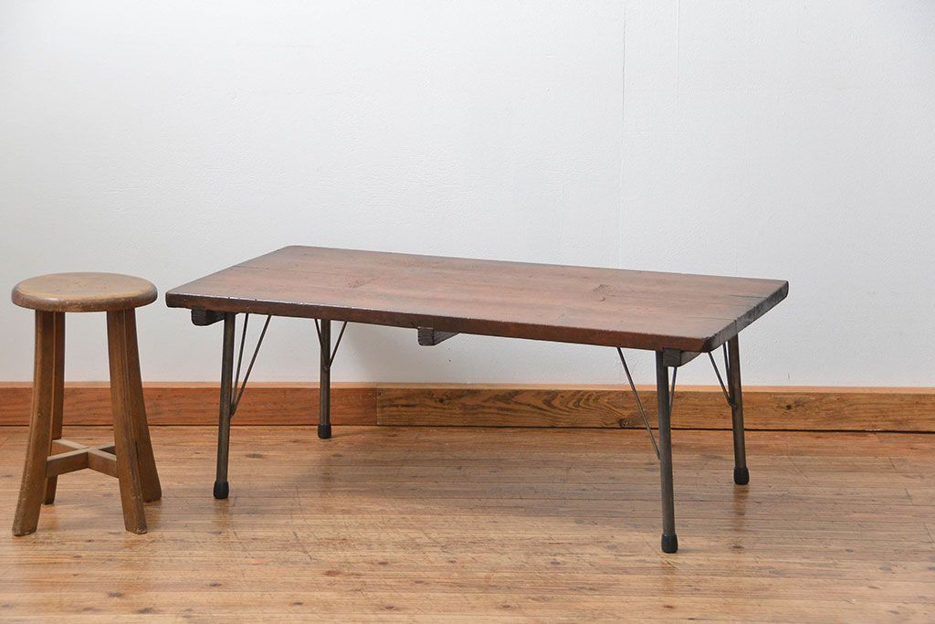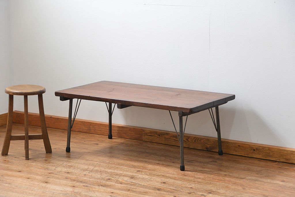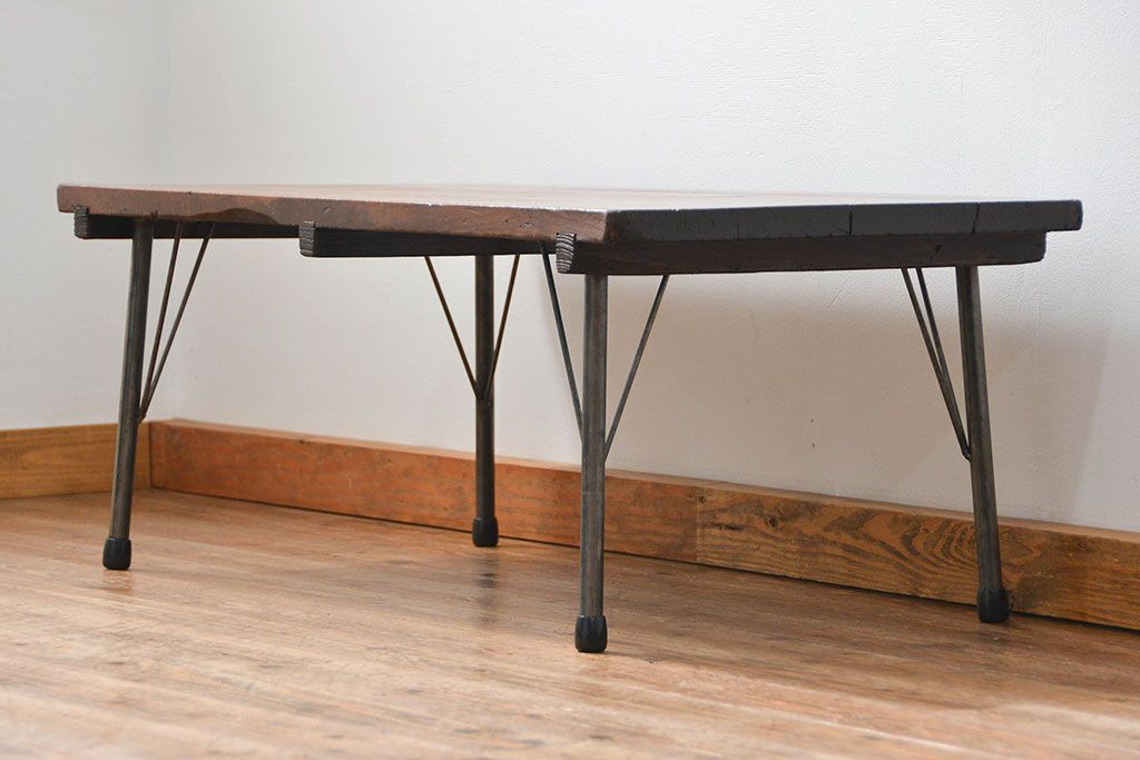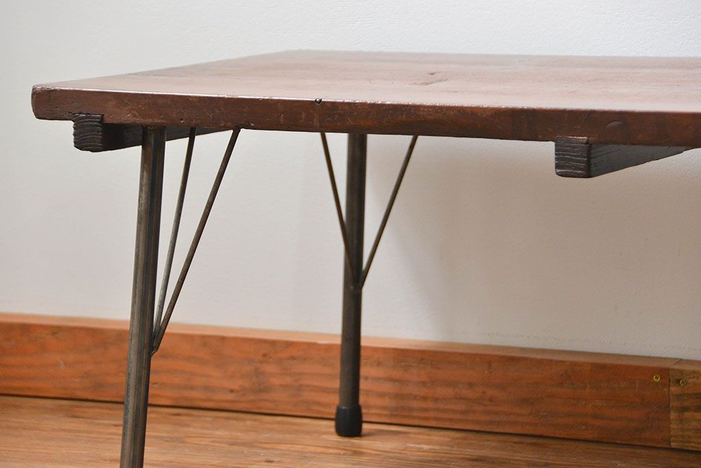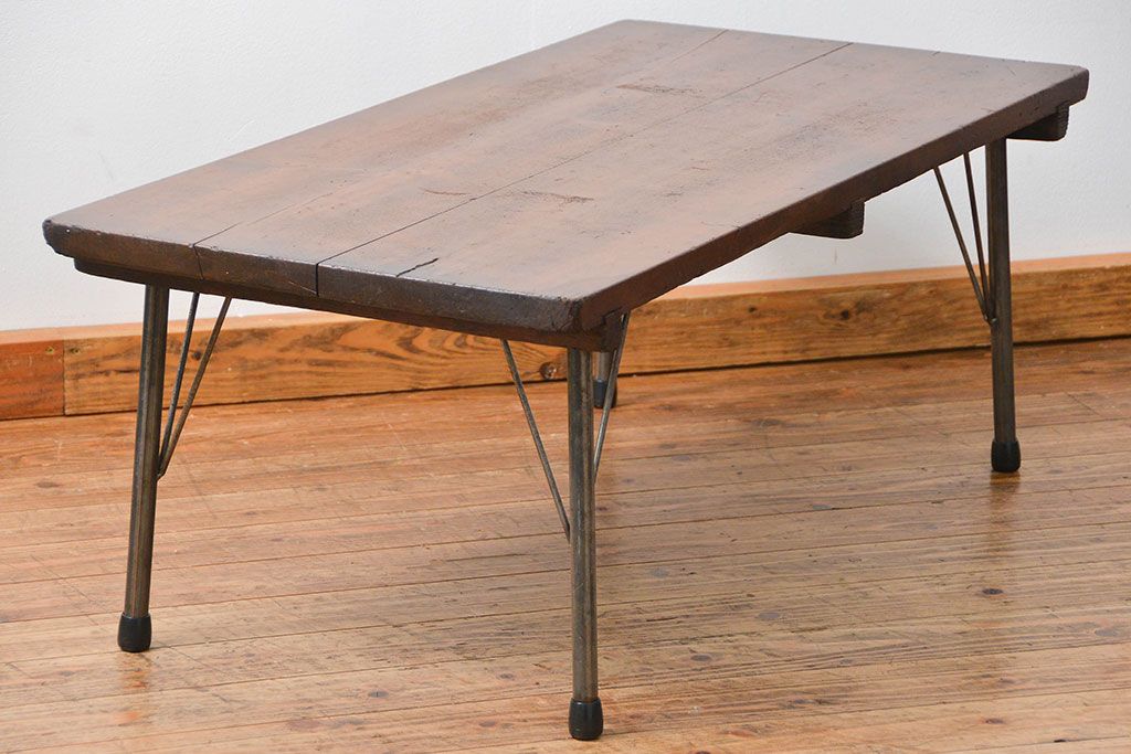 アンティーク家具 アンティーク 古材天板の鉄脚センターテーブル(机、作業台)