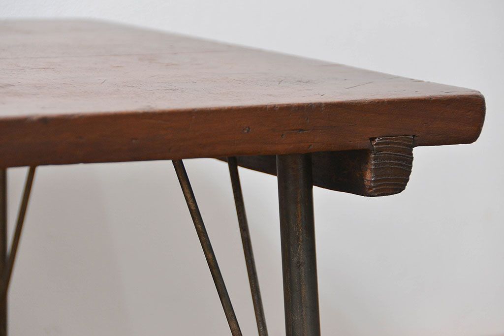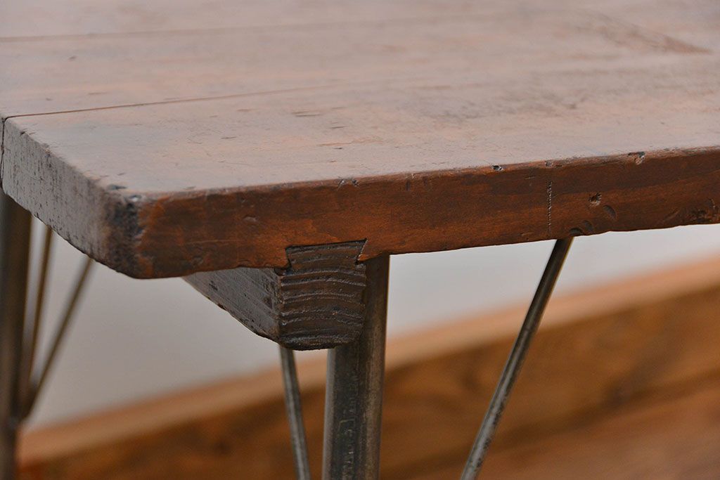 ラフジュ工房> テーブル> 鉄脚テーブル > アンティーク家具 アンティーク 古材天板の鉄脚センターテーブル(机、作業台)