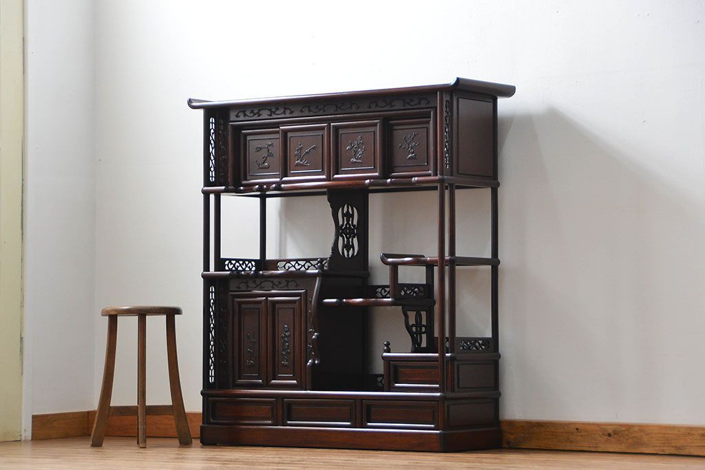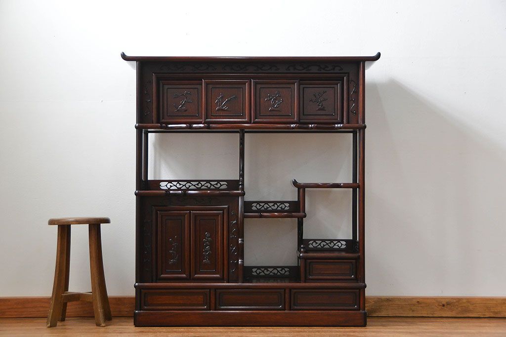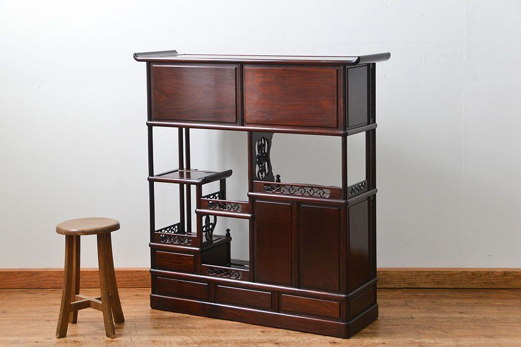 アンティーク家具 古民具・骨董 1970年頃 唐木製の高級茶棚(茶箪笥、飾り棚)
