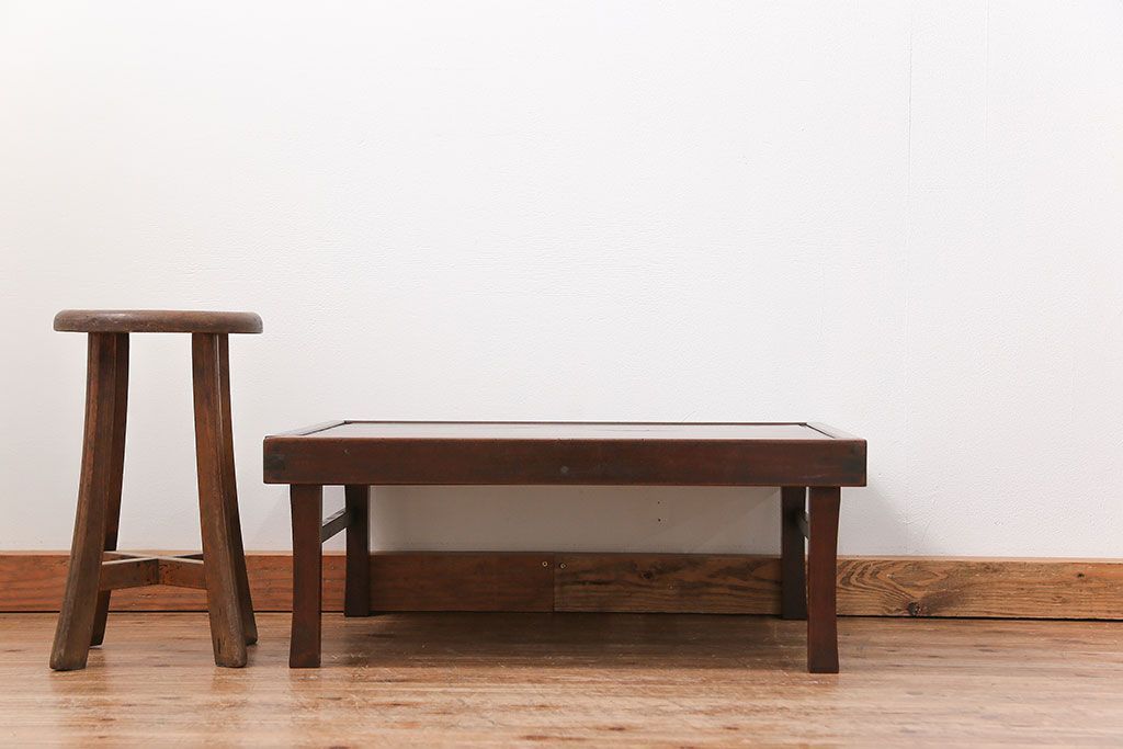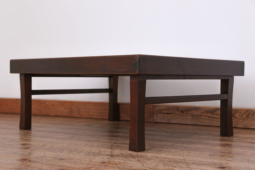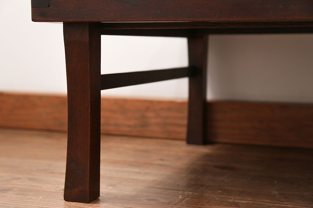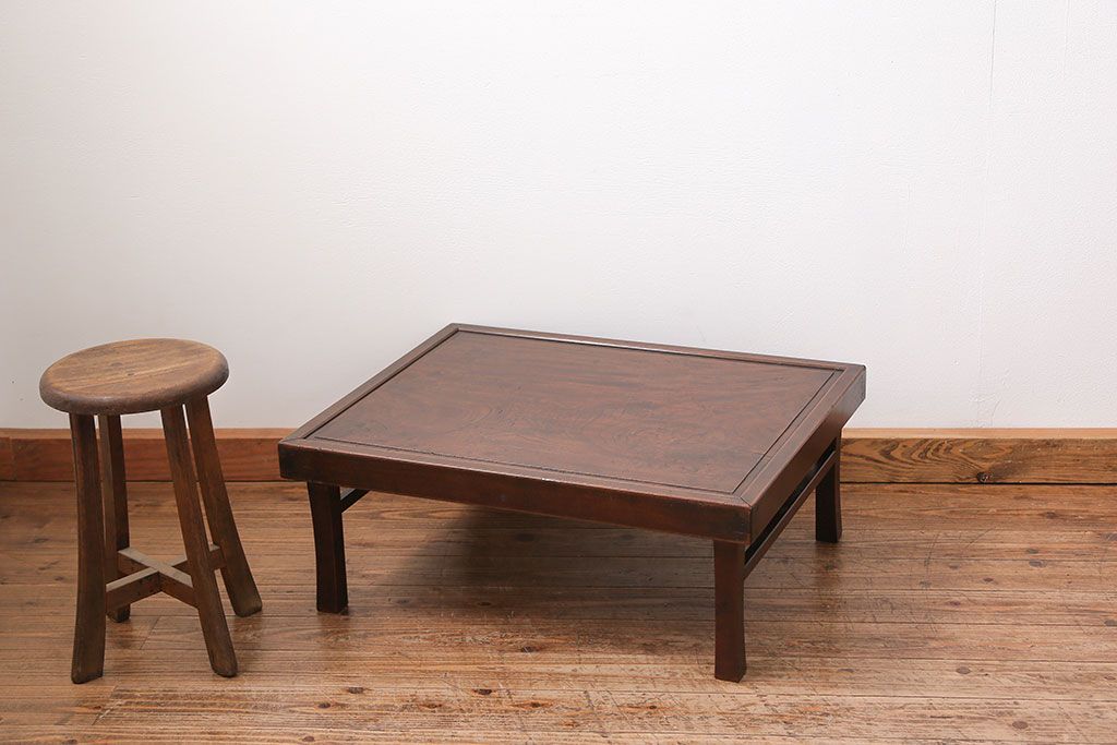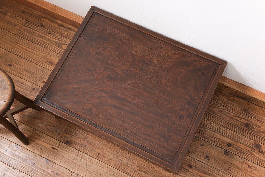 ラフジュ工房> 骨董・美術品 > アンティーク家具 古民具・骨董 折り畳み式 古い欅材の使い込まれた角型ちゃぶ台(テーブル、座卓)